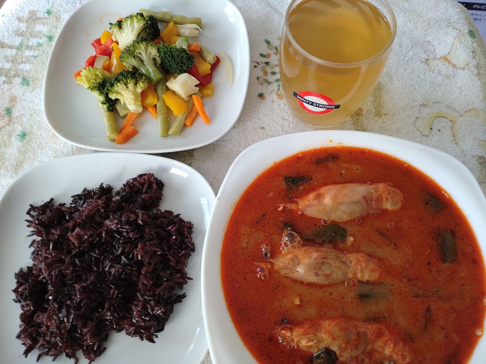 素晴らしいですねぇ! 結構なウォーキングが出来た後は、下の階へ行きました。 こんな綺麗なフードコートがありました。 此処もゆったりとした造りでした。 この店から買って帰ります。 久々にトムヤムクンスープが食べたくなったのです。 暫くして受け取り完了。 後日に食べる事にしました。 ライスベリーと一緒に食べます。 軽い酸味に少々の辛さが良かったです。