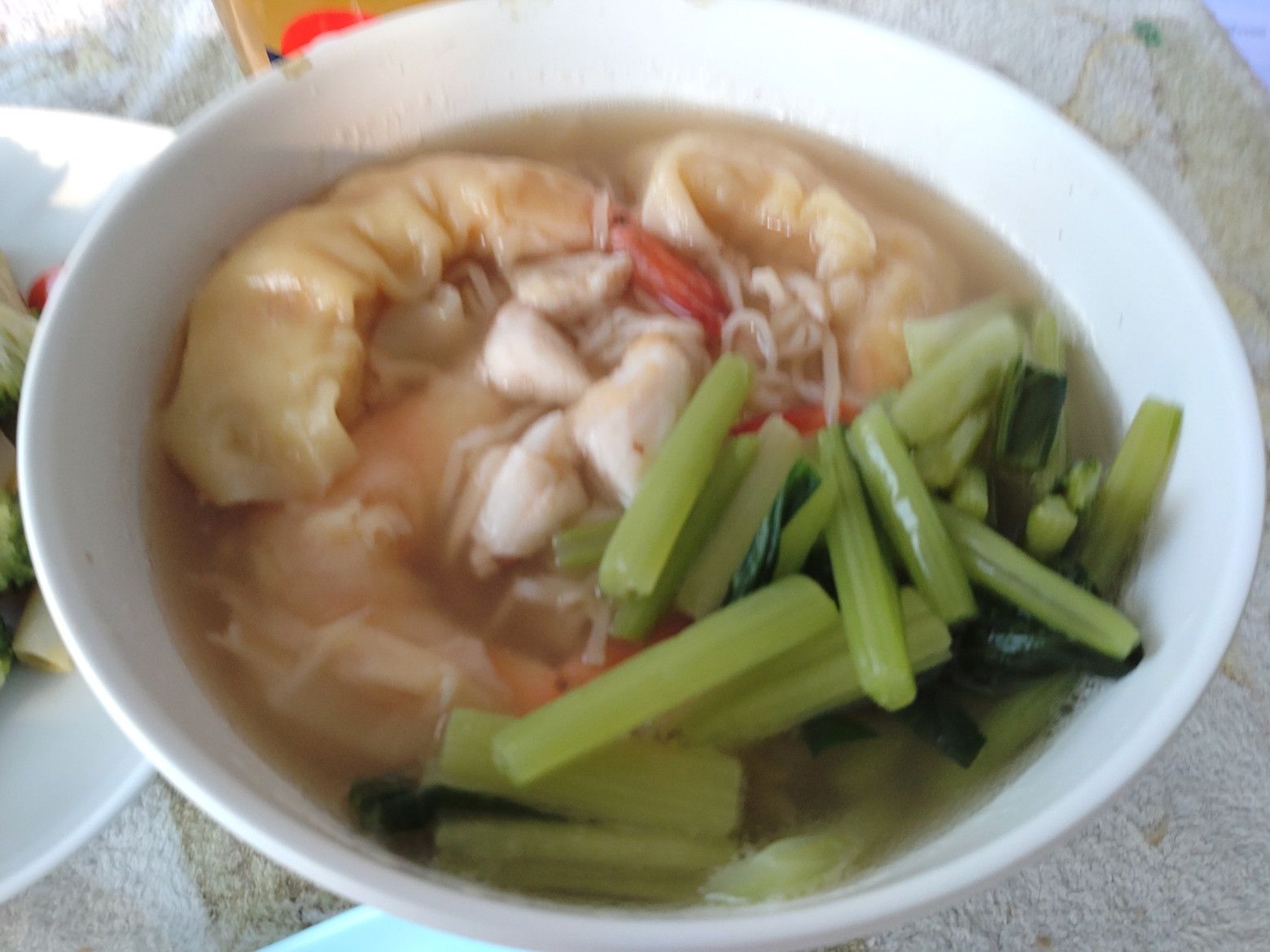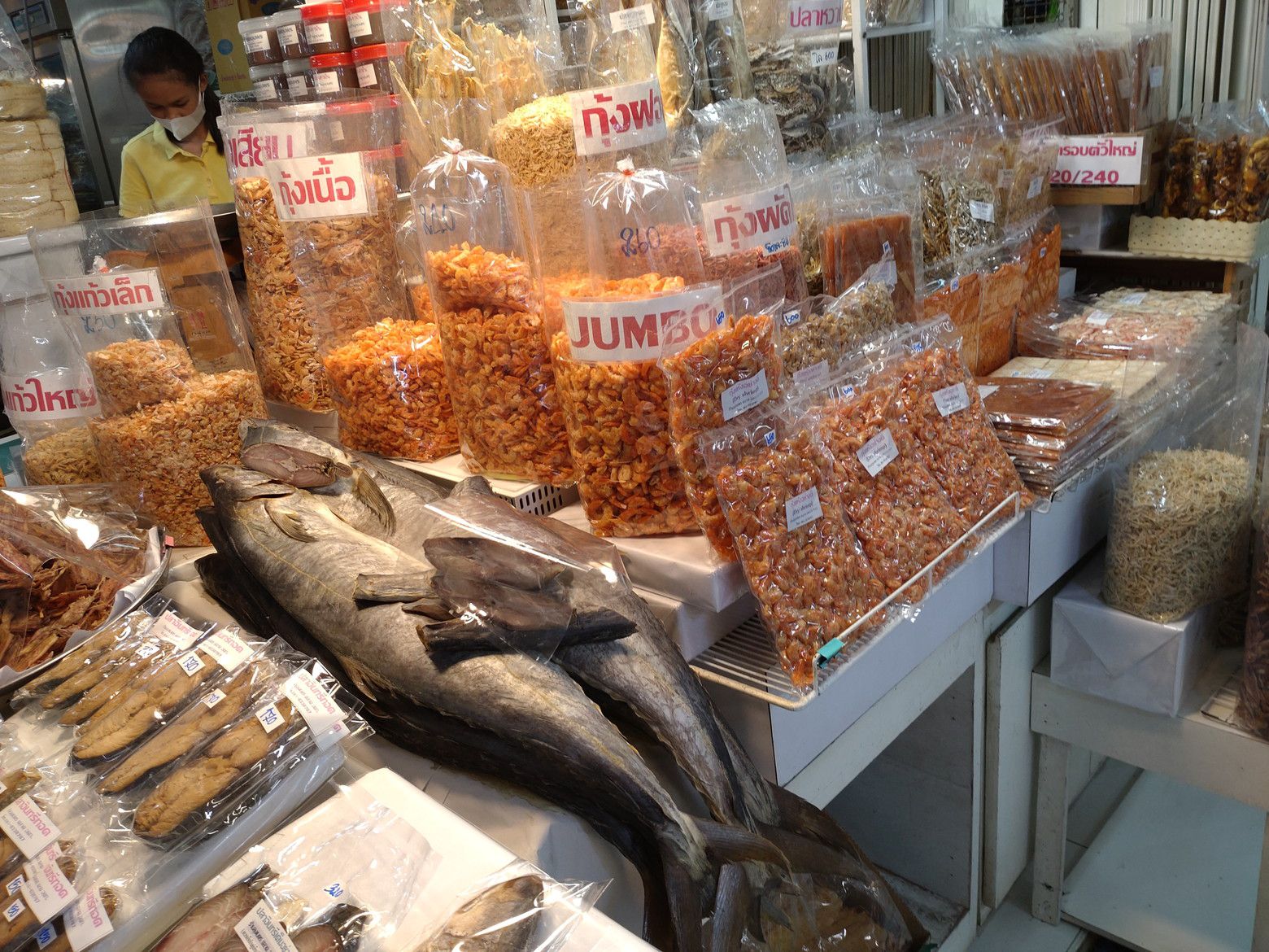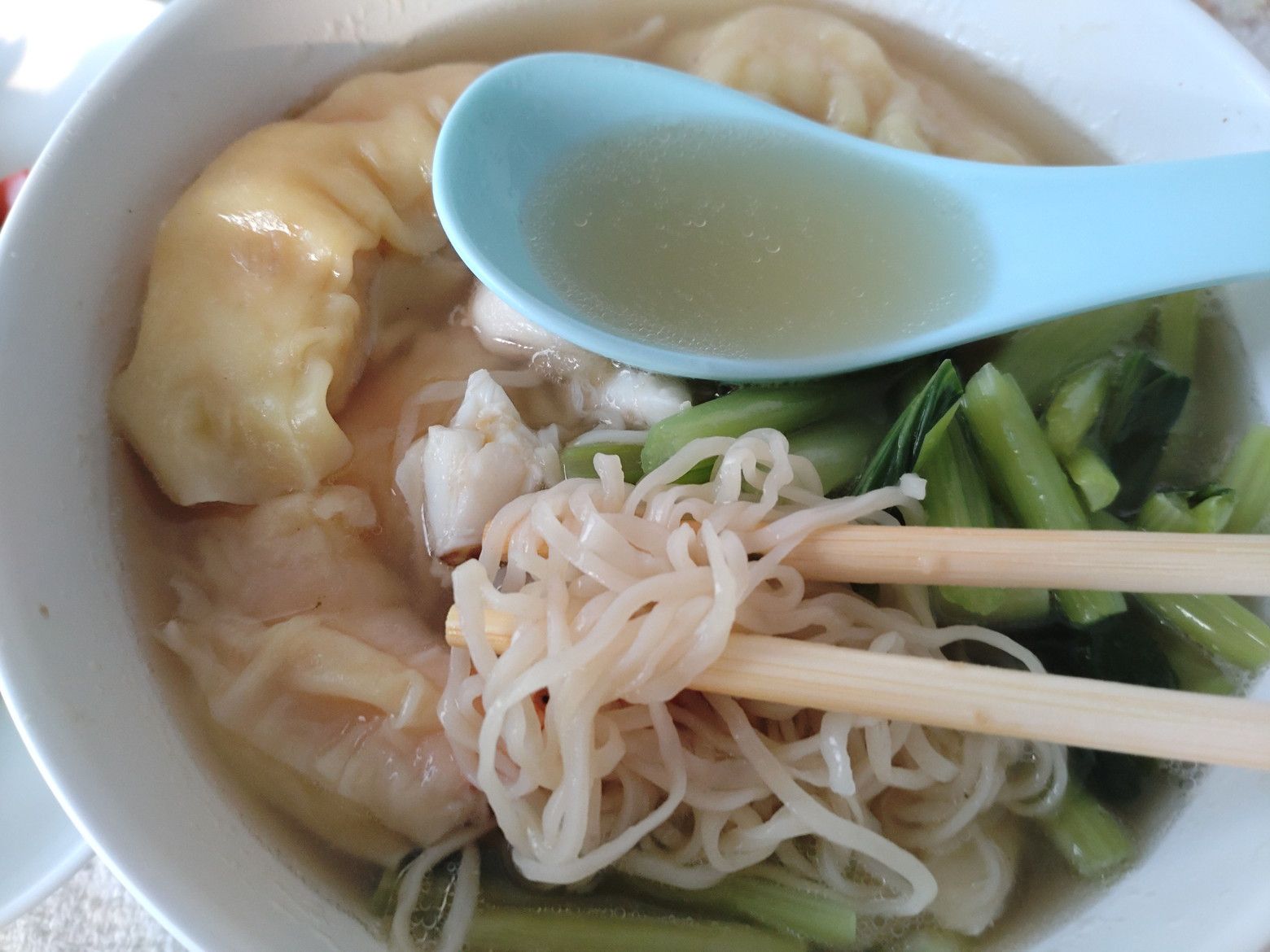 もう何度も来ている市場。 前回来た際は、観光客で賑わっていたのだけれど、この日はガラガラ。 まずは、乾物コーナーを覗いたのですが、パクナム市場で売っている自分が好む商品は売っていませんでした。残念。 そこから、惣菜コーナーを一応。。。覗いたのですが、経験上では砂糖の甘さが強い印象なので、スルー。 やはり、フードコートが、安心なんです。 しかも、以前に持ち帰って食べたこの店の麺料理が忘れられません。 前回は蟹らーめんでしたが! 今回は、これに決定!! 店員さんは、手際よく包んでくれました。 食べる当日は、スープを熱々にしました。 この店は、スープが美味しいんです。 サッパリ系の薄味スープですが、しっかりとした旨味があって麺がズルズルと胃袋に入って行きます。