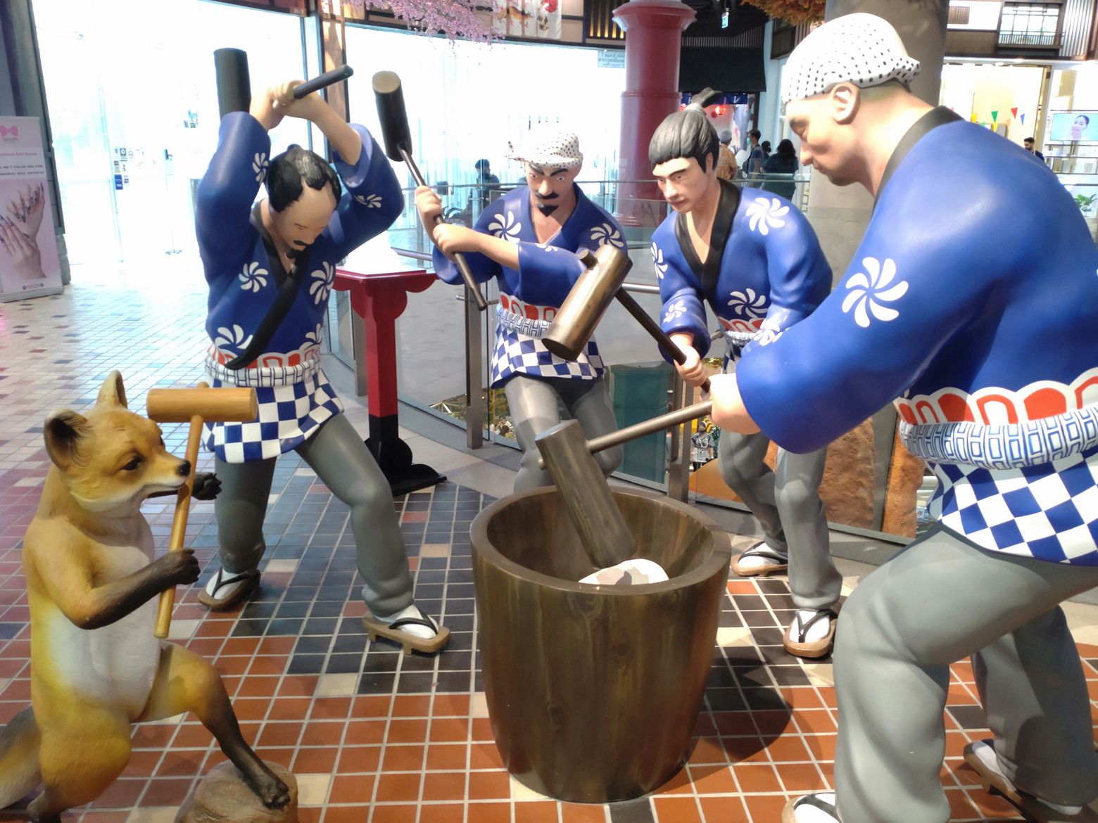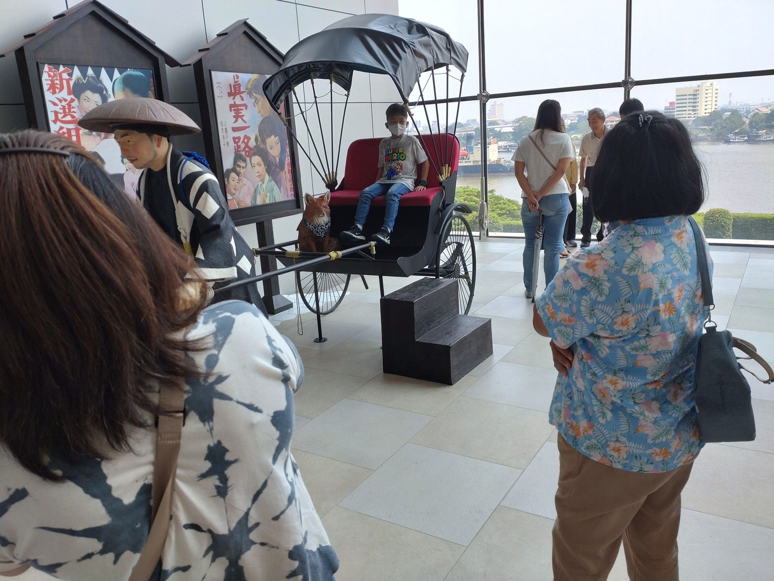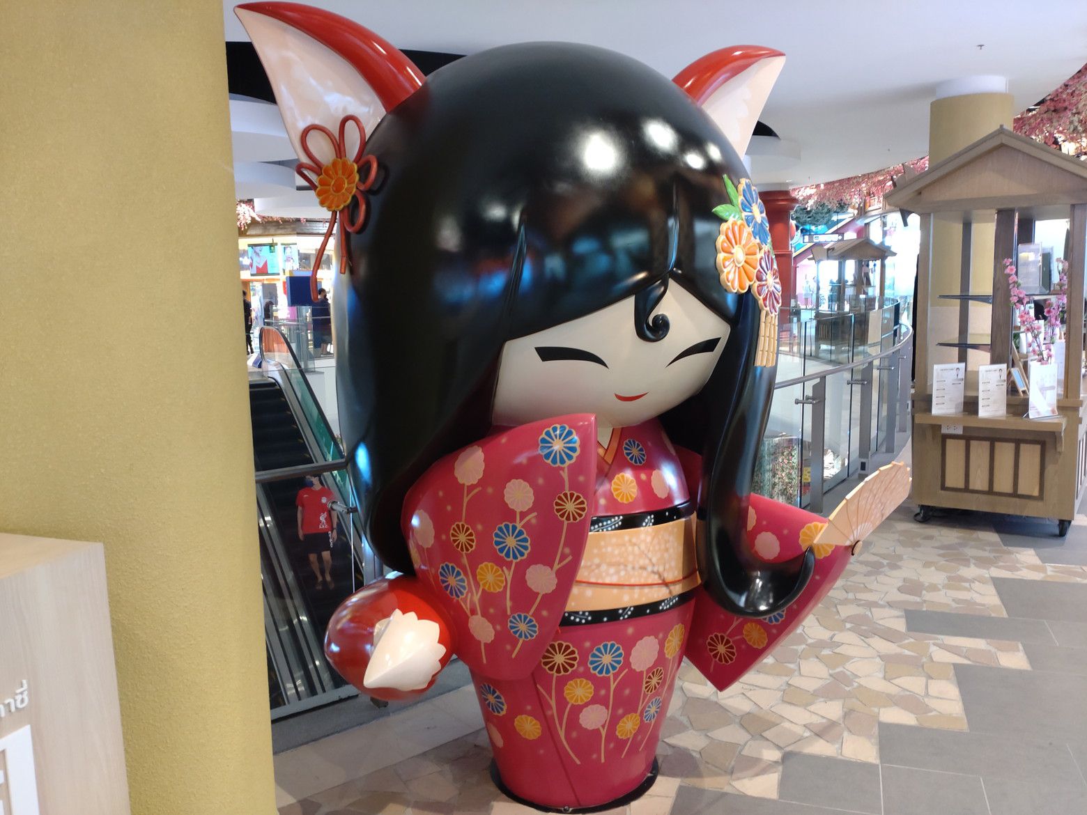 だいぶ歩数計の数値が上がっていました。 まずは、日本をイメージしたフロアーに上がり、散策です。 この階から眺めるチャオプラヤー川の景色が好きです。 この日も、スッキリとしない空気で、残念でした。 色々な場所で、日本を表すオブジェがあるのですが。。。 顔はどうしても、日本人風ではないなぁ~と感じるのは私だけでしょうか?