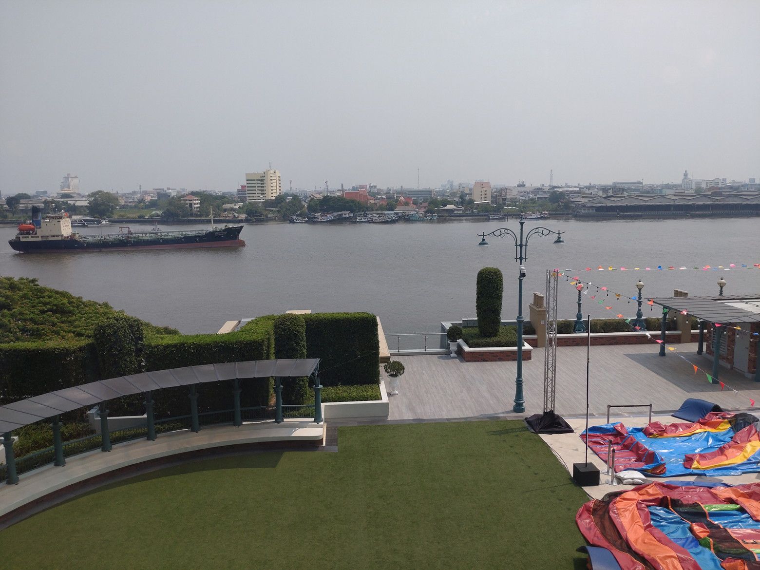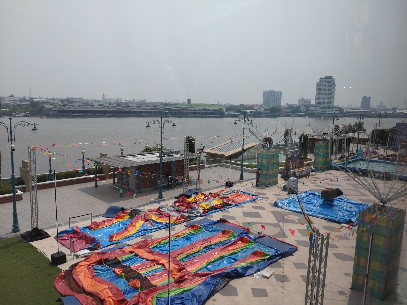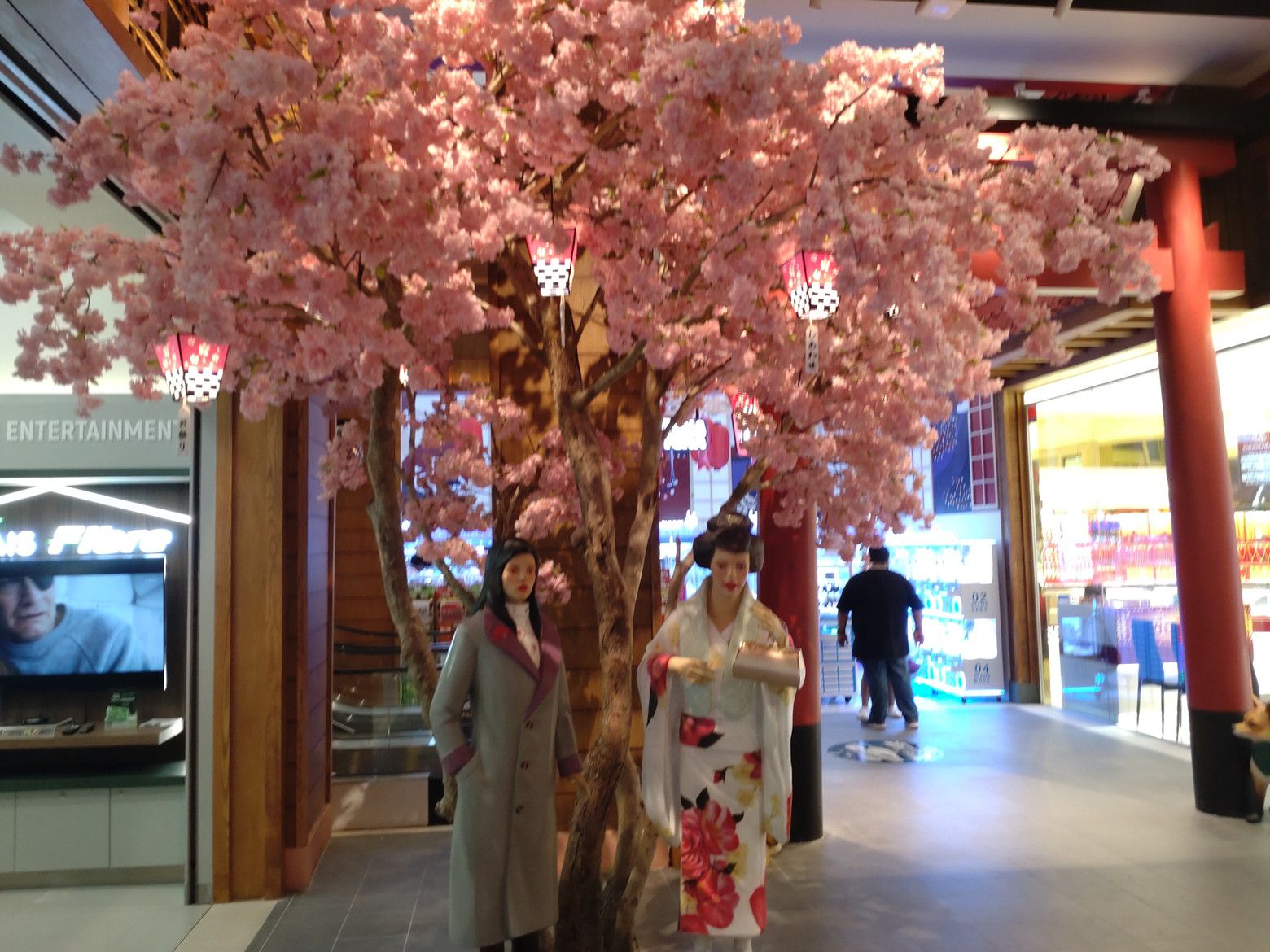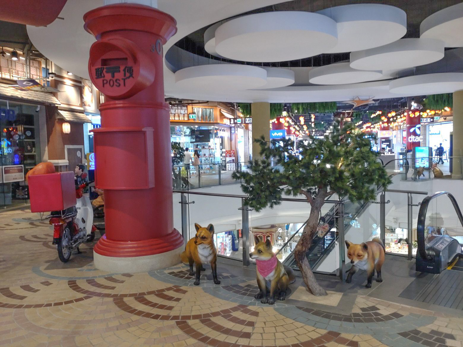 だいぶ歩数計の数値が上がっていました。 まずは、日本をイメージしたフロアーに上がり、散策です。 この階から眺めるチャオプラヤー川の景色が好きです。 この日も、スッキリとしない空気で、残念でした。 色々な場所で、日本を表すオブジェがあるのですが。。。 顔はどうしても、日本人風ではないなぁ~と感じるのは私だけでしょうか?