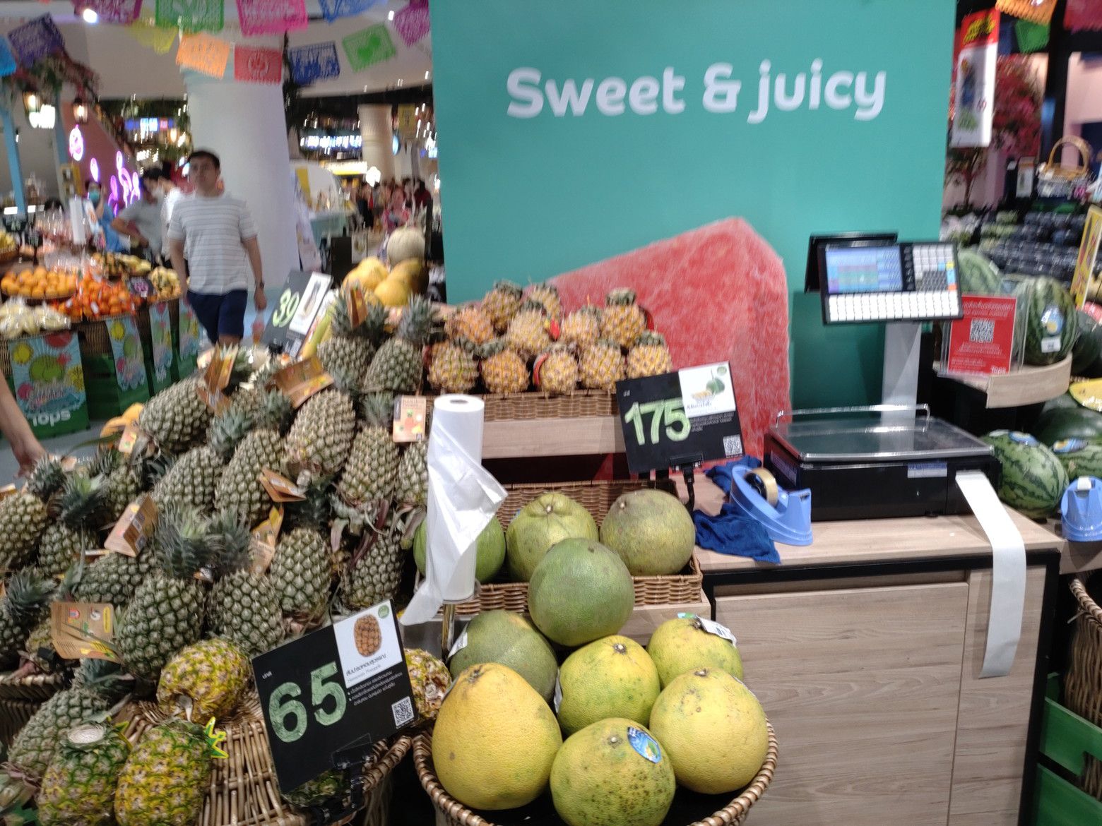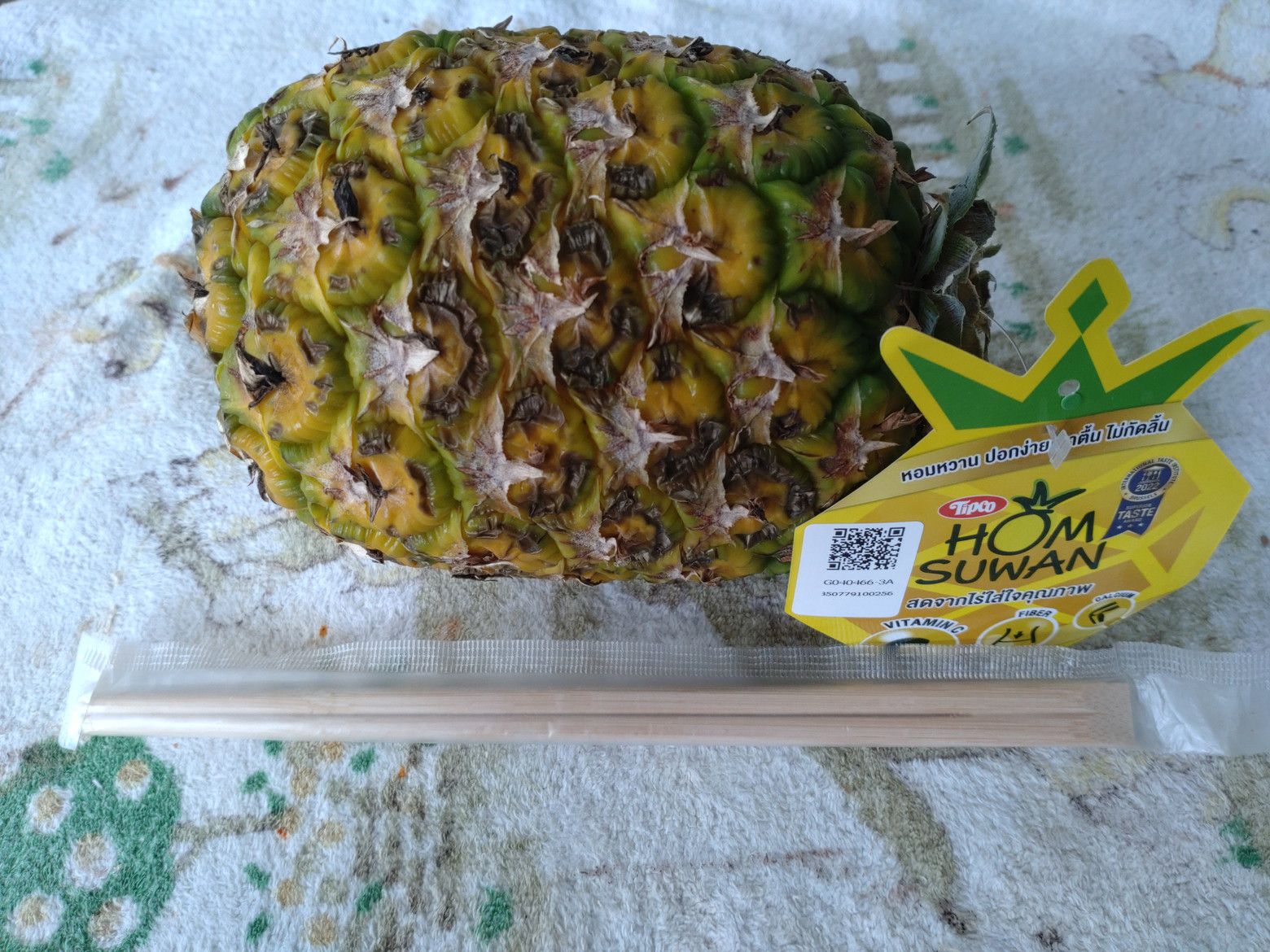 いやぁ!楽しませてくれますね! そして、その後は食料品売り場へ。 野菜を買うのがメインだったのですが。。。 少し小さめのパイナップルを見つけたので、1個購入。 以前に買って食べた際に、美味しかった事を思い出したのです。 多少酸味がありましたが、美味しかったです。