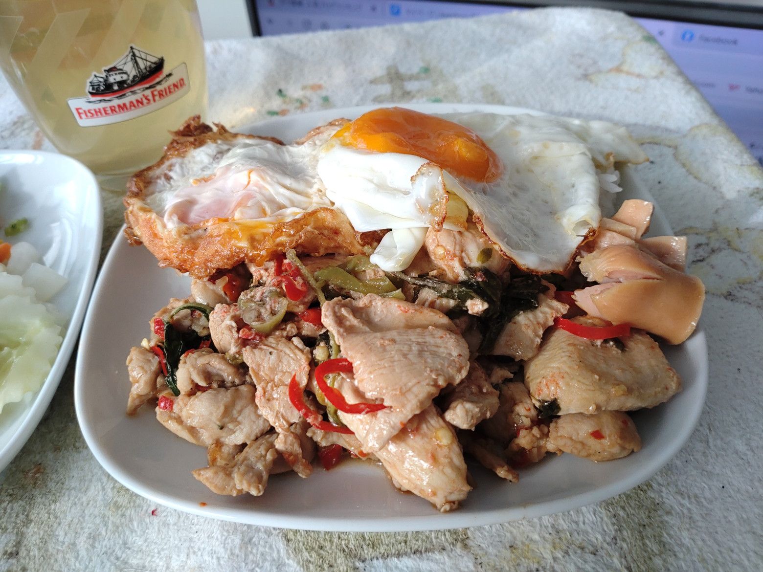 55バーツ。 ずっしりと重たかったです。 量が多かったので、目玉焼きを自身で作って追加。 個人的には、挽肉を使ったガパオライスは好きでは無く、大き目に刻んだ肉のガパオが大好きです。