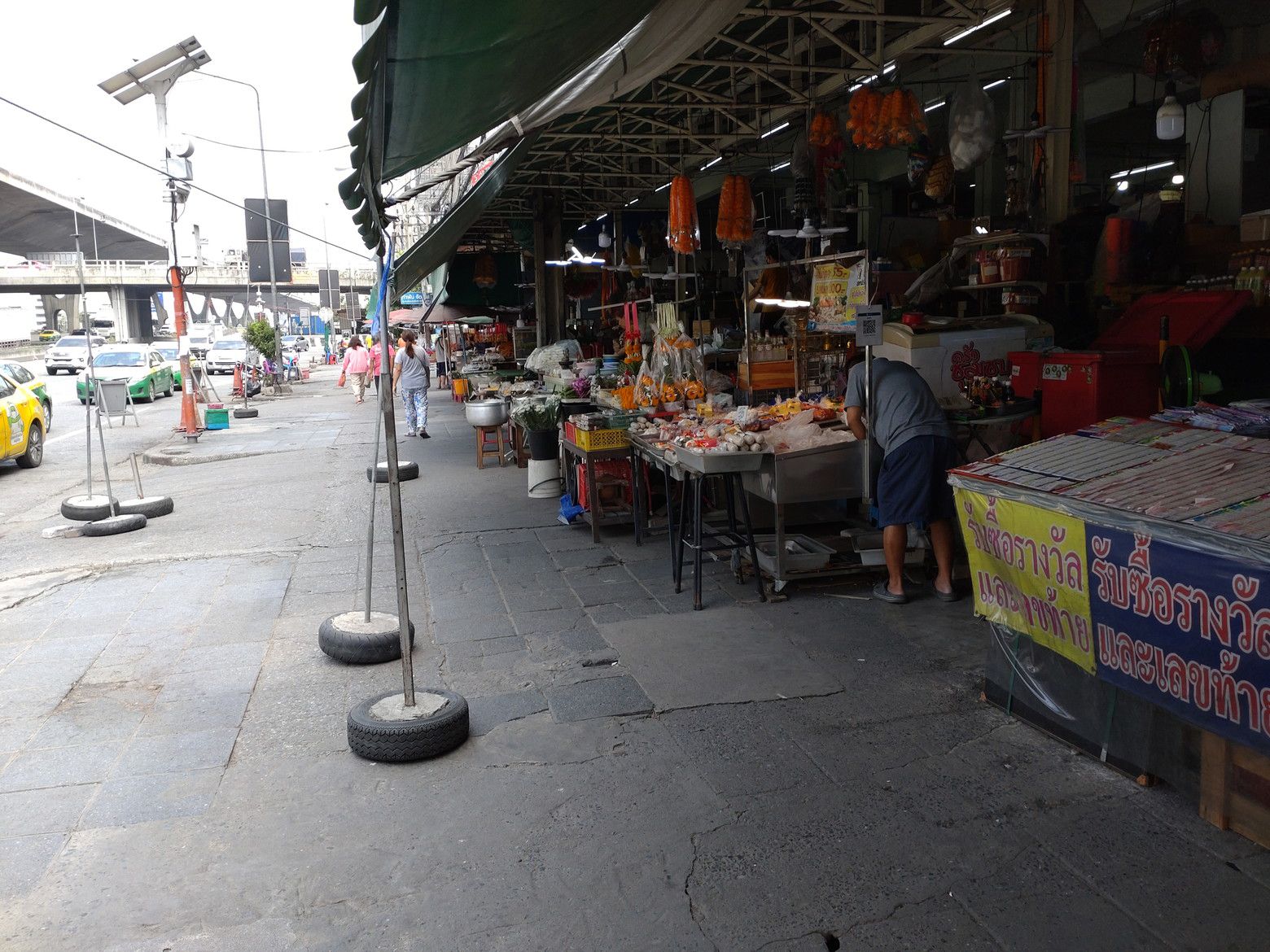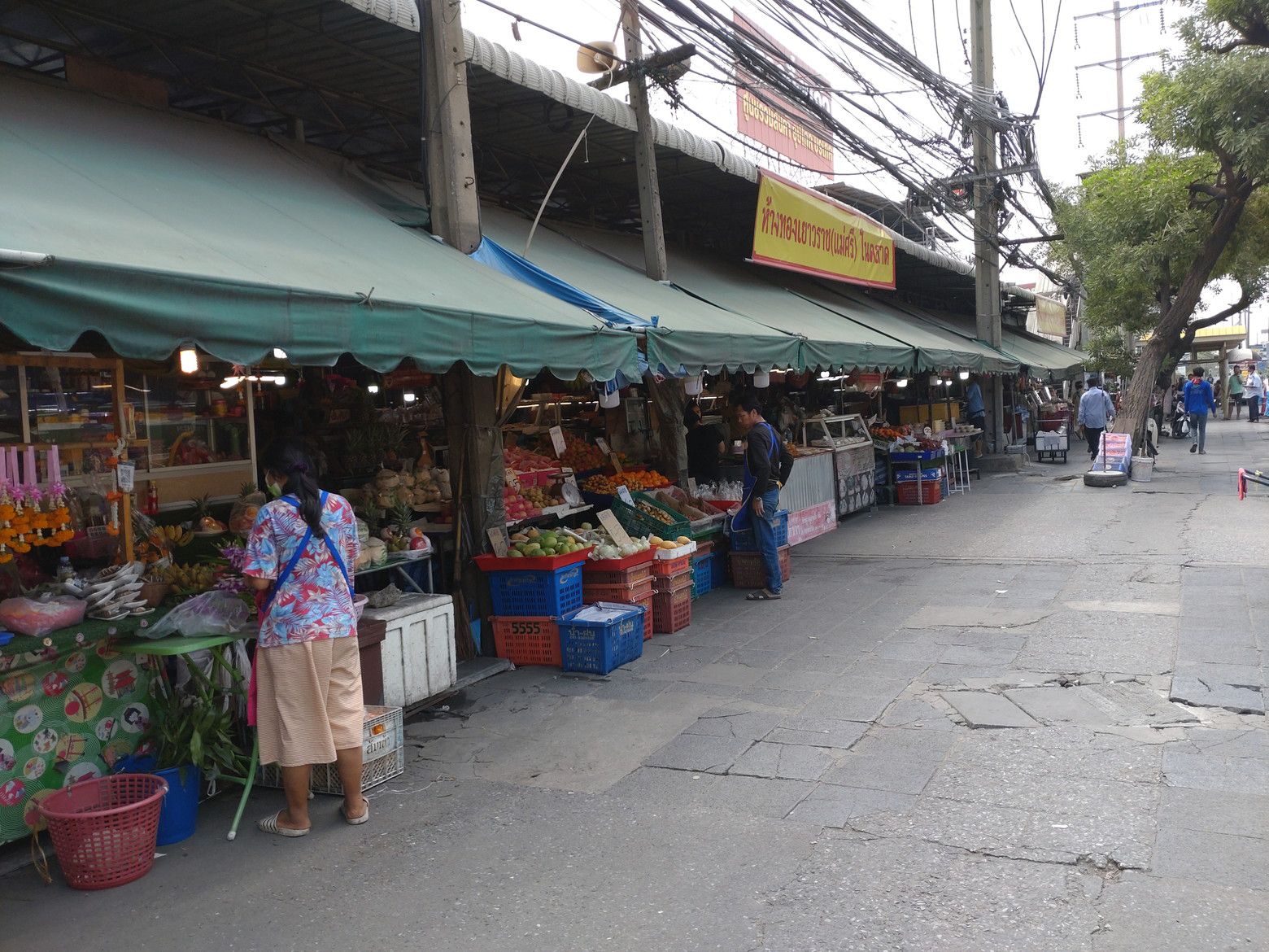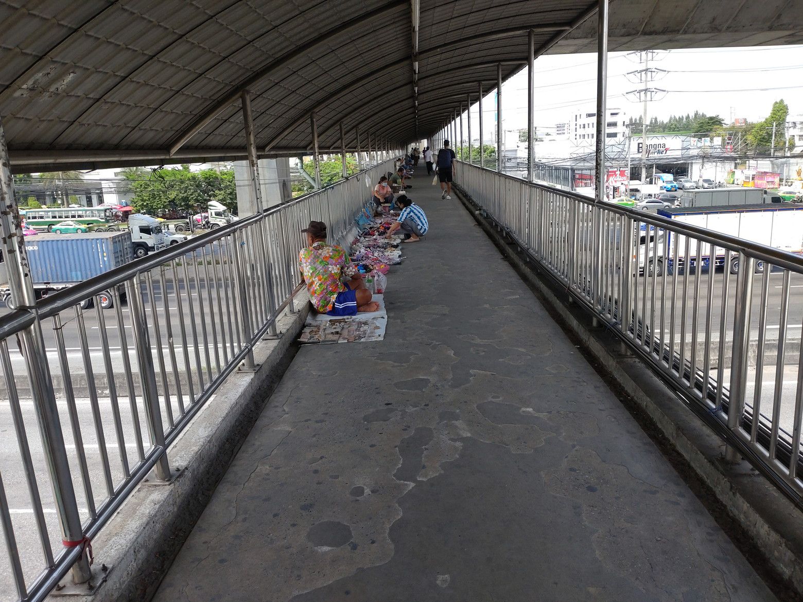 先日は。。。 以前から行ってみたいと考えていたバンナートラット沿いのショッピングモールへ行く為に、ウドムスック駅下の停留所から132番のバスに乗車しました。 降りたのは、キンケーオ市場前の停留所。 こんなローカル色の市場でした。 目的の場所は、歩道橋を渡った先。 マーケットビレッジです。