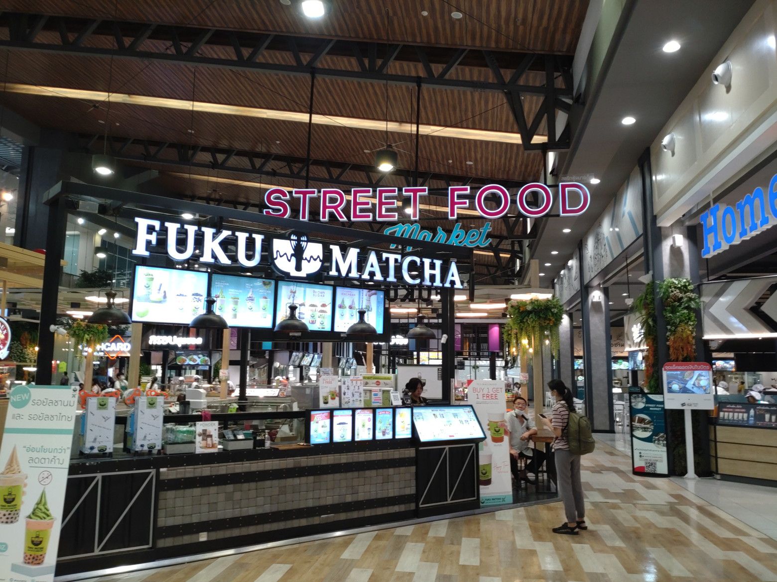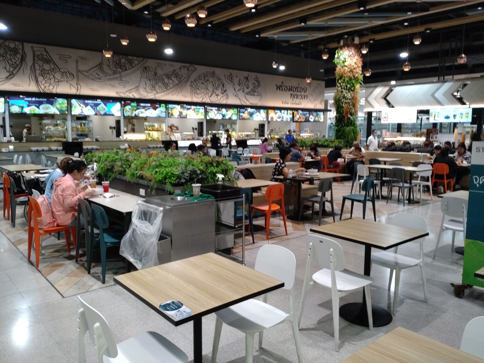 フードコートをチェック。 広くて清潔感があります。 色々と迷いましたが! ガパオライスにしました。