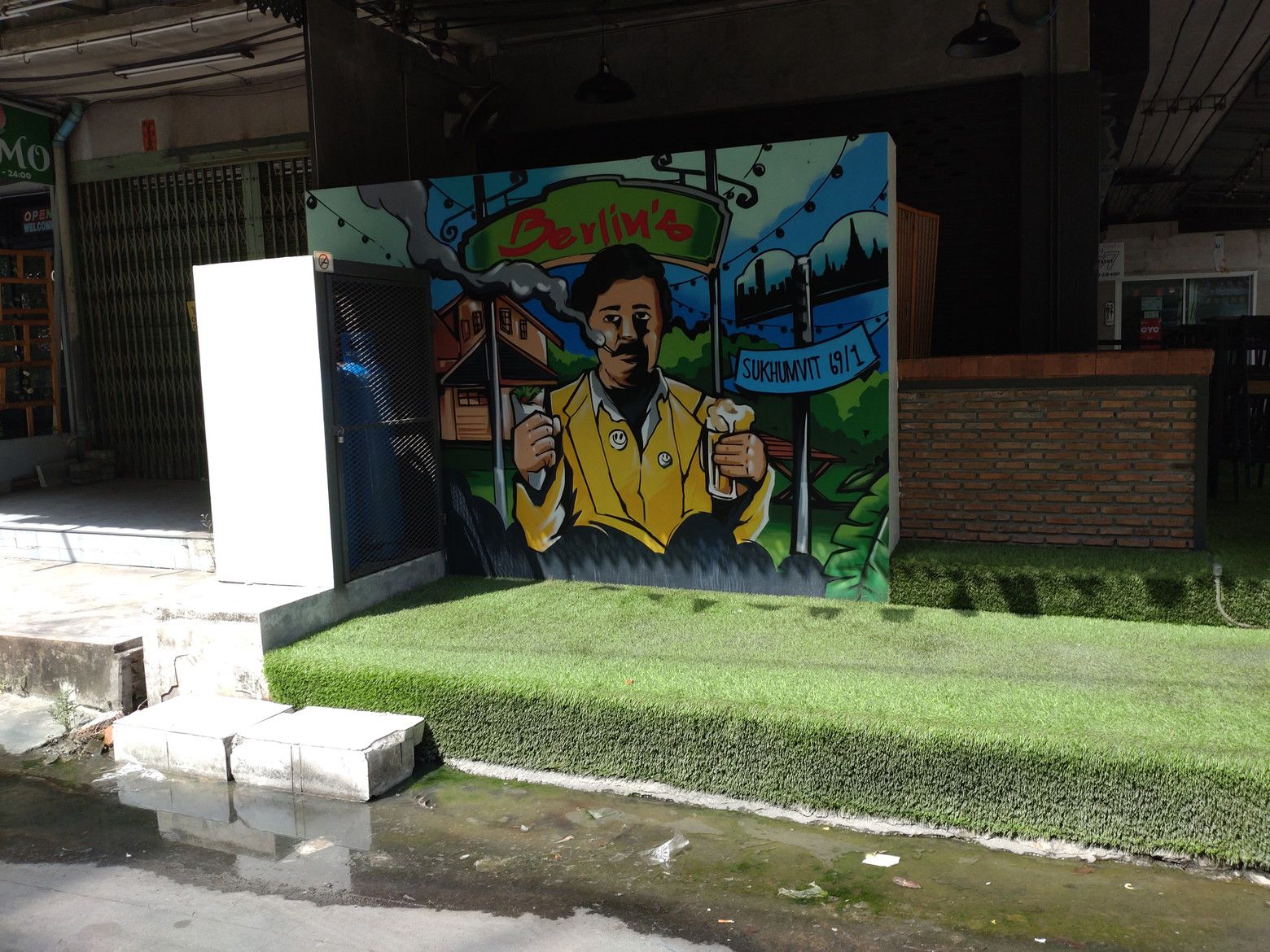 今回も、ウォーキングと買い物です。 晴天の日に片道1Kmを越える歩きは辛いのですが、プラカノン駅からマクロまでは、少しだけ楽しみがあるので頑張れます。 途中から近道に入るとアートが見れるのです。 あまり意味が分からないアートでも問題無し。 他にも幾つかありましたが、暑さを忘れさせてくれます。 何んとか到着しました。
