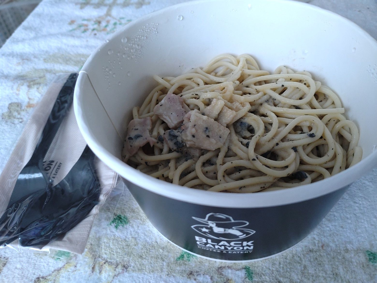 雨季に入ったと聞きましたが、雨も少ないです。 受け取り完了。 さて!後日ですがレンジでチン。 レンジから取り出すと、良い香りが感じられました。 見た目はシンプルなスパゲッティーですが、美味しかったですねぇ!