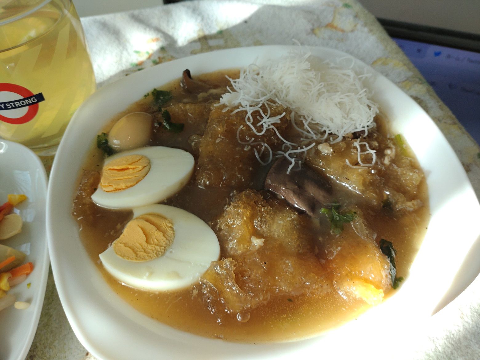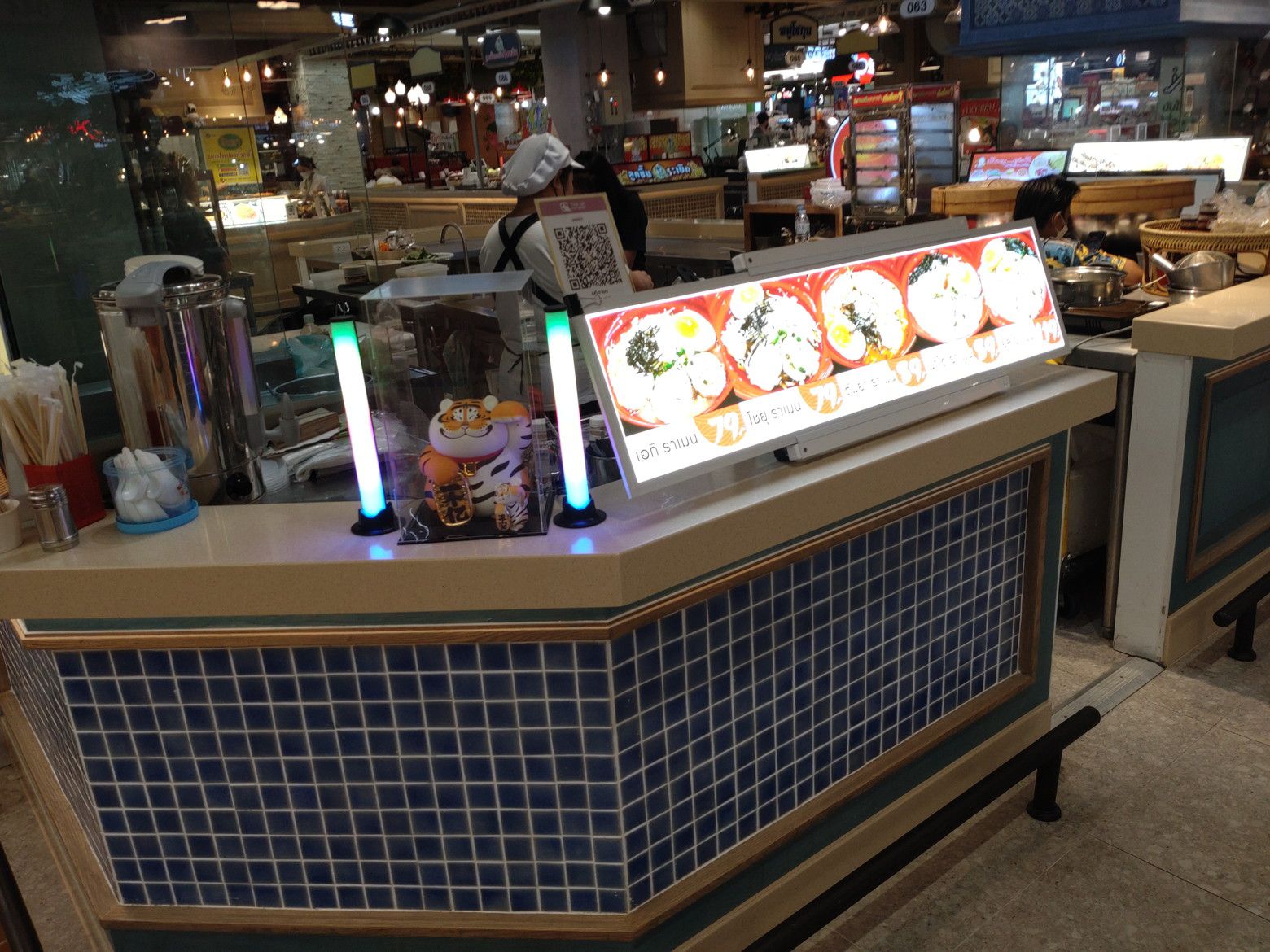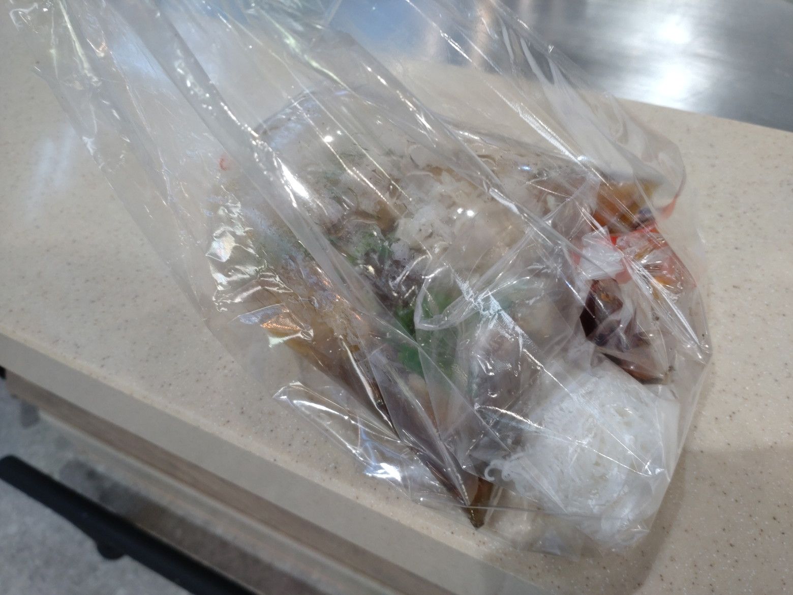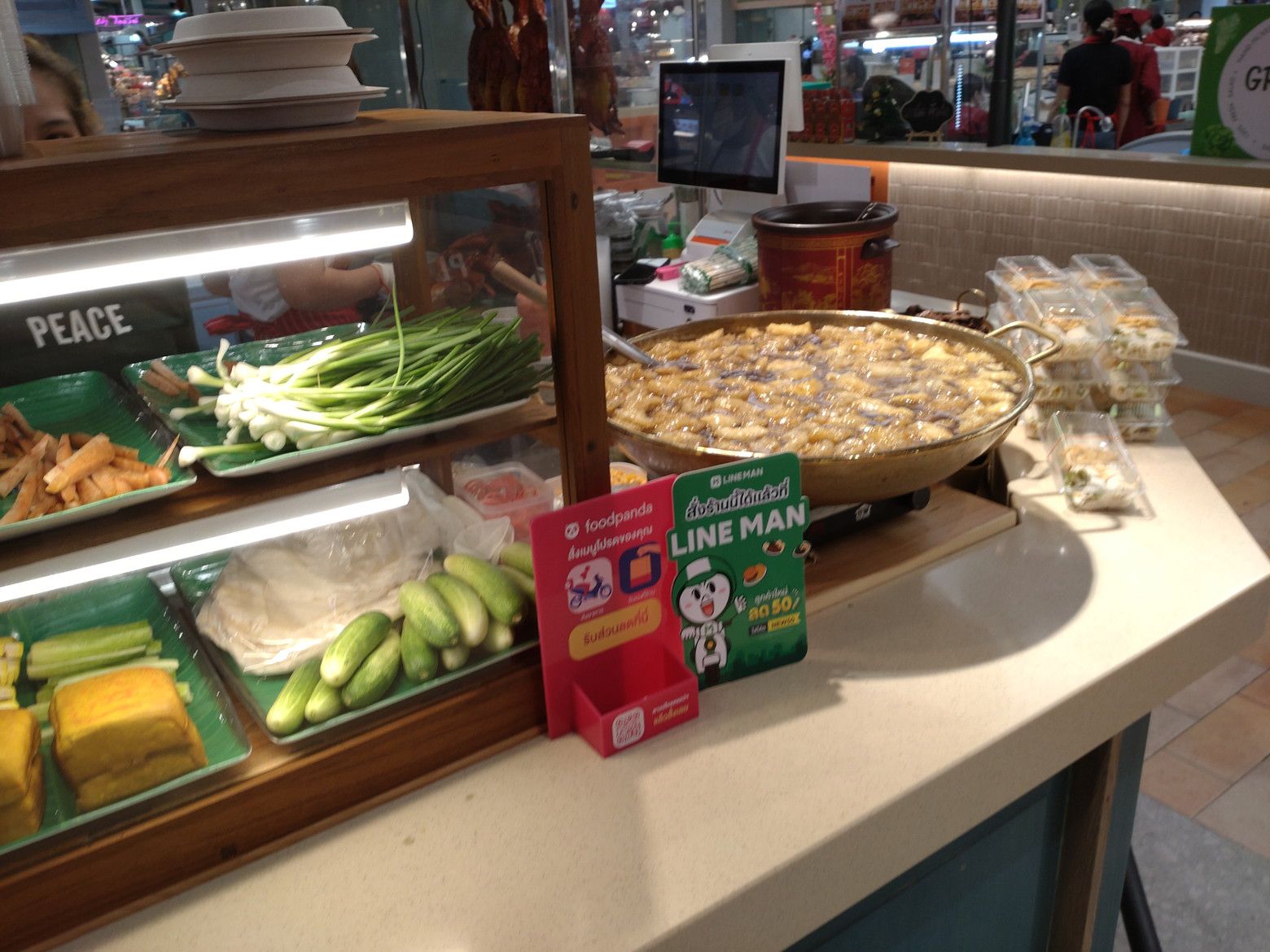 次回来た際には、オープンしているのでしょうか。 歩き易い3階を歩いていると、下から犬の吠える声が聞こえてきたのですが、こんな看板を発見。 1階に降りて見物です。 犬だけではなく、動物の販売の催しでした。 ついでに、地下のフードマーケットへも。 お洒落な雰囲気で、色々な料理の店が建ち並ぶ他にもフードコートもあります。 まずは、一つ目のテイクアウトはこの店にしました。 このトロトロスープに心が引かれました。 蟹肉入りのスープです。 受け取り完了。
