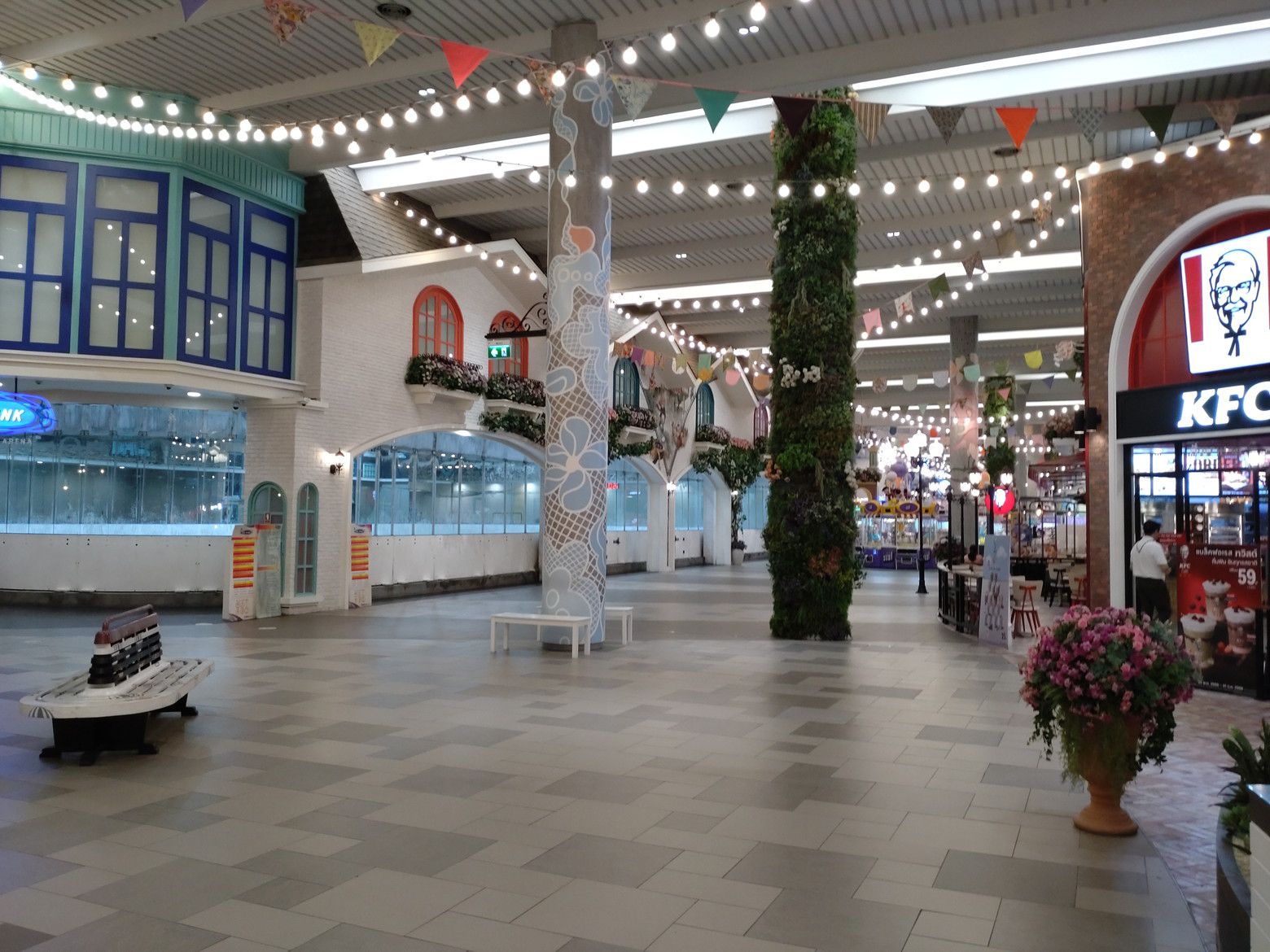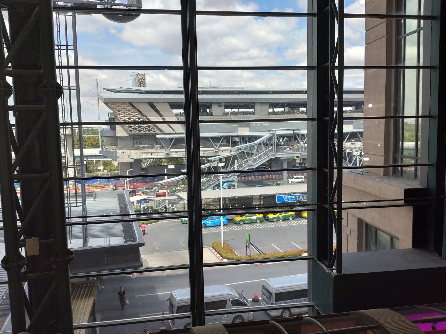 窓がクリアーで広いので、景色を眺めながらの約1時間旅。 到着です。 早速、好きな眺めの場所へ行きました。 時計の方向へ歩いて行き、逆方向を眺めると、こんな感じです。 見えるのは、近い将来開通予定のモノレール ピンクラインの駅です。 早速、ウォーキングに入るのですが、雰囲気の良さに気分も爽快です。 ちょっと驚いたのが、こんな看板でした。