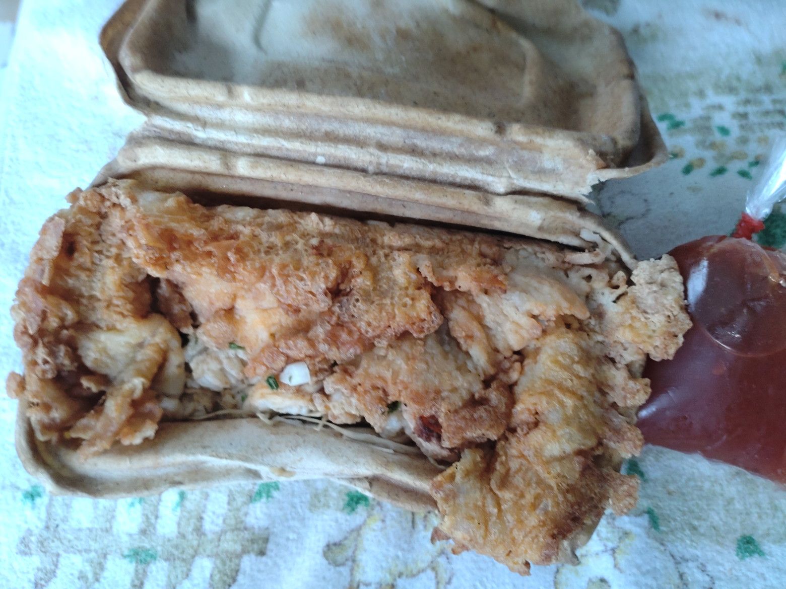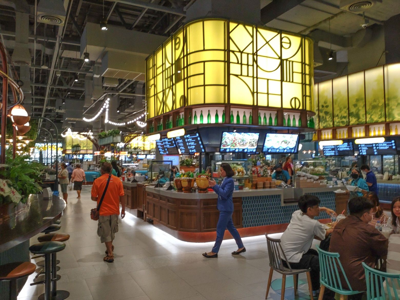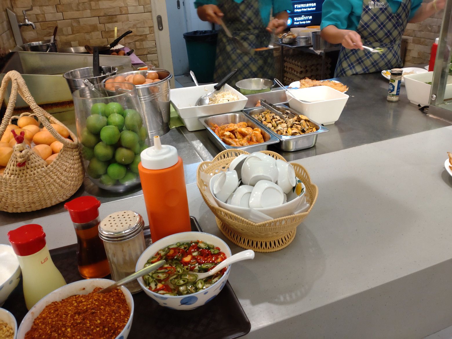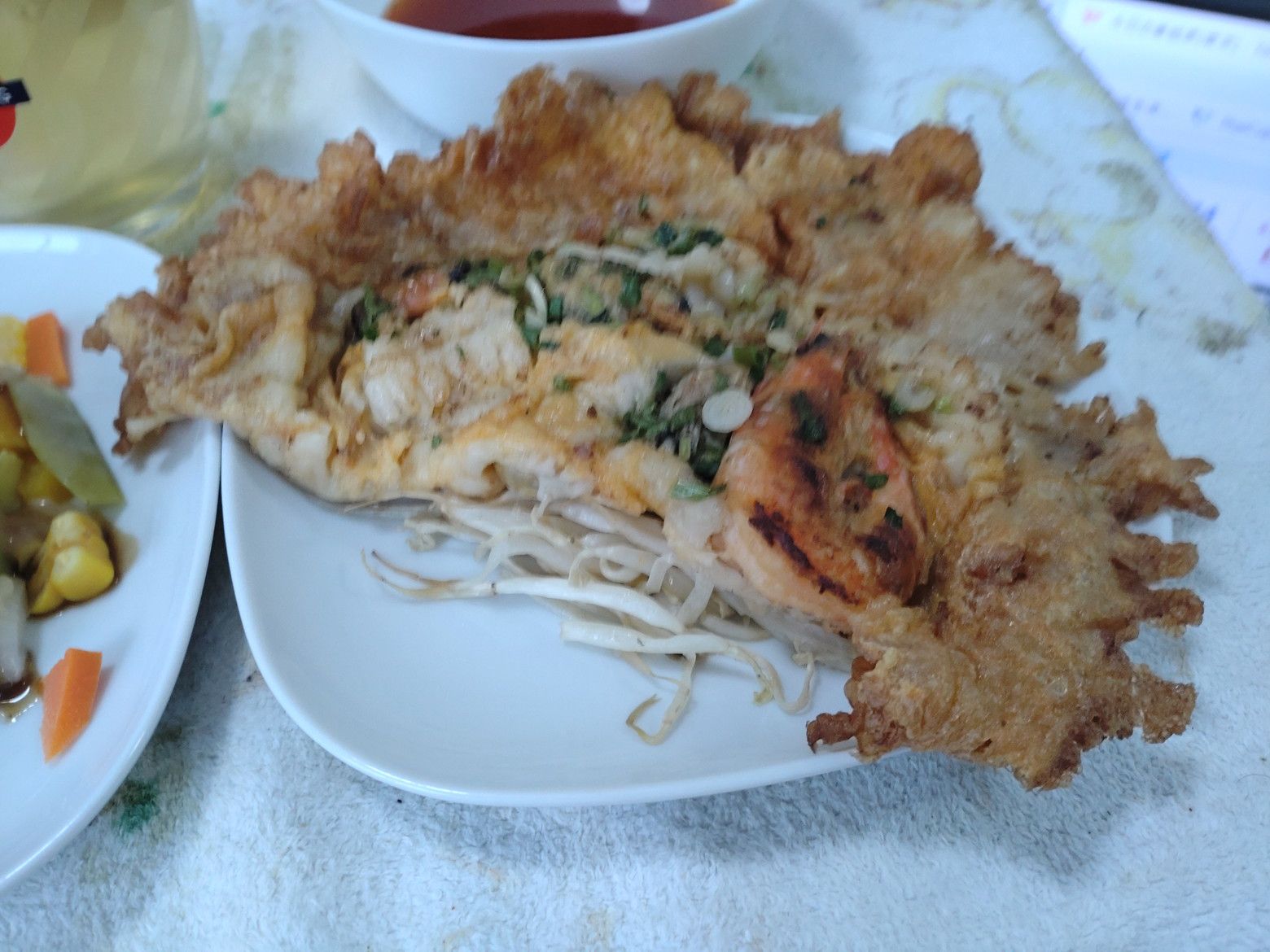 結構歩き回りますが、ベンチも各所にありますので、休憩としながらのウォーキングが出来ます。 さて!最後には此処のフードコートでの買い出しです。 清潔感があり、店も多く並んでいます。 今回は、この店にしてみました。 鉄板焼きの料理です。 シーフードを注文です。 受け取り完了です。 後日、冷蔵庫から取り出しました。 見ただけで、今回は失敗だったなぁと思ったのが本音です。 やはり、出来立てのパリパリ状態で食べるのが一番ですよね。