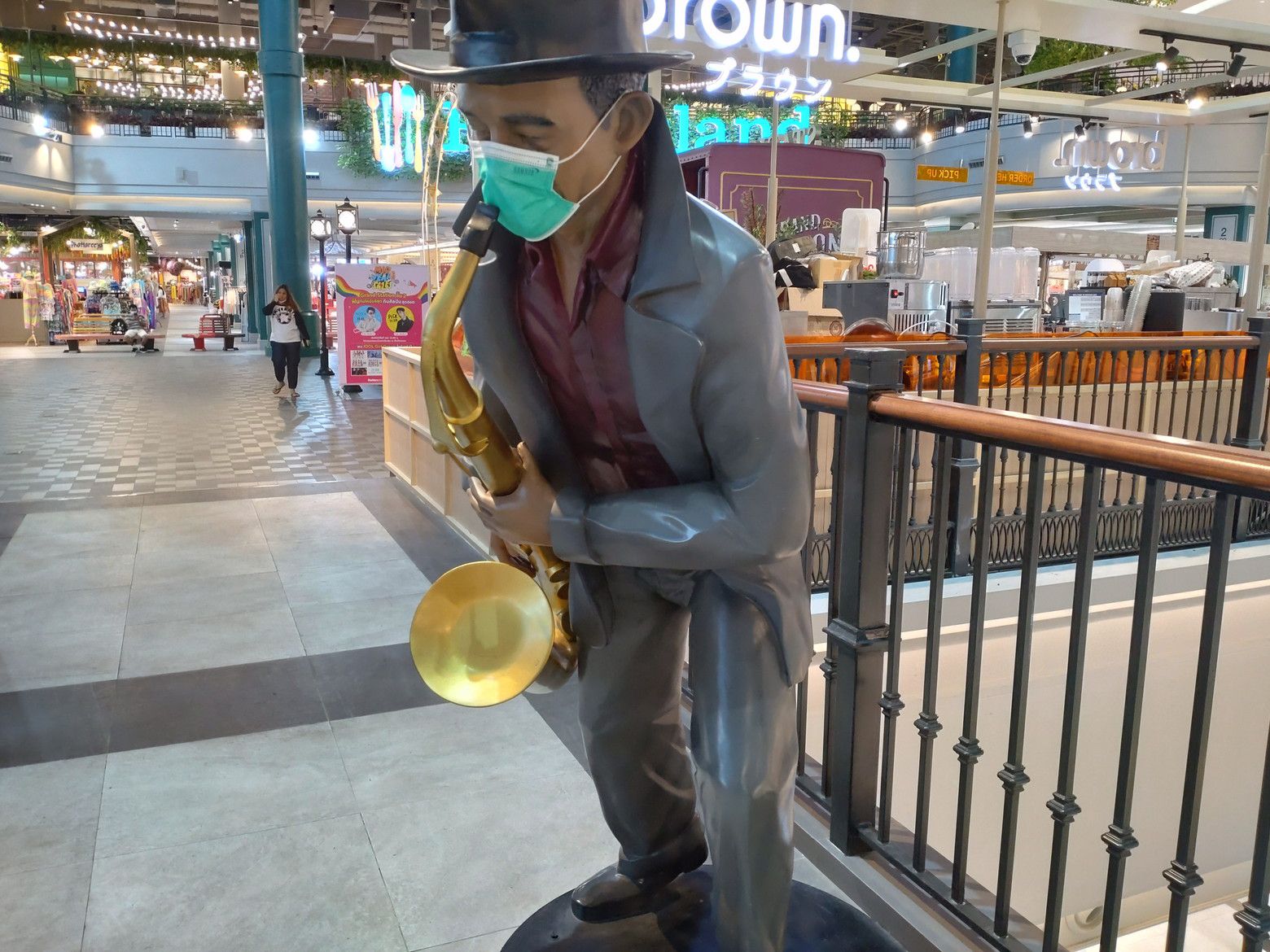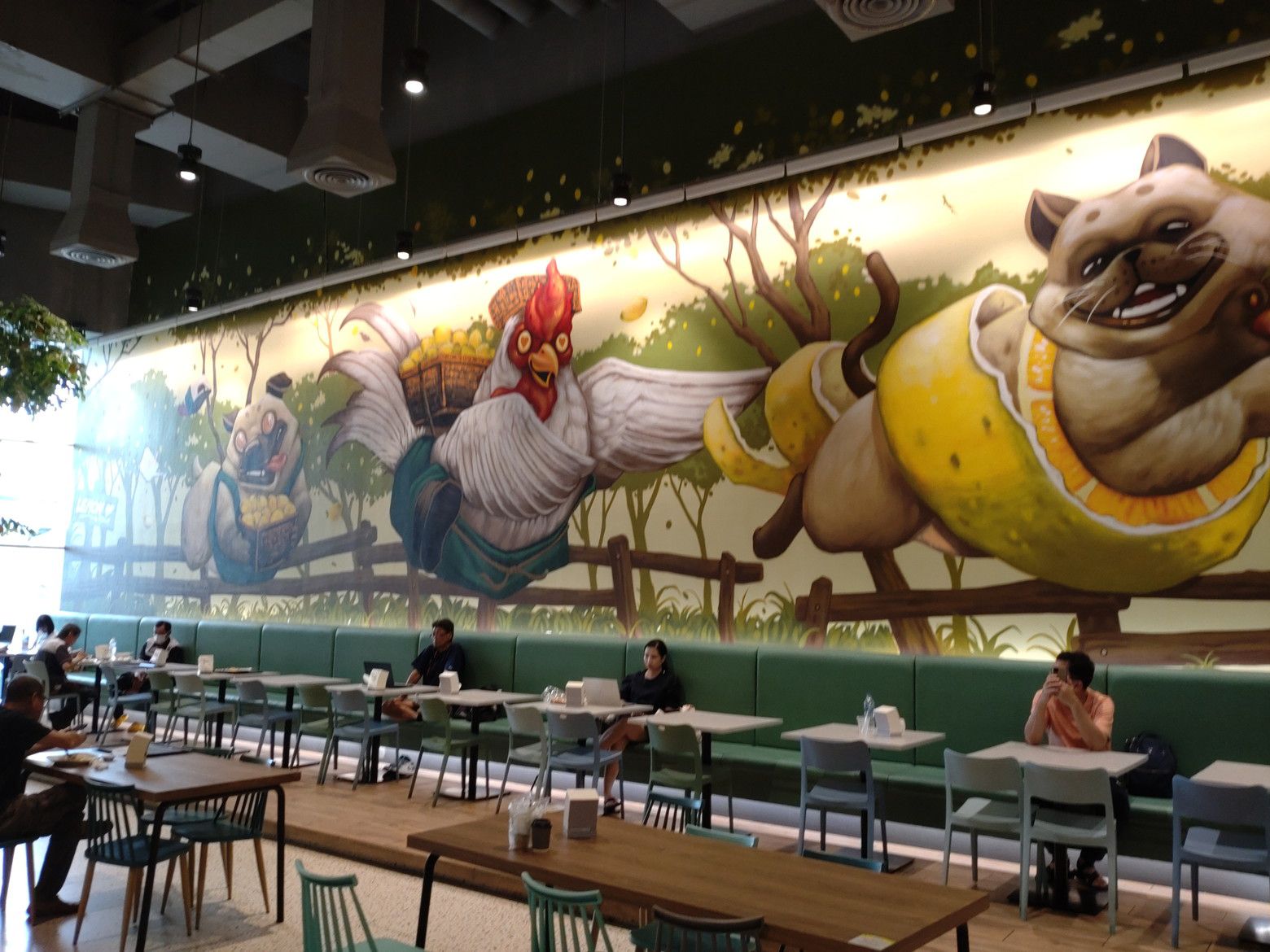 これは、休憩の為のベンチの近くに描かれていたアートです。 そして、これがフードコート。