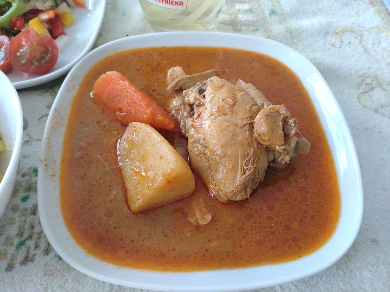 今回は、マッサマンカレーを注文です。 85バーツ。 何度食べても飽きません。 スープは旨味はありますが砂糖の甘みは感じません。 何しろ、鶏肉が非常に柔らかいのです。