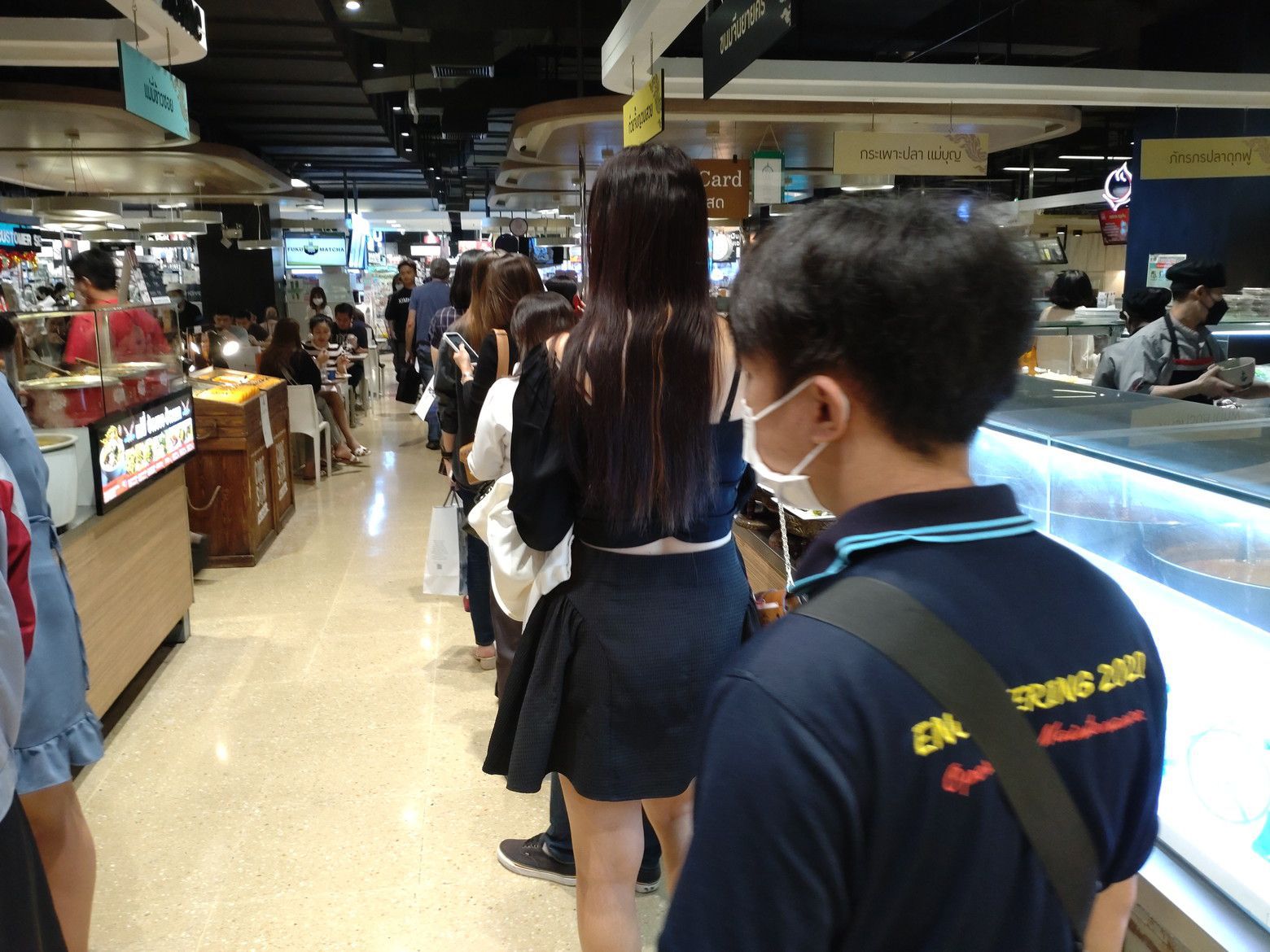 他にも何カ所かあってラチャダー通りはナイトマーケットだらけ。 もう、この時には結構な歩数を歩き、疲れ気味だったので、早々に地下のフードコートへ行くと、現金をカードにする人たちの行列が凄かった。