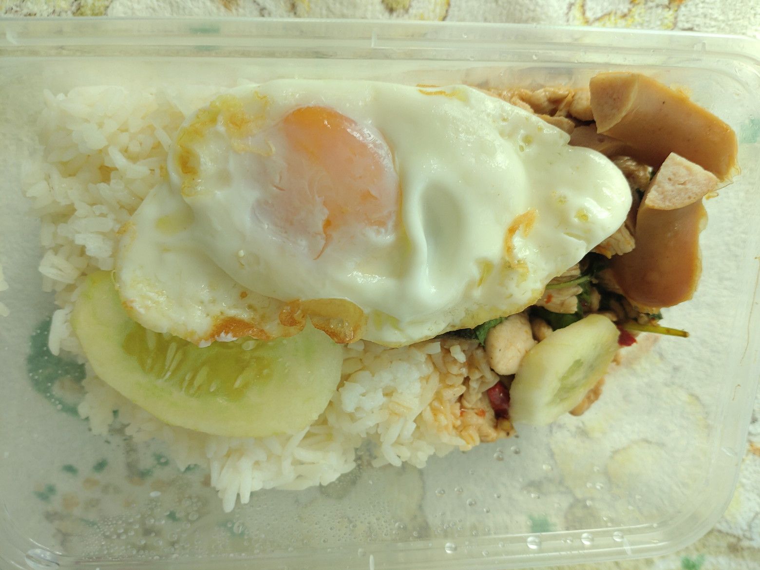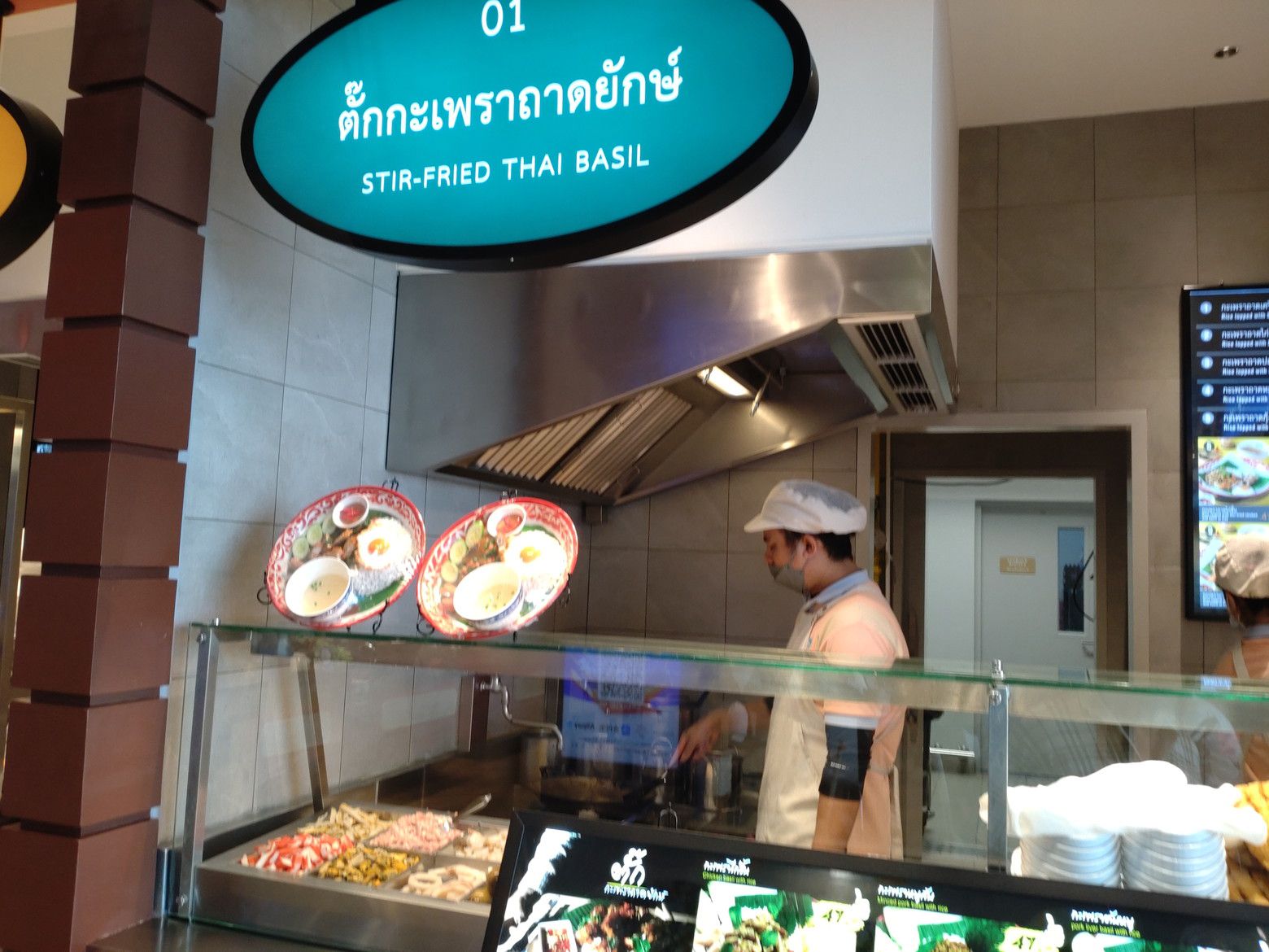 運賃は、15バーツ。 此処へ来ると、毎回ではありますが。。。 3階の奥へと進み。。。 チャオプラヤー川の景色を眺めるのが好きなんです。 スカッとする気分になります。 各階を、ブラブラするのですが、少しイタリアの雰囲気を楽しみました。 仕事で1度だけ行った事がありますが、気さくな方々だったとの印象です。 もう、随分と昔の事ですので、撮った写真は何処へやら?ですね。 今回は、フードコートを覗いてみると、大混雑までは至っておらず、初めて買い出しを挑戦してみました。 とは言っても、そこそこ混んでました。 焦らず、休憩もしながら。。。 結果は、ガパオの店にしました。 お値段は安めですね。 受け取り完了。 パックを開けてみると、ライスが結構な量ありました。 美味しかったのですが、辛かったぁ!