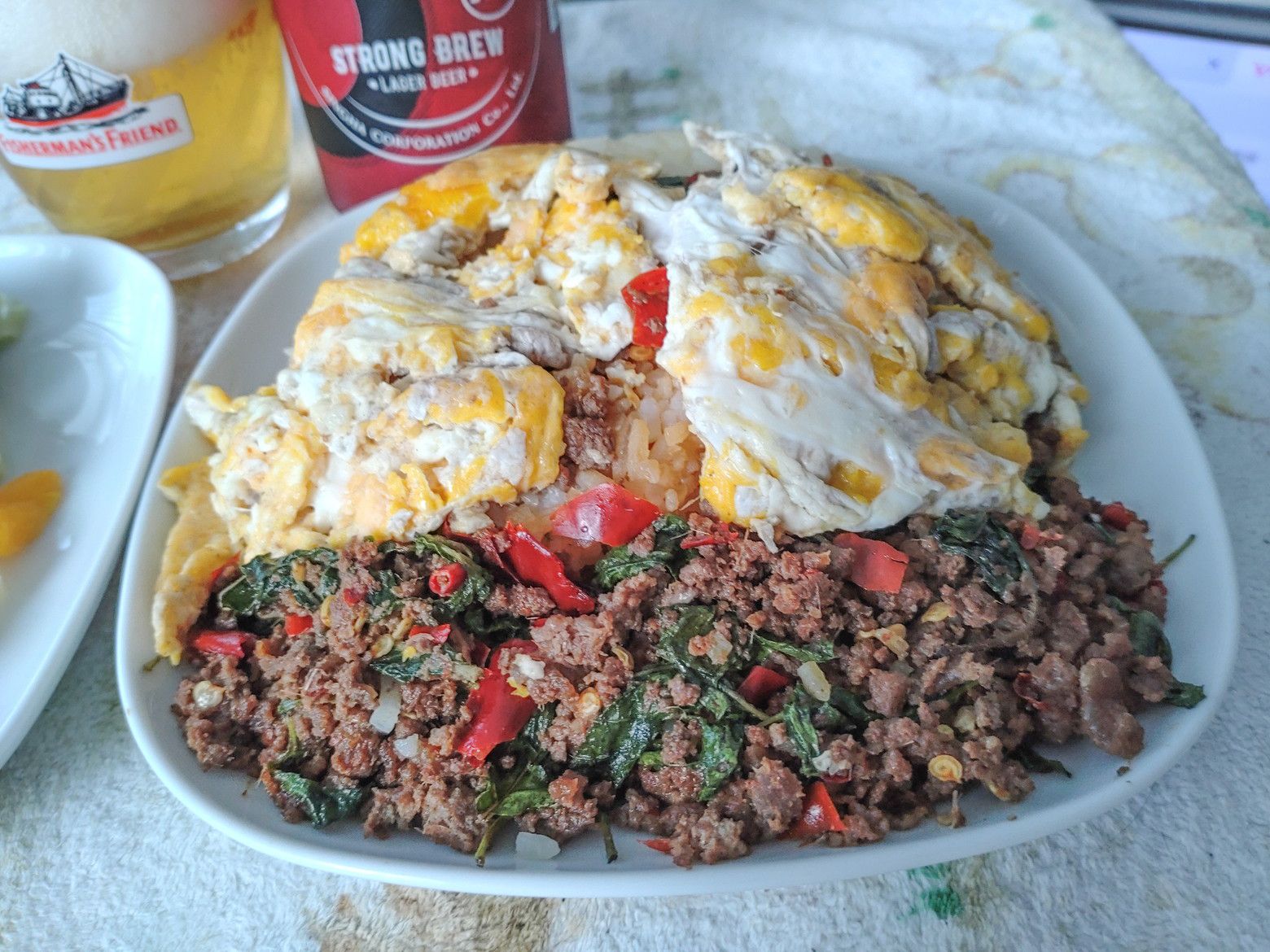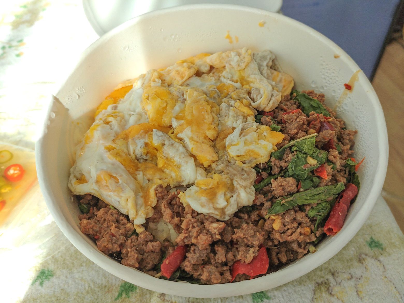 なのですが、珍しく牛肉があると言うので、注文。 ちょっとお高めの120バーツ。 楽しみですね。 盛り付け完了。 牛肉が食べられて嬉しいです。