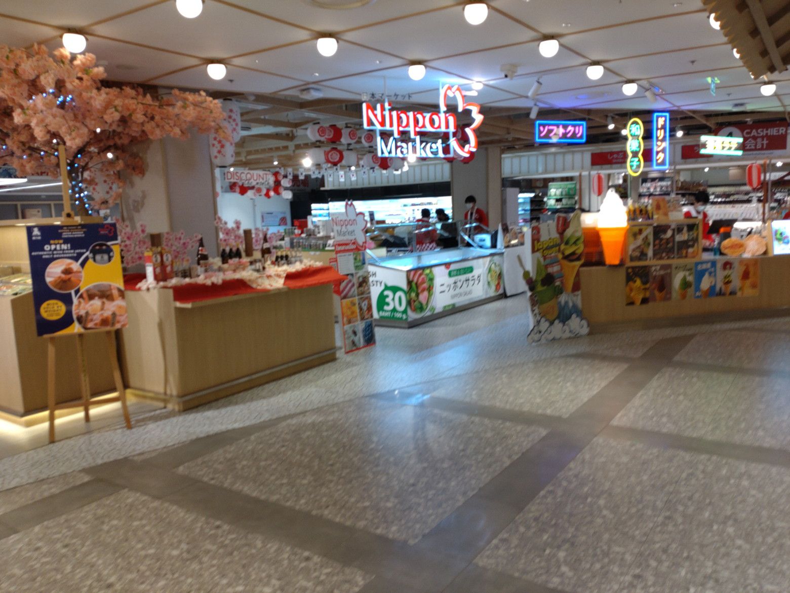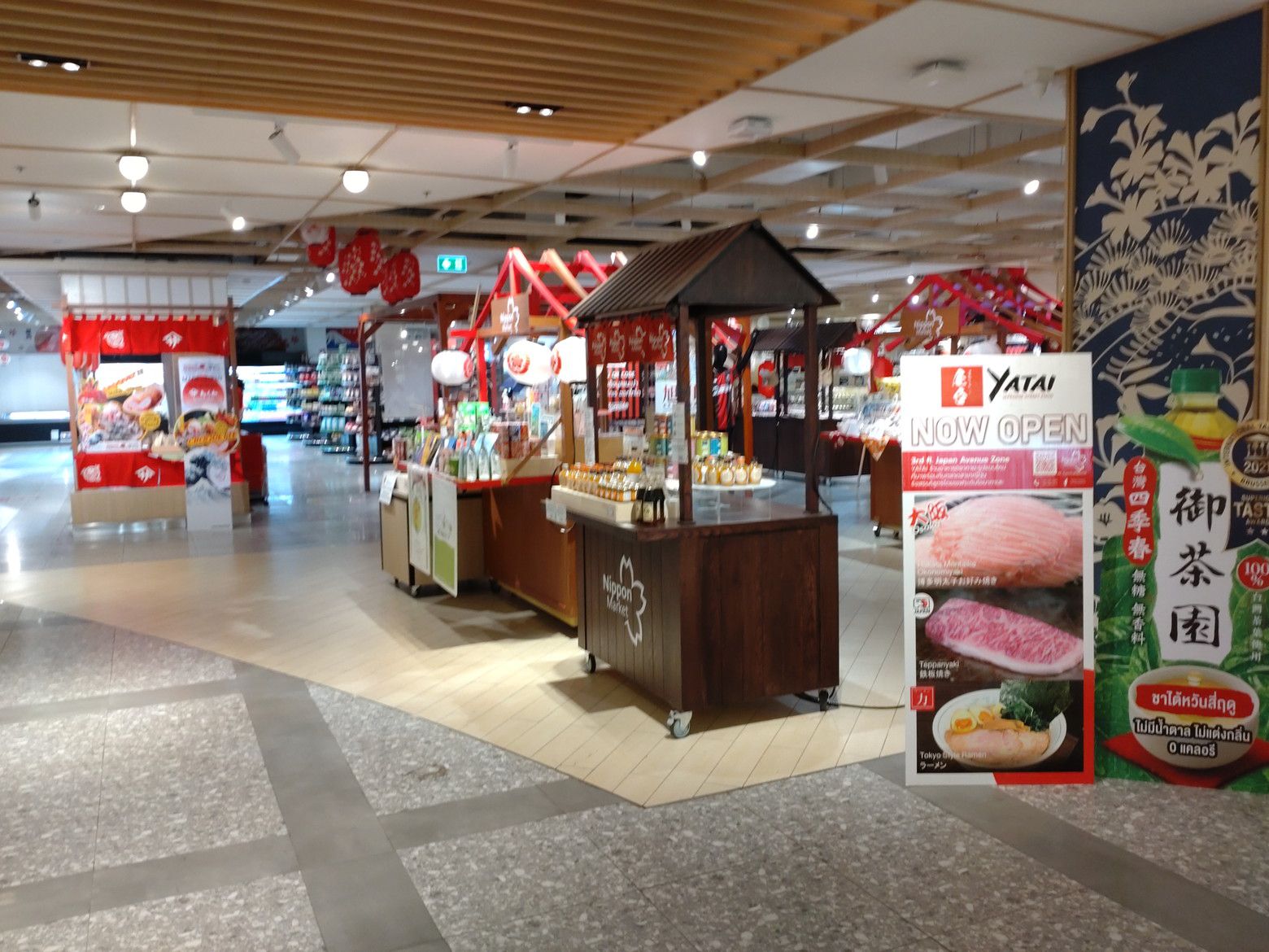 結構なお客さんの入りでした。 そして、直ぐ横のスペースには、寝具の西川でしょうか?10月にオープンするんですね。 場所が近かったので日本マーケットも覗いてみました。 時間が午前中だからか?お客さんの入りは、パラパラ。 そして、レストランフロアーを歩いていると、行列を発見。