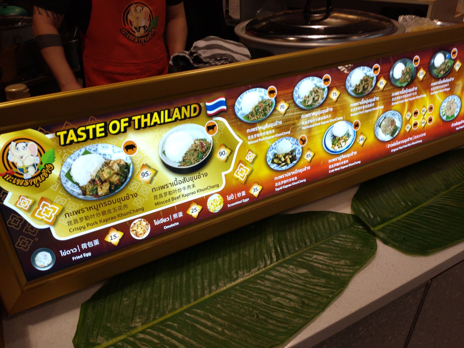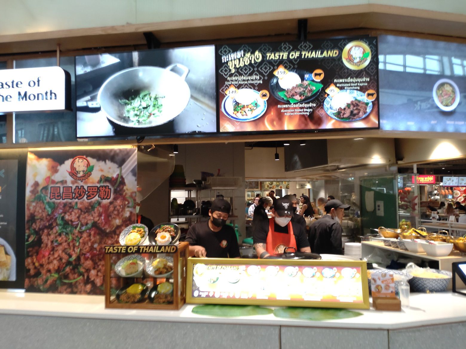 何の店かをチェックすると。日本の生パスタの店の様です。 スシローは、少し隅っこに在りましたが、頑張って欲しいですね。 結構な汗をかいた後は、買い出しです。 この時は、丁度昼飯時だったので混んでました。 今回は、ガパオの店にしました。 しかし、残念ながらチキンは無し。
