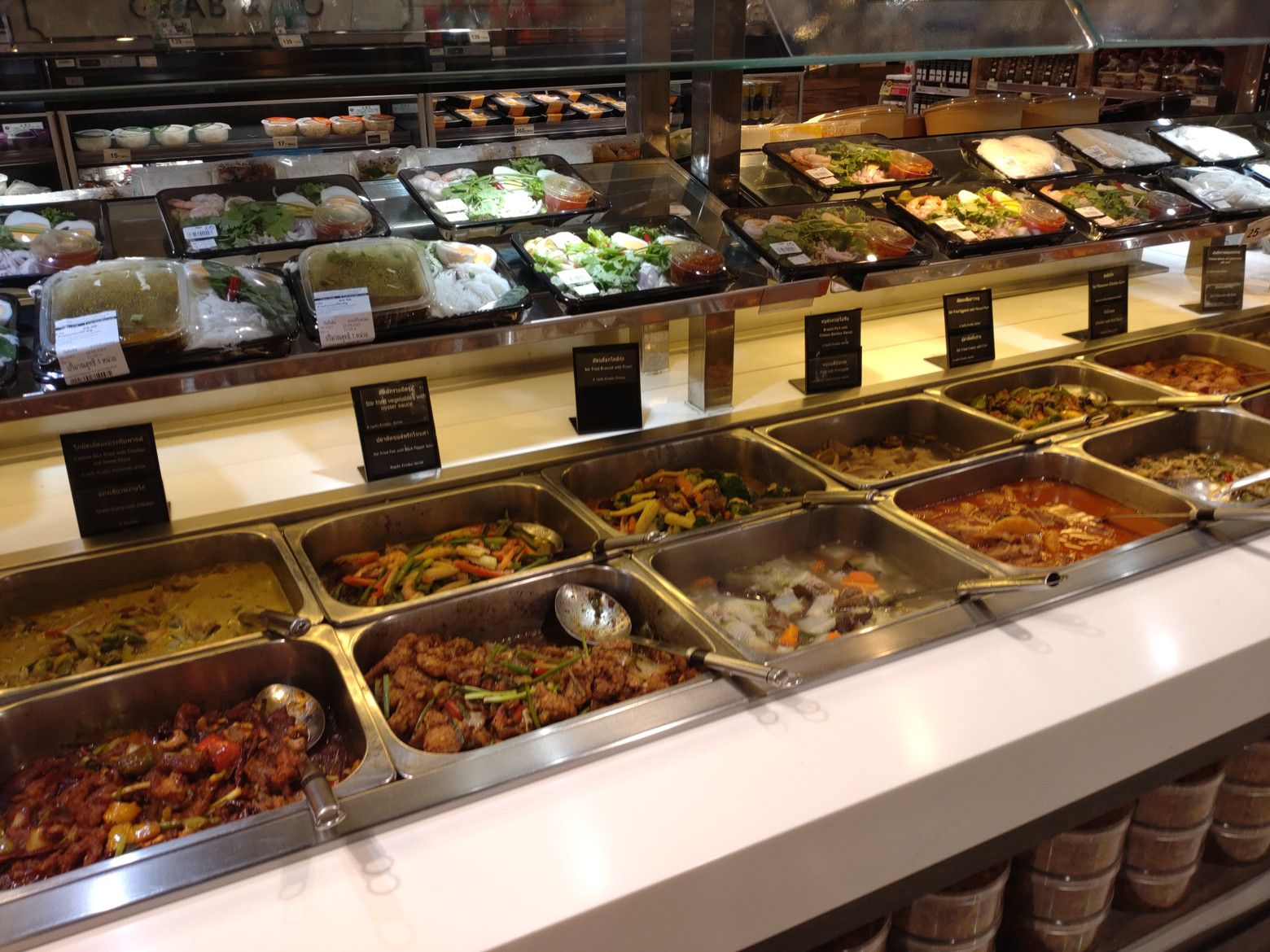 ウドムスック駅下のバス停から、132番のバスに乗り。。。 セントラルバンナーへ。 いつもの事ながら、ウォーキングからスタート。 こんなに綺麗な休憩所があるに加えて、通路にもベンチが備えられているので、自分のペースを保ちながら頑張りました。 その後は、催し会場をチラリと見て。。。 食料品のフロアーへ行きました。 時間的にも昼時だったので、大混雑でした。 来る度に大混雑と言って良い位です。 個人的にも、此処の料理は非常に美味しいと感じています。 この日も。この惣菜コーナーから選ぶ事にしました。 セントラルバンナーの場合は、自分で容器に入れて、店員さんに渡して、重さを量ってもらい値札を付けてもらいます。