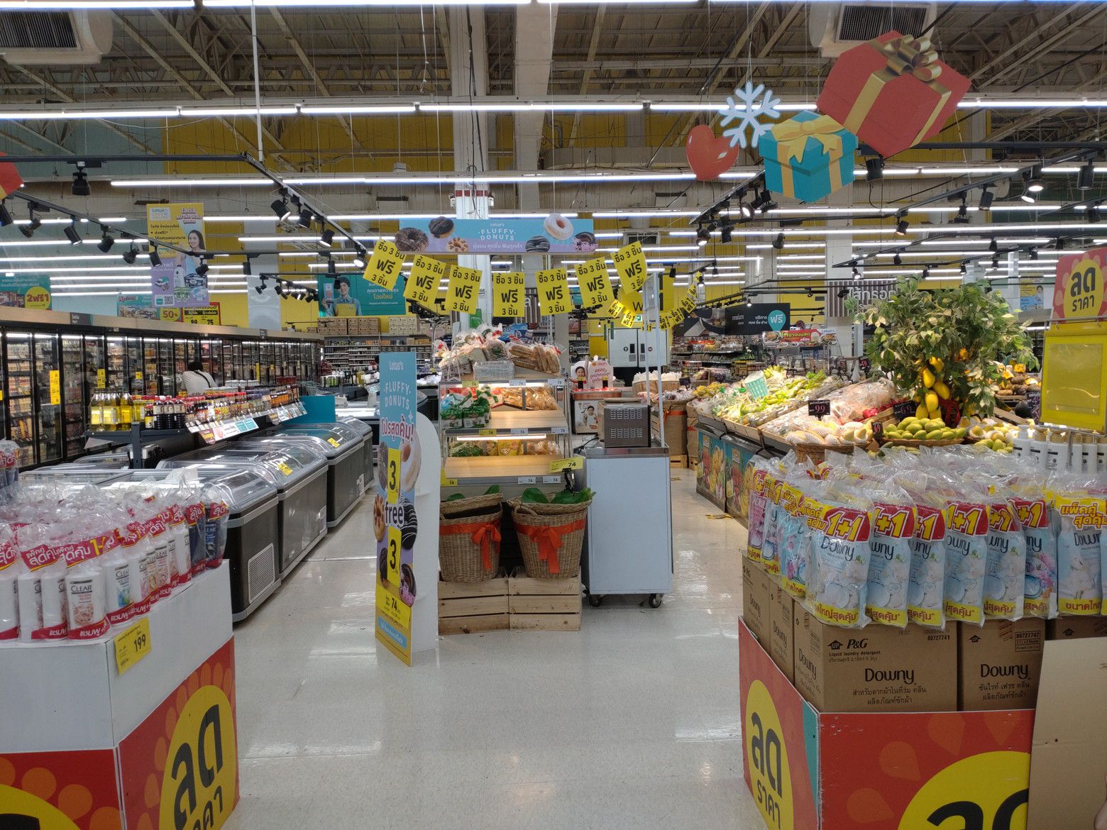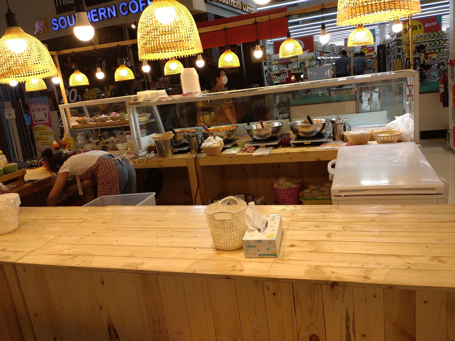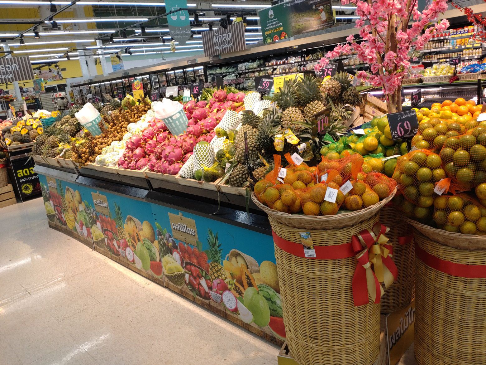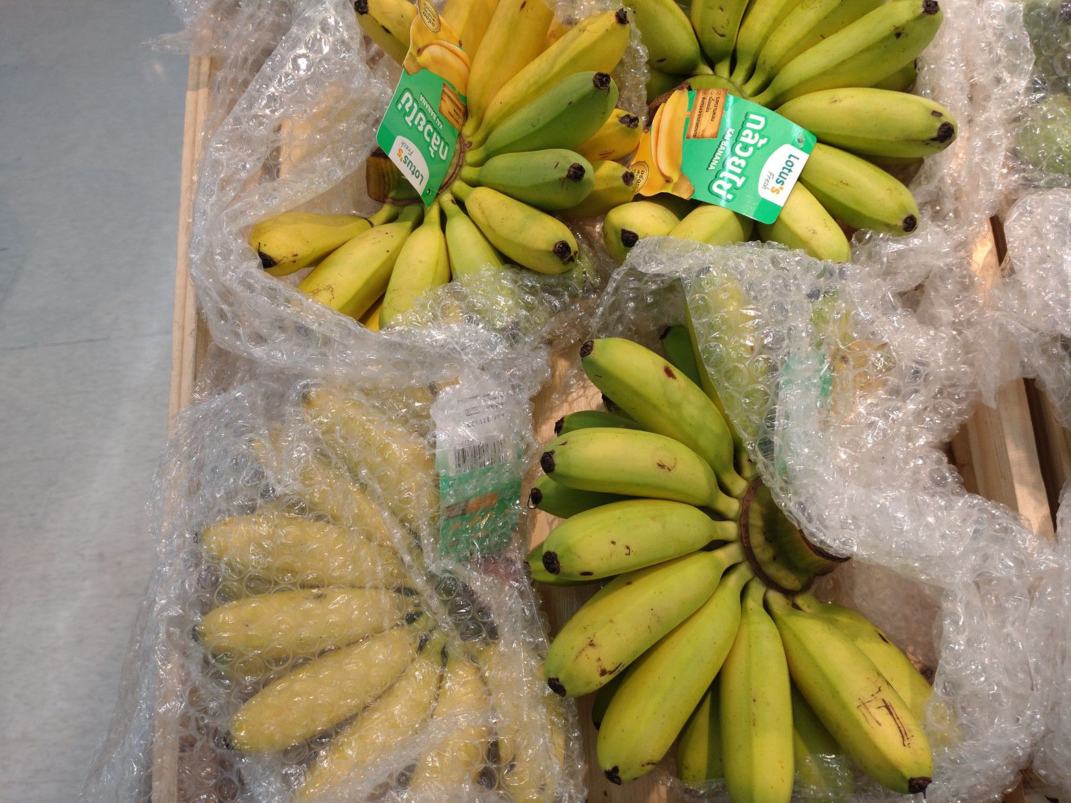 何故かグーグルでは表示されていないのですが。。。 マーケットビレッジの奥へ進むと、ロータスが在ります。 丁度、バナナが無くなったので、ここで買って帰る事にしました。 果物がある場所を探すと、ありました。 非常に綺麗に並べられていました。 目的のバナナを発見。 好みの細くて短いバナナもありました。 久しぶりにマンゴーも1個。 これで会計しました。 さて!残念ながら此処にはフードコートが無いんです。