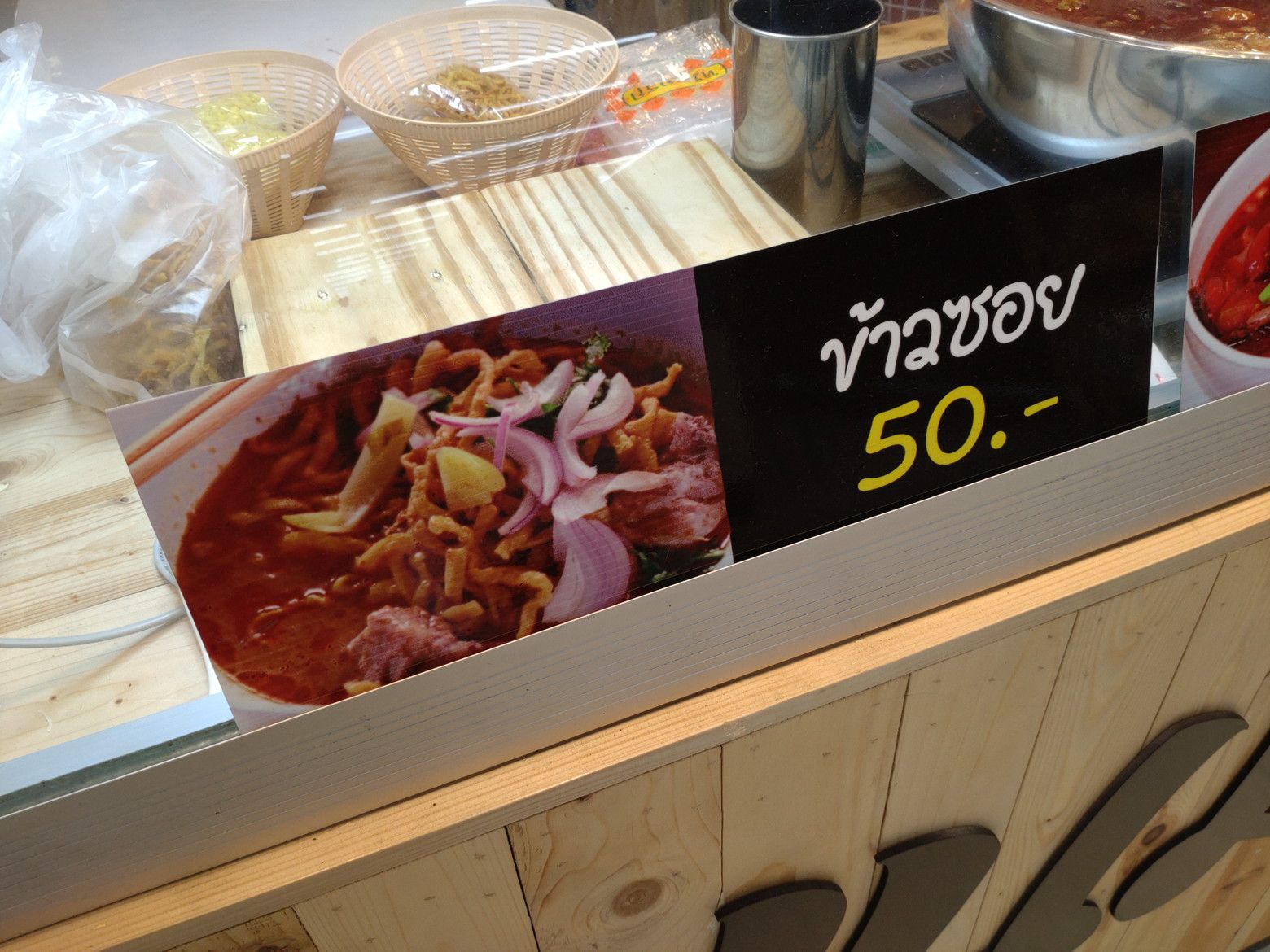 惣菜コーナーも見ましたが、好みは無し。 しかし、美味しそうな店を発見。 メニューをジロジロ眺めていると。。。 カオソーイがあるではないですか!