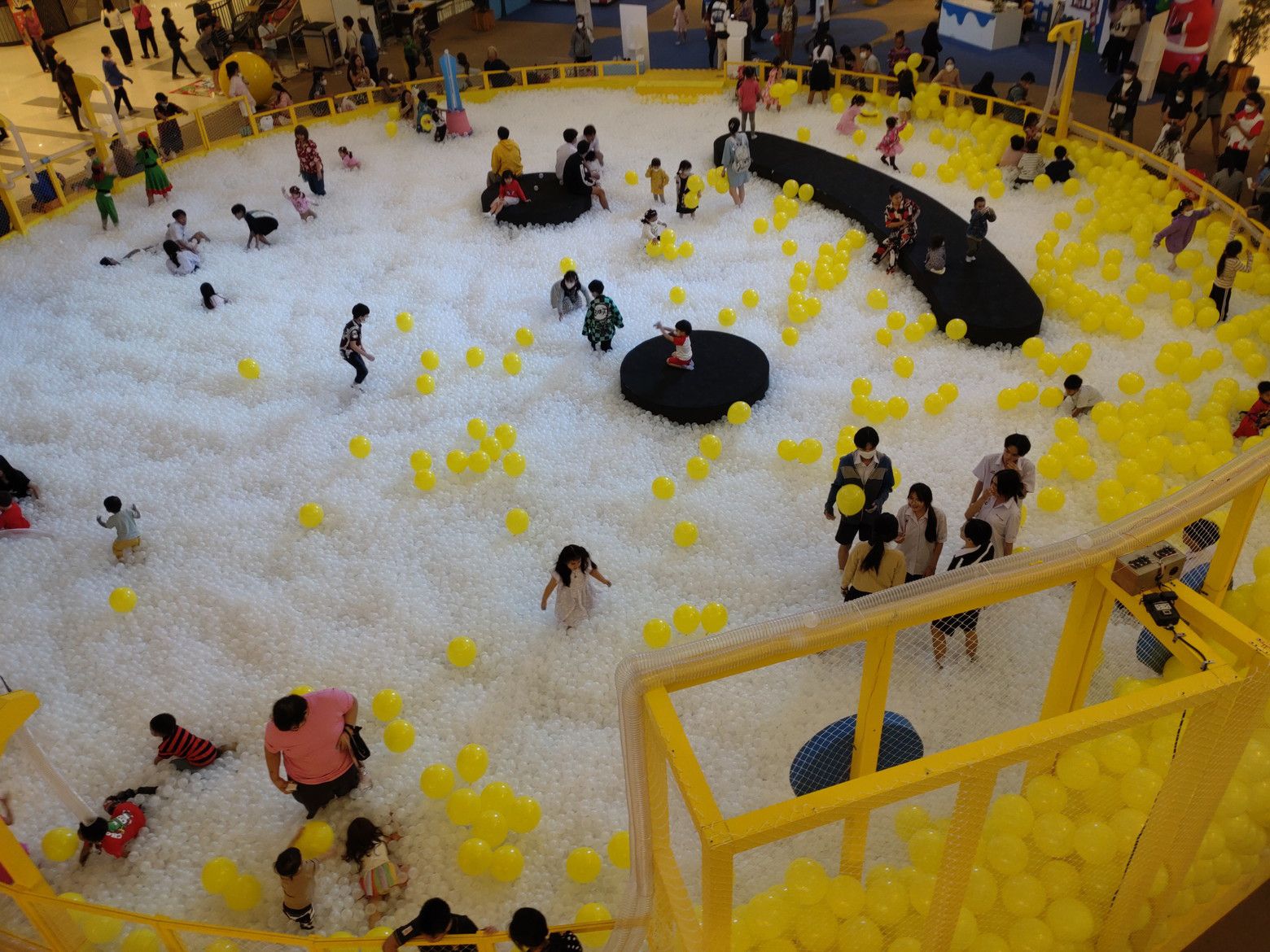 頑張って欲しいですね! ホッとした後は、催し会場を眺めました。 ボールのような物が敷き詰められた場所で、子供たちが遊んでます。