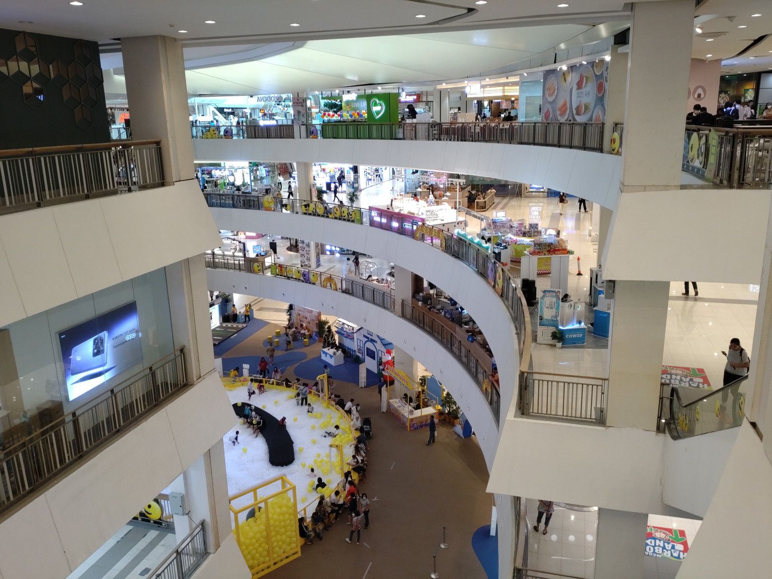 中心部のショッピングモールは混んでいて、休憩用のベンチも少ないので、ウォーキングには向いていません。