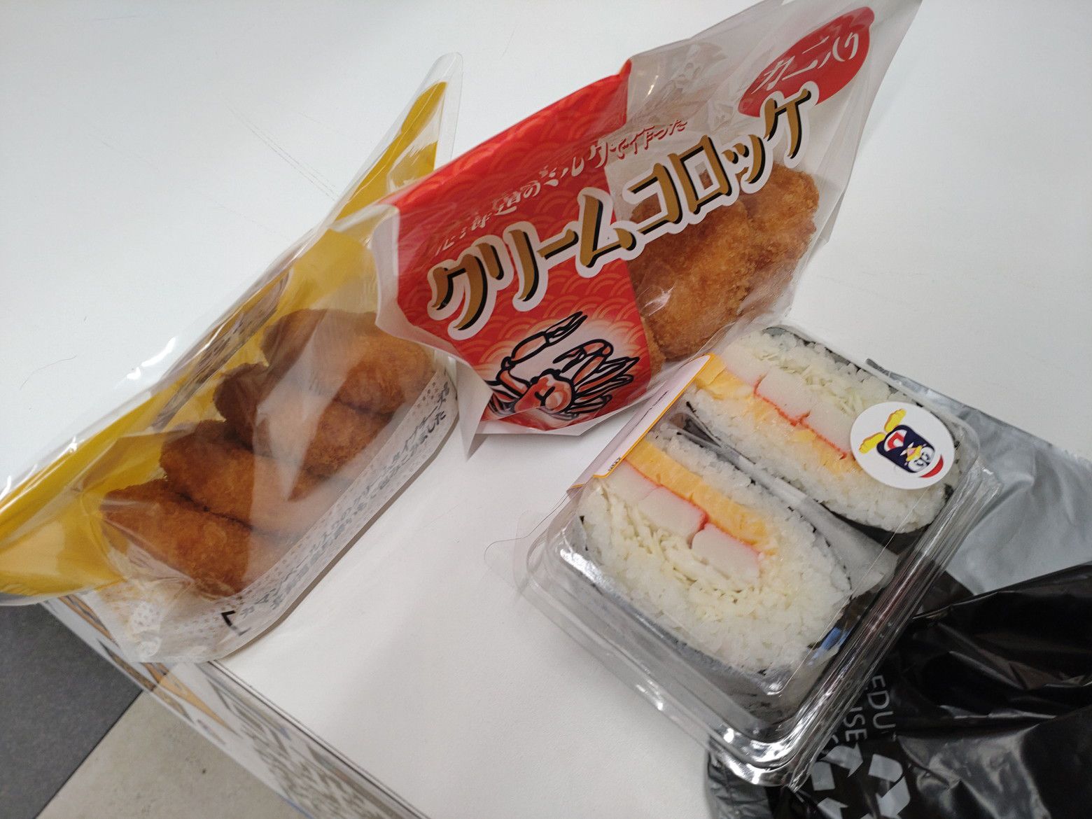 暫く見学した後は、食料品売り間へ向かいます。 色々と巡っては見たのですが、今回は同じく頑張っているドンキで買う事にしました。 日本では、激安なんでしょうね。 北海道コロッケがあったので、今回はこれにしました。 隣にあった、”おにぎらず”も購入。 これで、お会計。 北海道の食品が好きなんです。 ”おにぎらず”は、包装を解くとバラケました。