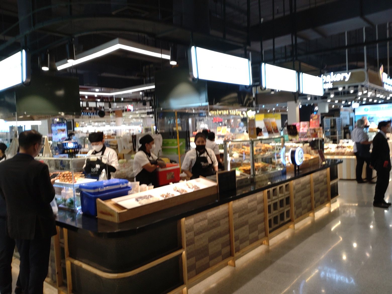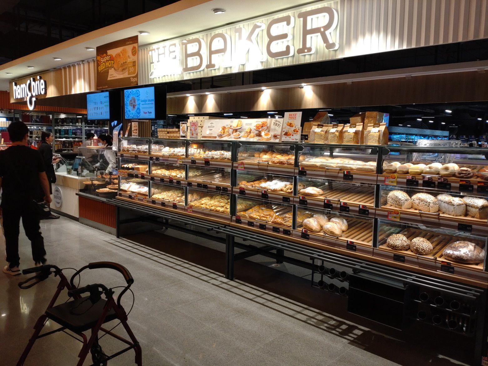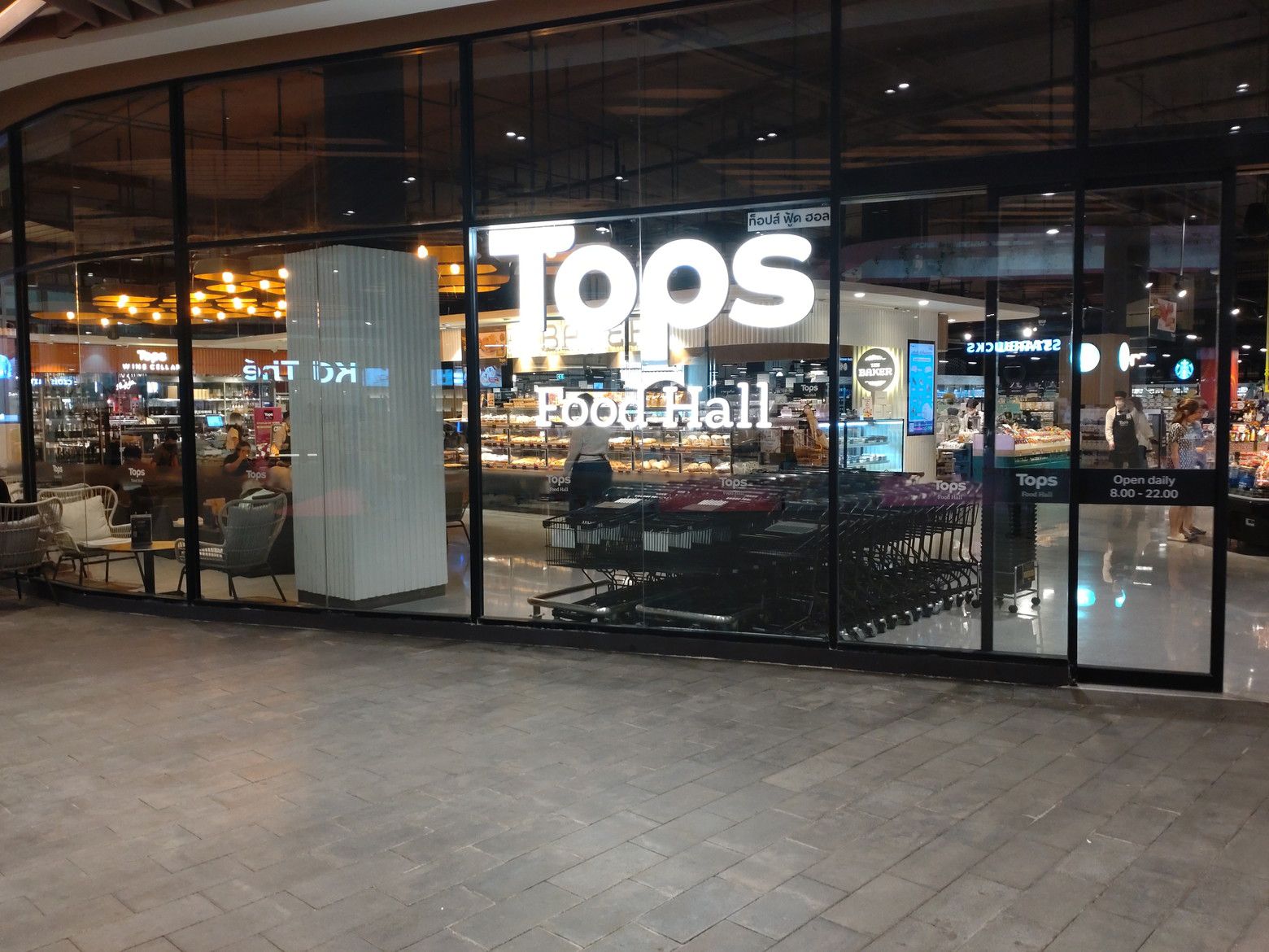 そんな事も含めて楽しい散策が出来ました。 そして、トップスで買い物です。 入って直ぐには、高級そうなパンが並び、その隣にはドリンクの店が在りました。 そして、その横には椅子とテーブル。