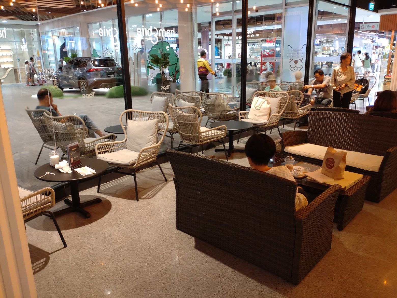 セントラル ウェストビィル散策は続きました。。。 何と言っても、通路が広く混んでおらず、贅沢を言わせて頂くと、景色が綺麗。 それを満たして頂くと、元気が出てきます。 こんな休憩場所までありました。 そして、レストランが並ぶフロアーに入りました。 此処での感想は。。。日本食レストランが多かったです。 「シブイ」という名のしゃぶしゃぶレストランです。