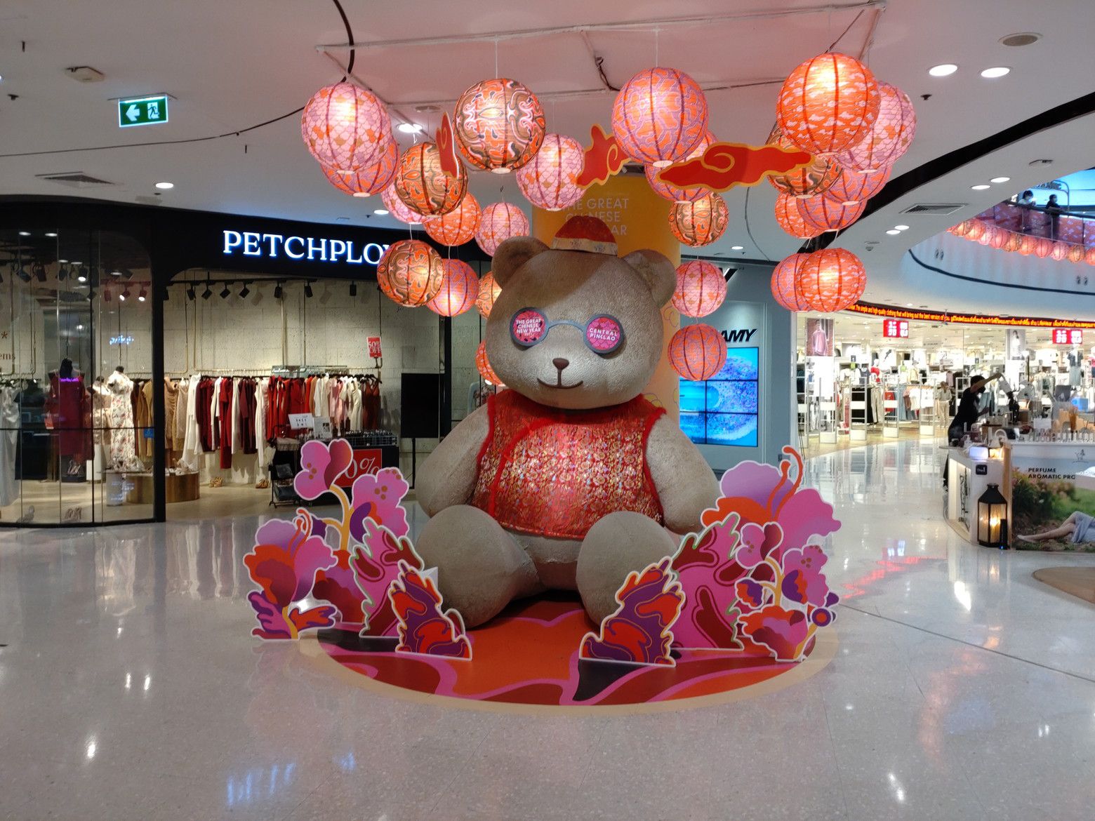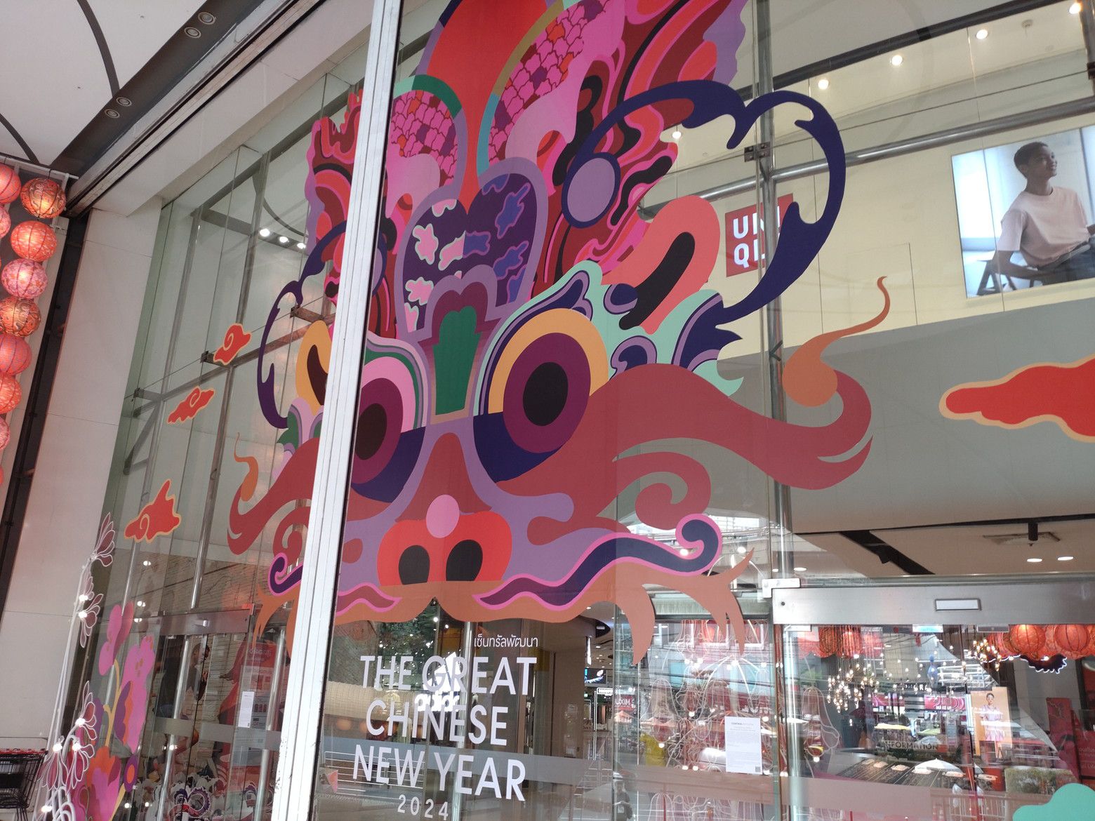 民主記念塔も通って行き、更にはチャオプラヤー川をも渡って行くので、景色を楽しみながらの小さな旅になります。 この時は、もう。。。入り口から中国正月の飾り付けです。 華僑の方々も多いし、これからタイに旅行で来られる方々の為かもしれませんね。 「君までもか!」そんな感じでした。 脚も随分と良くなったのですが、軽い痺れは撮れませんね。