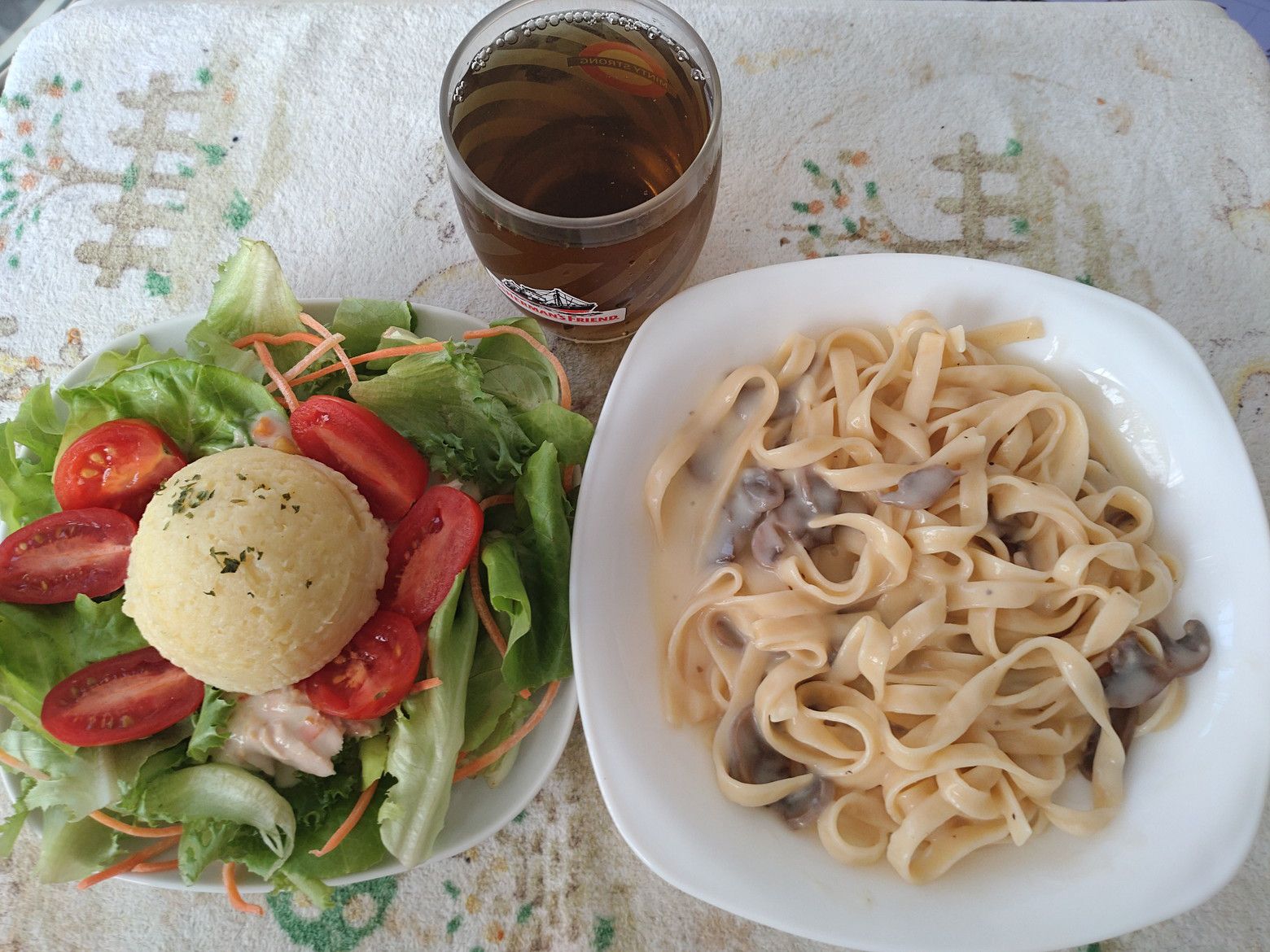他では見た事が無い気がします。 他には、サラダも購入しました。 嬉しい事に、緑以外の野菜が入っているのもありました。 これで会計です。 実は、パスタは買って来ませんでした。 別途に、好みの物を用意しました。 ソースは、クリーミーで非常に美味しいのです。 ネギをどっさり乗せて、美味しく頂きました!!