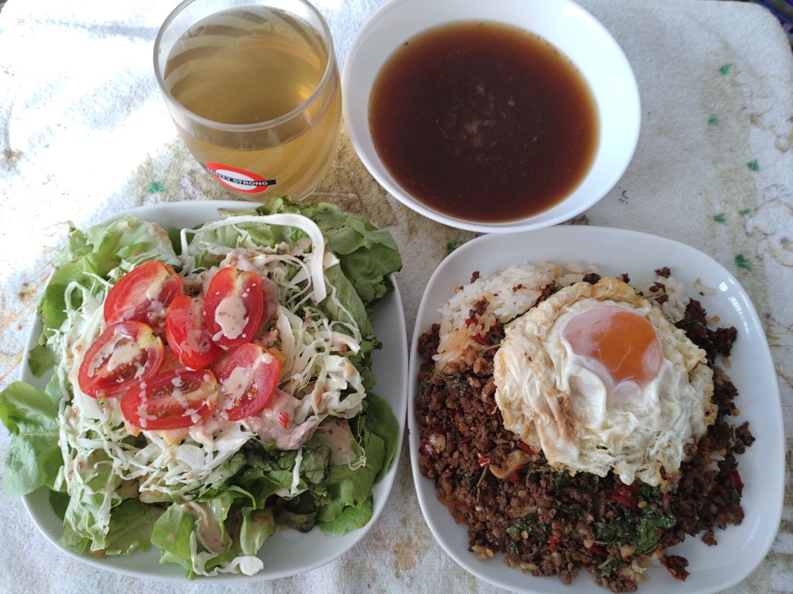 人気店なんですね。 ちょっと高めの170バーツ。 スープ付きです。 普段ならば、鶏肉を選択するのですが、和牛がメニューにあったことが分かり、注文してみました。 嬉しいかな、肉がたっぷり。
