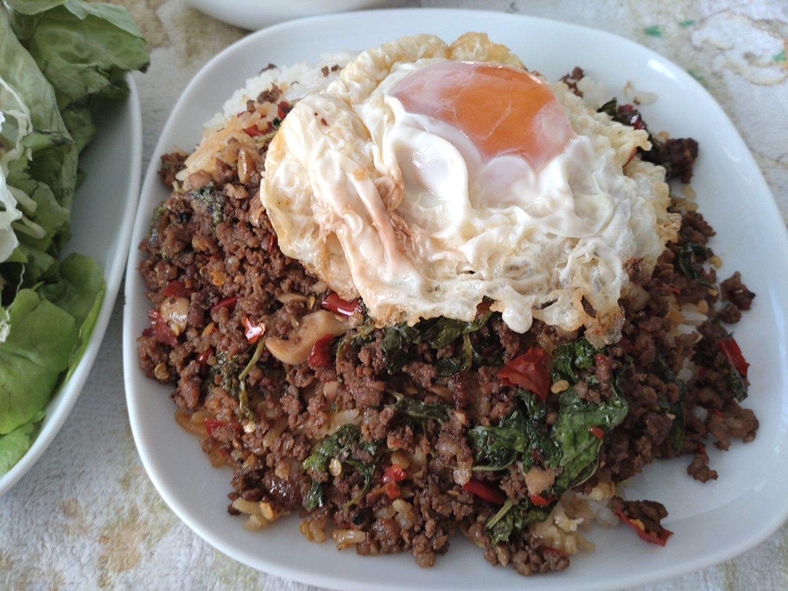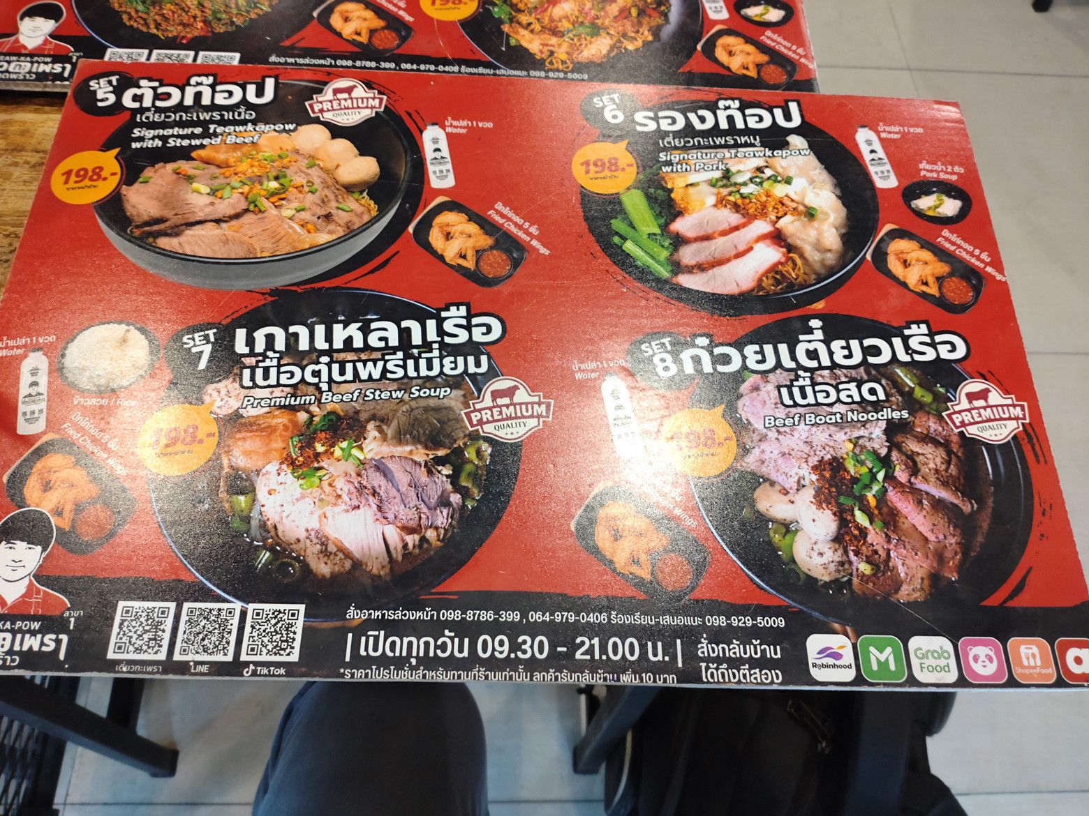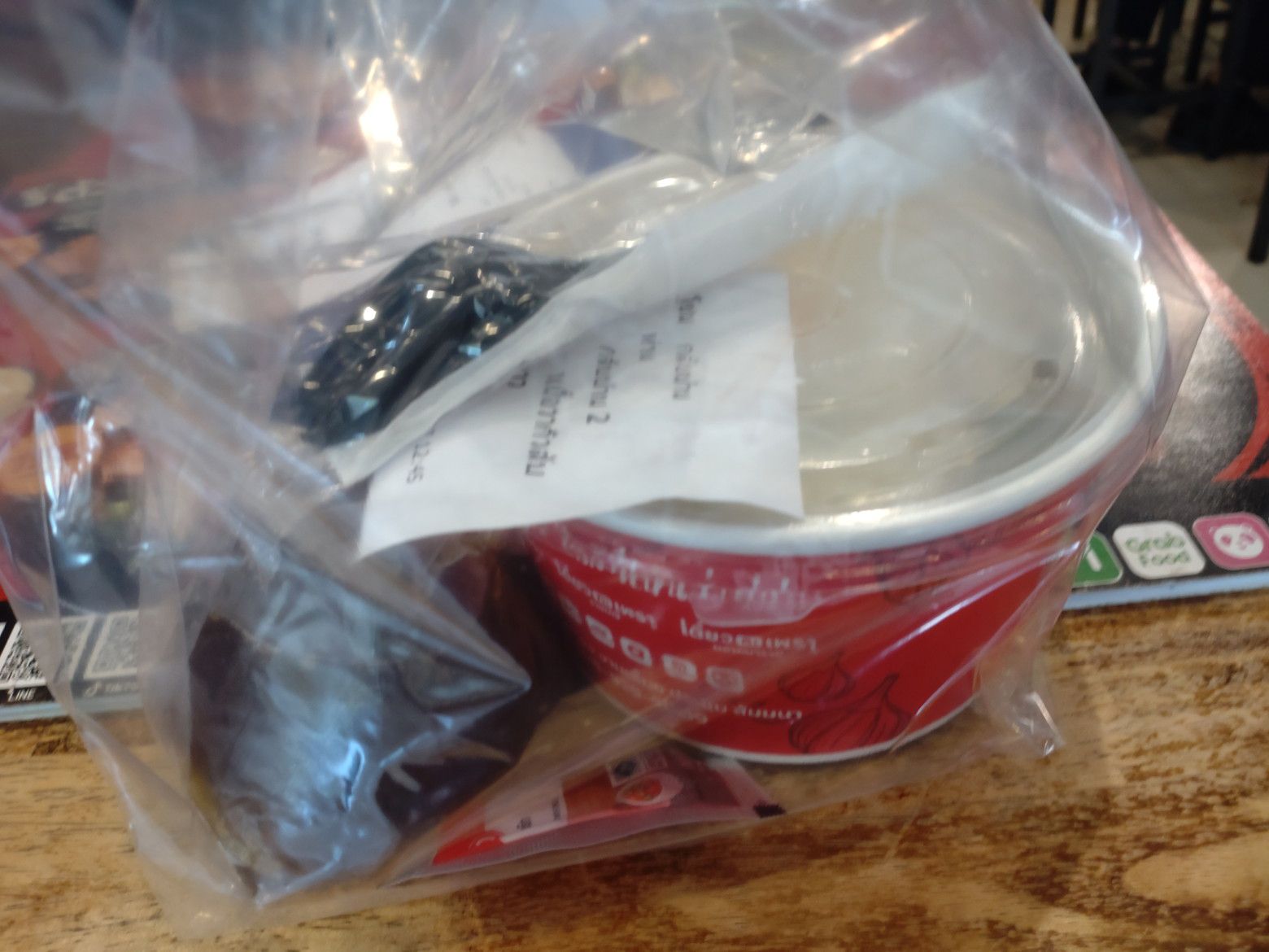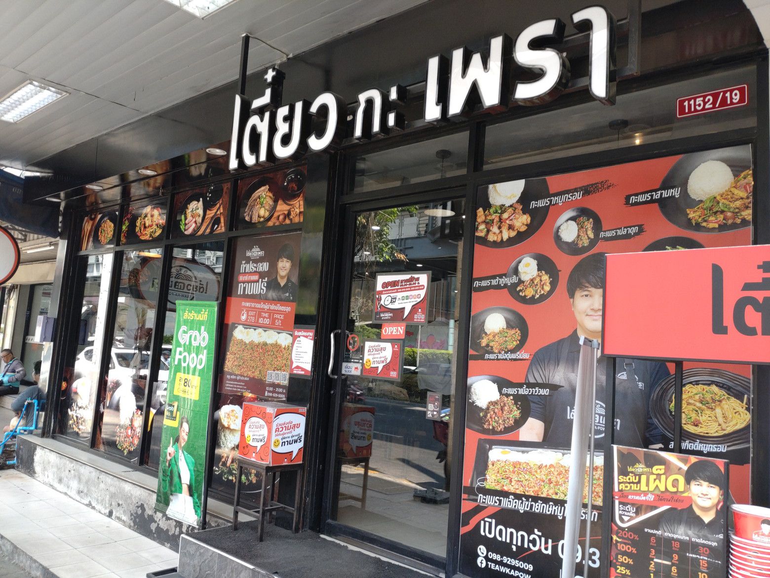 記入は出来ないので、店員さんを呼んで、口頭で牛肉のガパオと目玉焼きを注文しました。 この時は、ほぼ満席状態。 更に、グラブなどの配達員の出入りも、頻繁な状態でした。