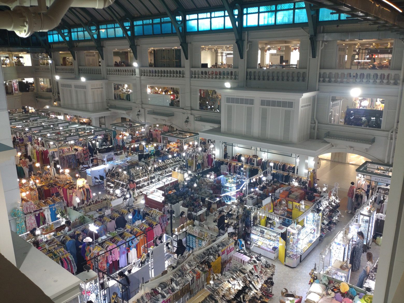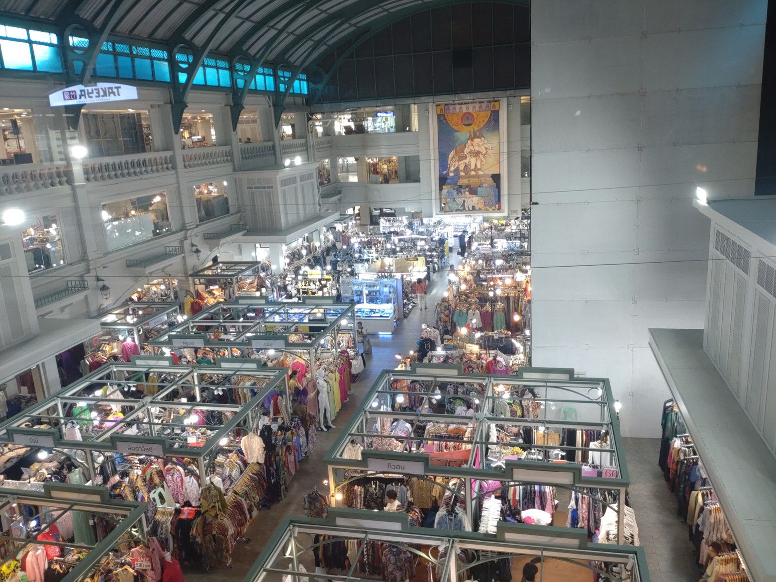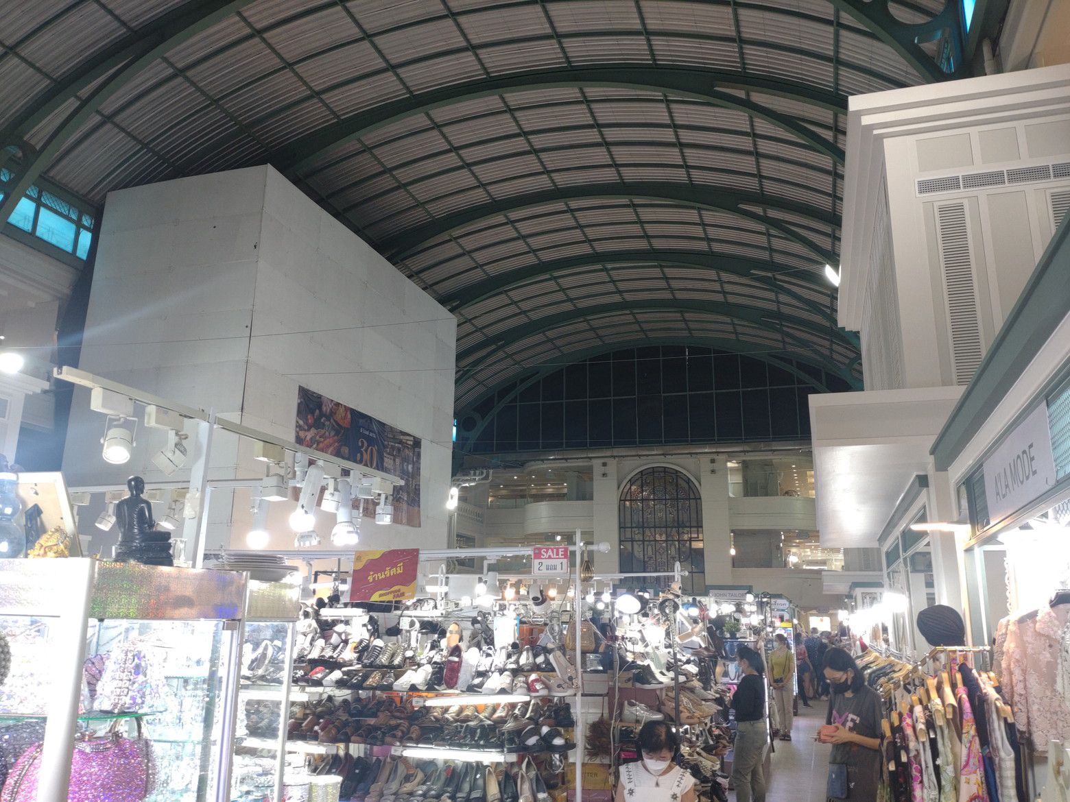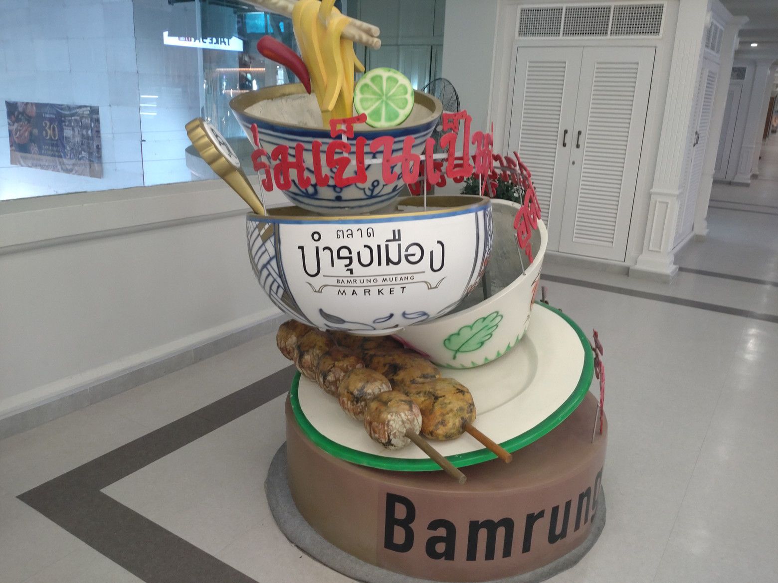 先日は。。。 久しぶりに、オールド サイアム ショッピングプラザへ。 個人的には、館内の雰囲気が好きな場所です。 こんな、大きな体育館のような作りですが、エアコンが効いていて快適なウォーキングはできますが、スーパーマーッケットが無いので、新鮮な野菜などは購入できません。 中心部に、広いフロアーがあり、その周囲は3階建てになっていて店舗が入居しています。 通路は広くて歩き易いのですが、休憩用のベンチは少ないのです。 ウォーキングは、簡単に言えばグルグル周るだけ。 そして、来るたびに感じるのは、タイ独特の衣料品が売っているなぁと。。。 価格帯は不明ですが。。。 そして、所々にあるアート。