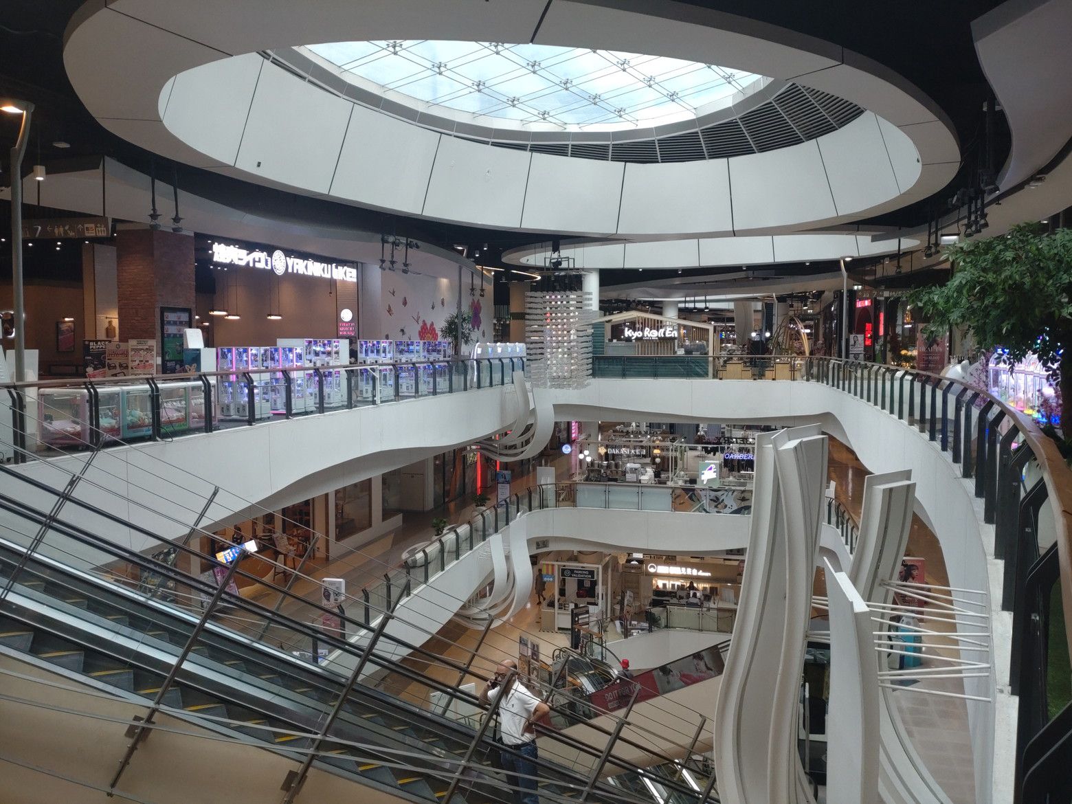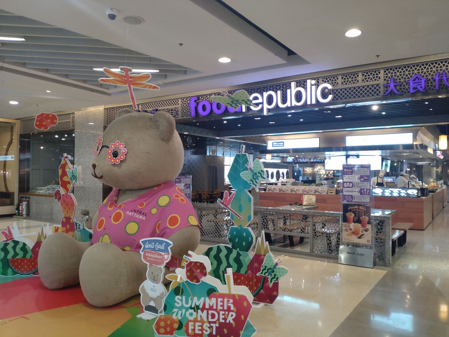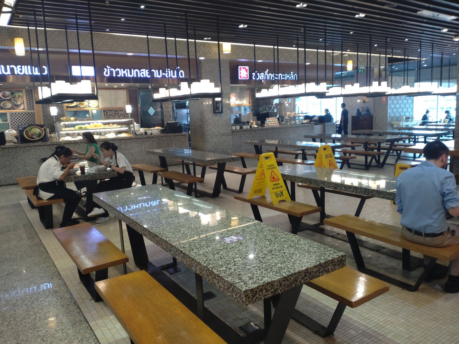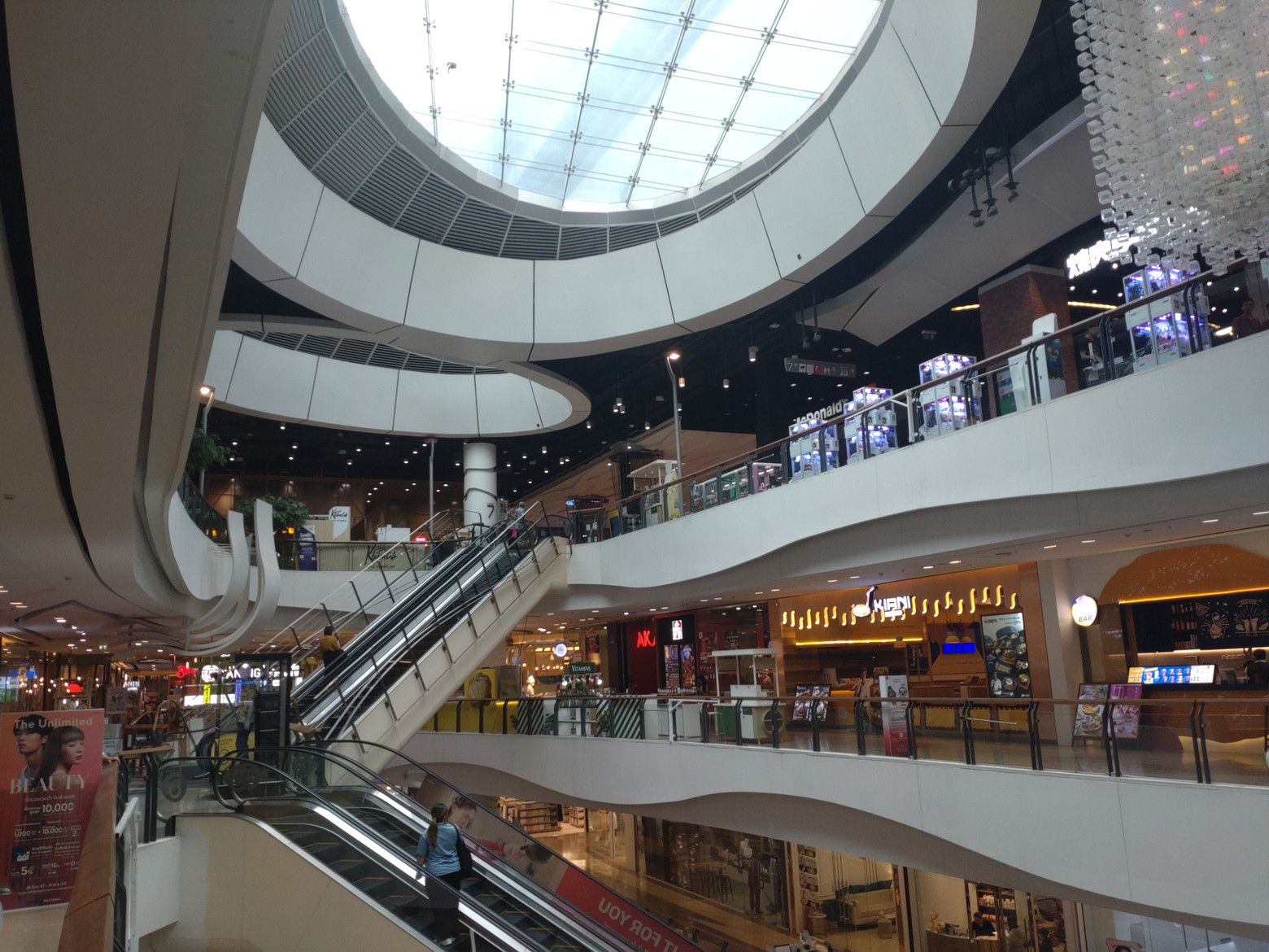 改札を出てすぐ近くに地下の入り口があります。 此処は、店内に太陽の光が入るので明るいのです。 この雰囲気が個性的。 休憩用のベンチも各所に配置されています。 1時間ほどウォーキングをしたのですが、今回は早速フードコートの話をします。 毎回楽しむのは景色なのです。 これが、ラチャダー通り方面。