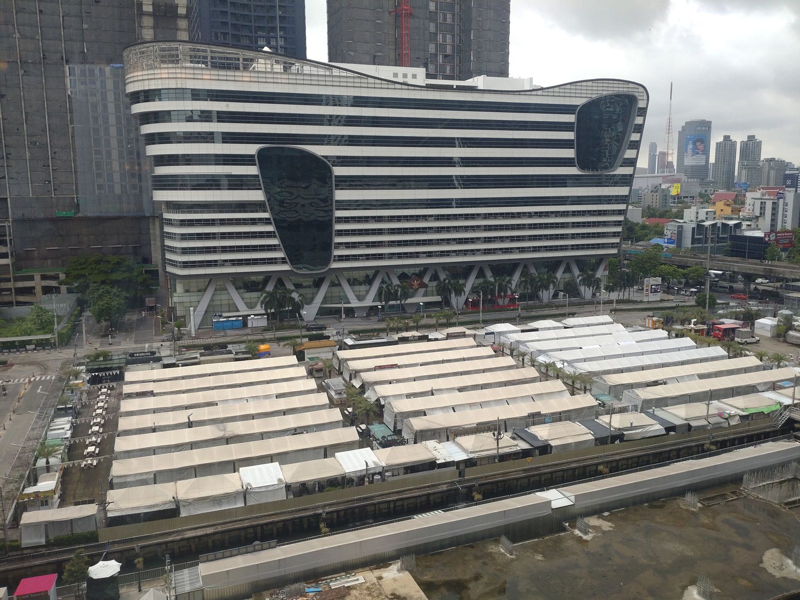 ラチャダー通りは、他にも何カ所かにナイトマーケットがありますね。 そして、その奥には高層ビルがあると共に、更に建設が進んでいるんですね。
