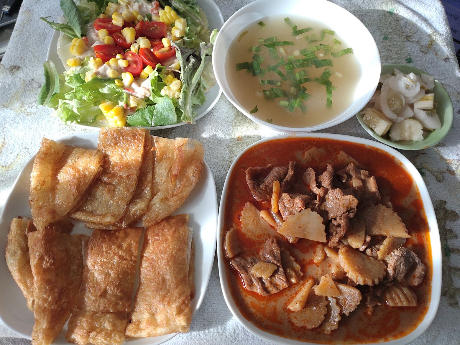 マッサマンカレーとロティを注文しました。 100バーツ。 袋から出すと、スープもあり、嬉しかったです。 マッサマンカレーの具は豚肉でした。 カレーの味は、最近では最も美味しい味でした。