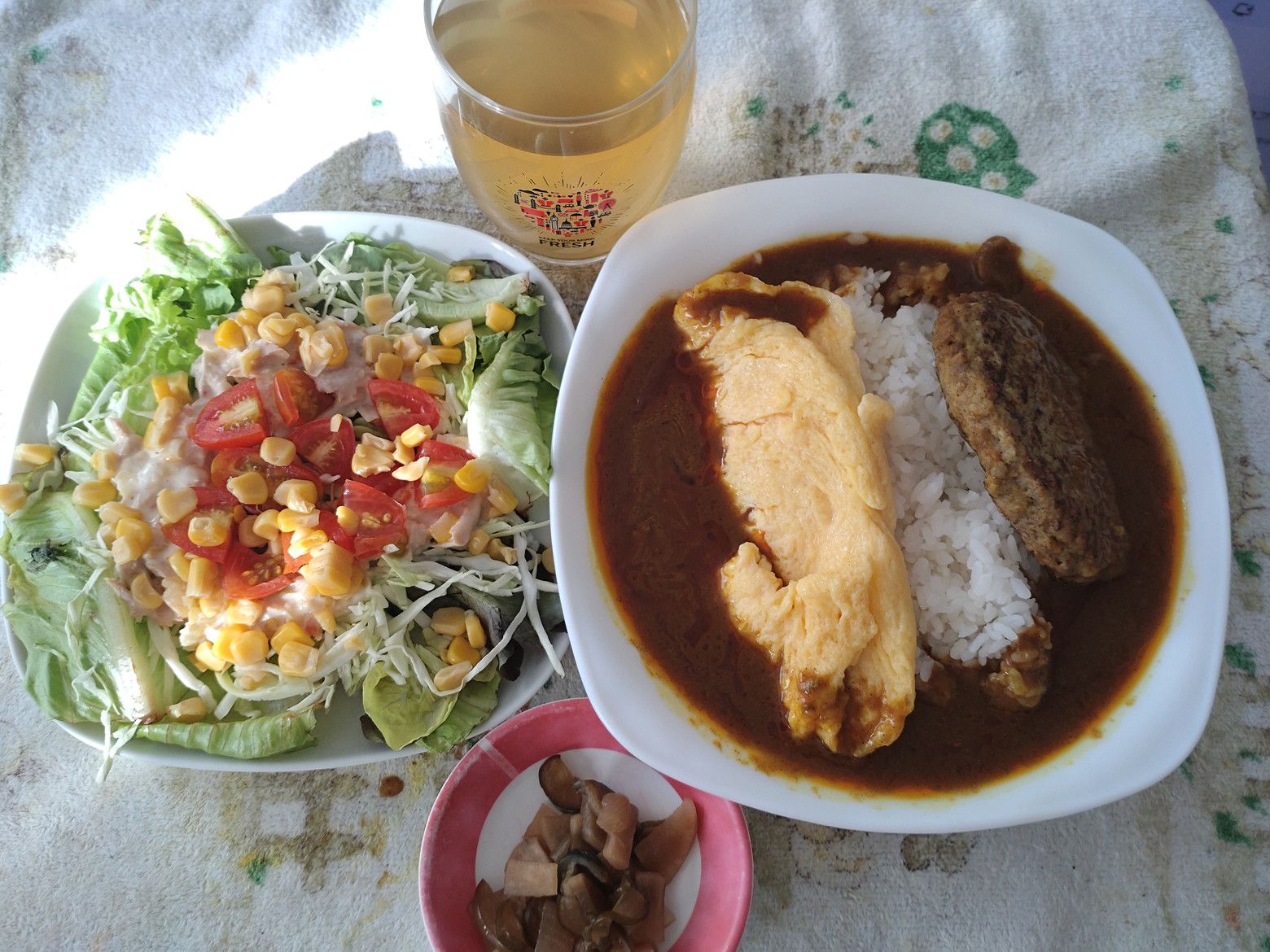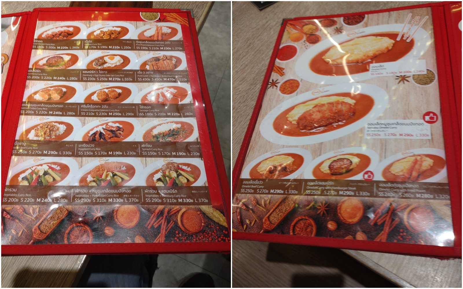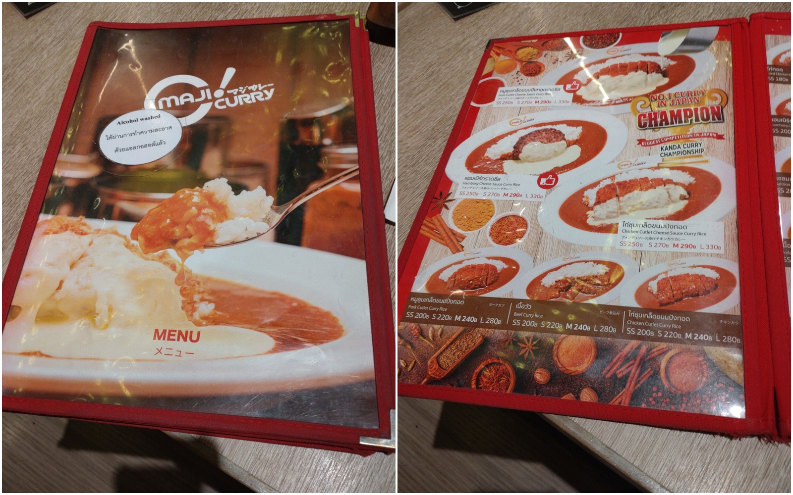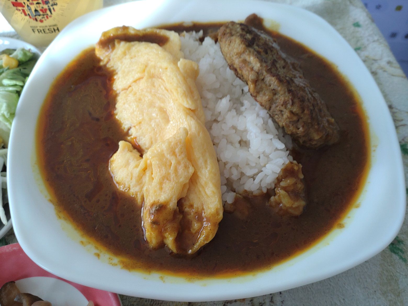 カレー好きとしては、是非に食べてみたいと思ってやって来たのです。 まだ、オープン直後でしたので、念の為に店員さんに声を掛けると、大丈夫の返事が来ました。 座らせて頂き、メニューを受け取りました。 オムレツと、ハンバーグが入ったカレーを注文です。