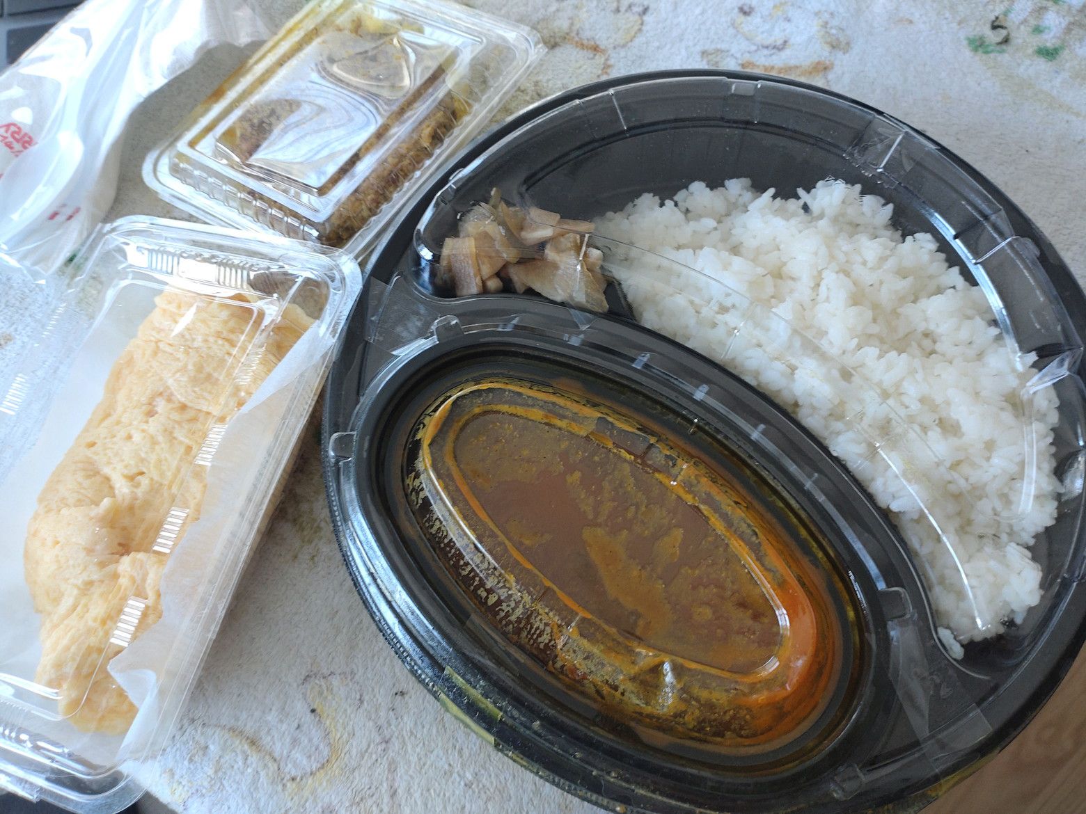 辛さも選択できましたが、スタンダード。 ジーッと待つ事、15分ほど。 受け取り完了です。 袋の中身は、こんな感じ。 盛り付け完了です!