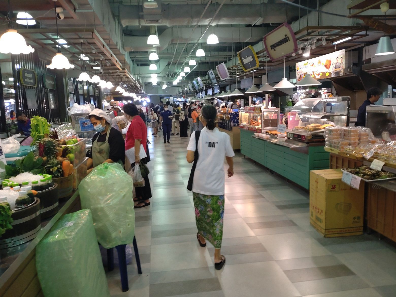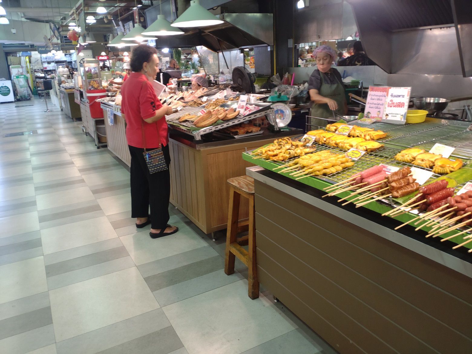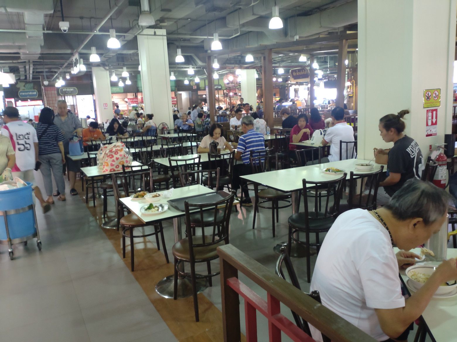 しかし、今回歩いてみたところでは、少しづつ増えてきた感じがしました。 此処へ来たら、セリマーケットが楽しみです。 このフロアーは、他と違って、いつも混んでます。 この時間は、午前11時前。 此処は、色々なタイ料理があります。 いつもなら、カレー屋さんへ行くのですが、今回は別の料理を買いたいと思っています。 個人的には、どのような味がするのかは、分からないので想像に頼ります。 色々と巡りまわって、此処に決めました。