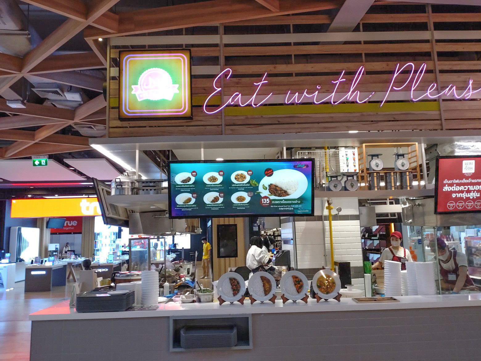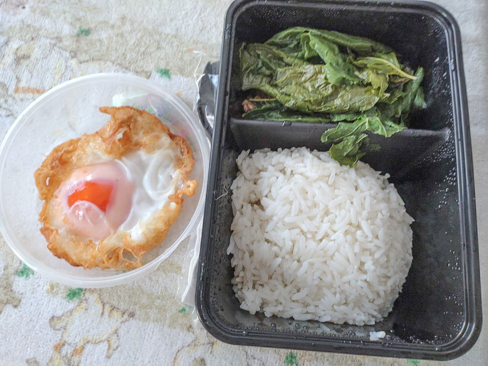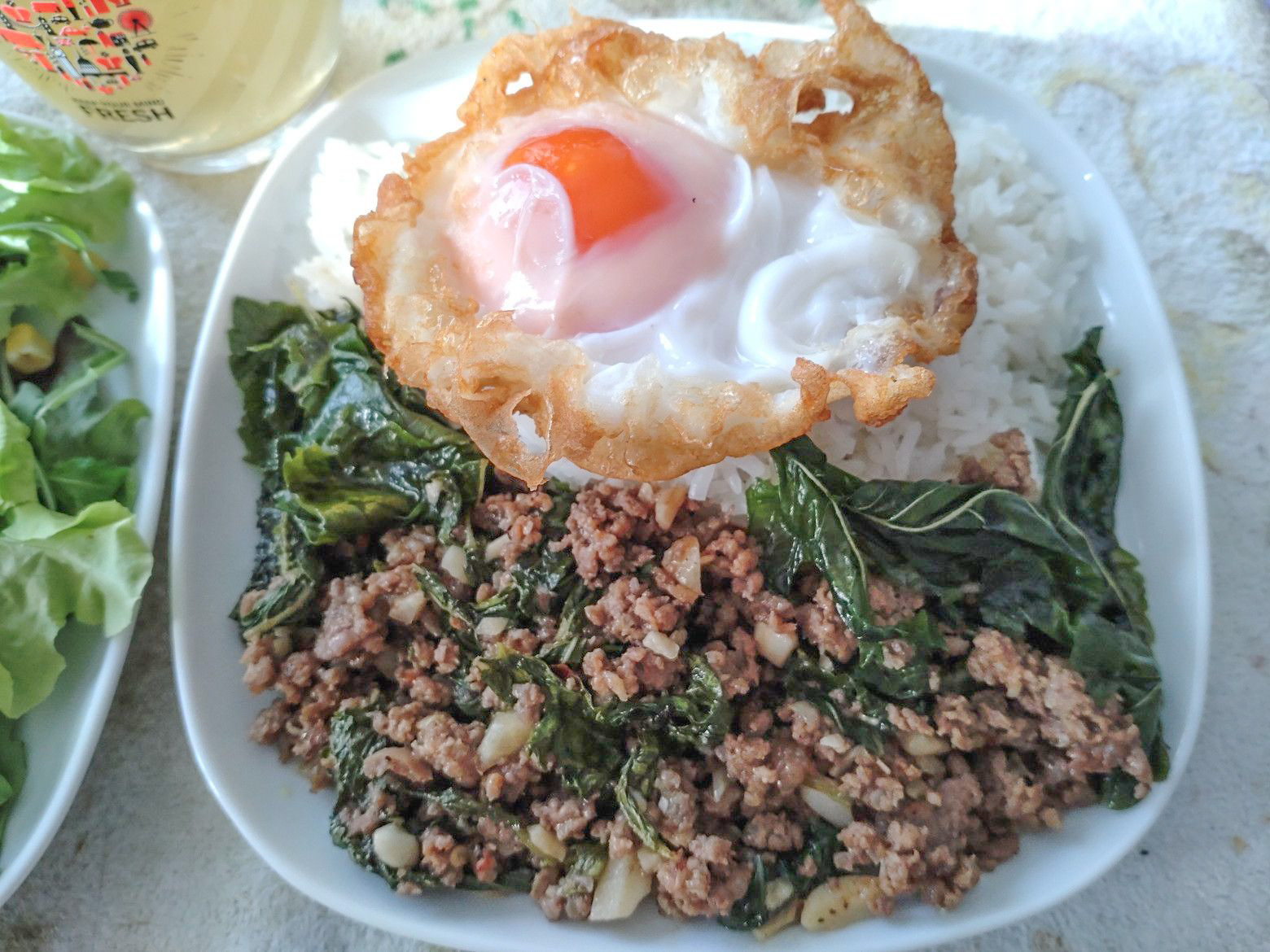2度目です。 牛肉ガパオライスを注文です。 暫く待ったのですが、座っているところから眺める周囲の光景に何故かホットします。 受け取り完了です。 中身は、こんな具合です。 盛り付け完了。 これが美味しい!!のです。