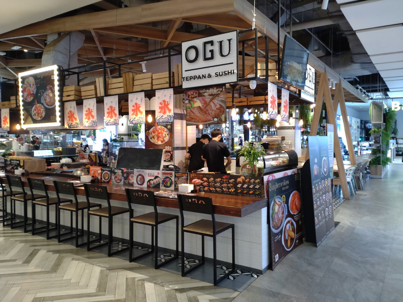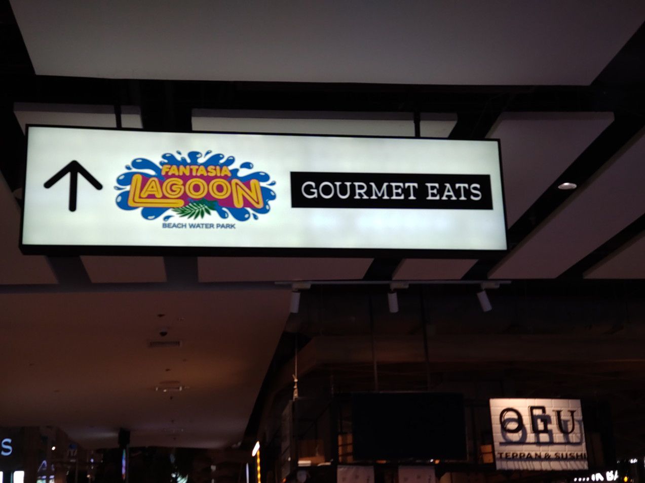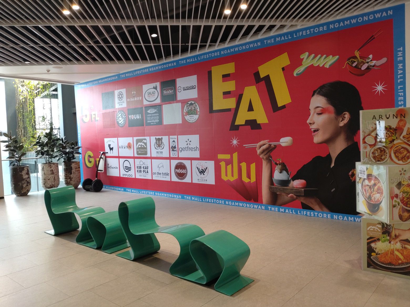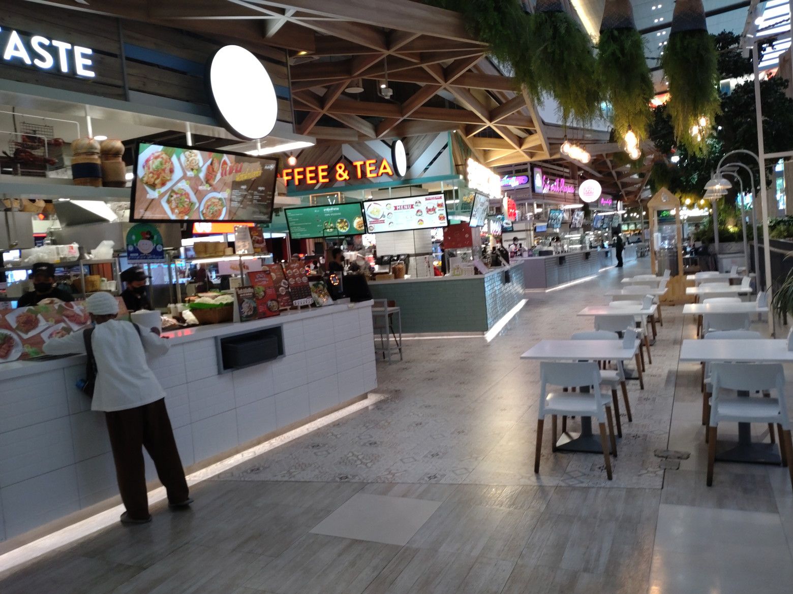 こんな休憩所もあるのですが、既に数人の女性が座っていました。 このような景色を眺めながら歩いていると、気分も最高です。 此処までは、レストランが入るスペースなのですが。。。 先に進めば、フードコートのフロアーへ繋がります。 到着です。