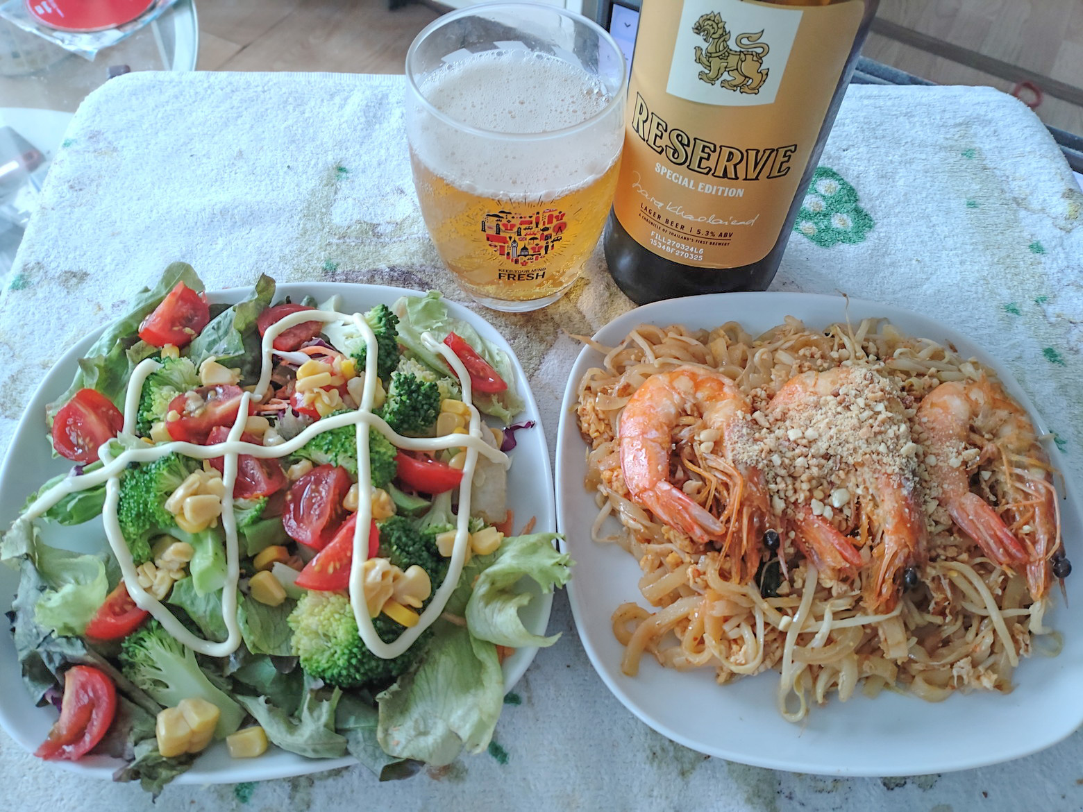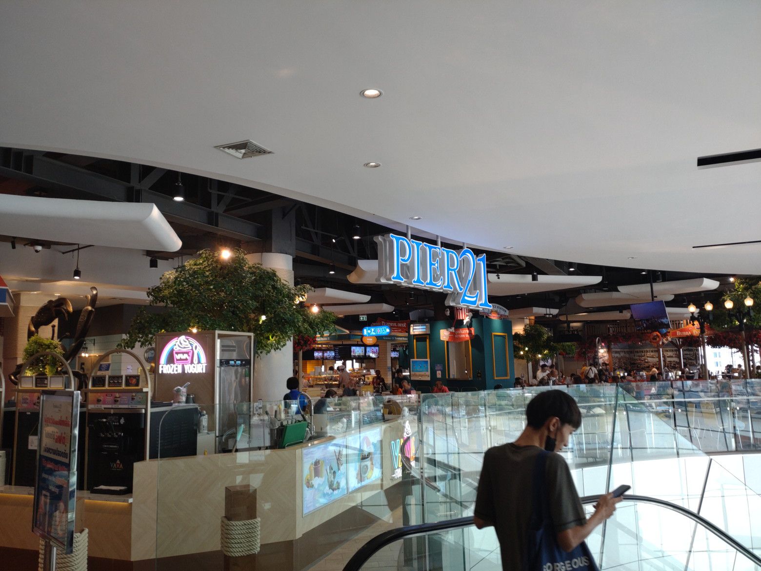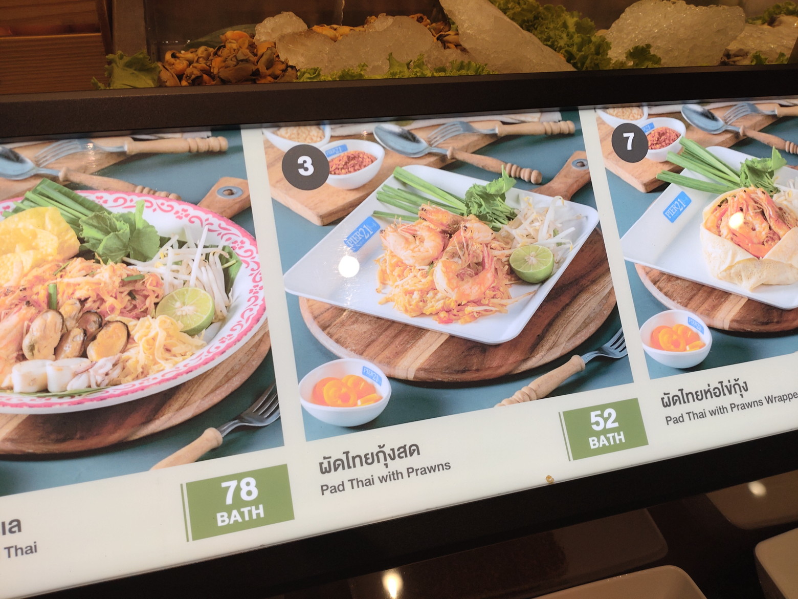 この時も無料でした。 ターミナル21の最寄り駅で降りました。 此処で、楽しくウォーキングをさせて頂きます。 今回は、2階のイタリアをイメージしたフロアーを散策です。 階毎にイメージの国が違います。 コロナ時期を過ぎた今も、イマイチ。。。お客さんの姿は少ないです。 個人的には、やはり交通の便が少し悪いような気がします。 色々と、見所が多いショッピングモールなのですが。。。 実は、ウォーキングの前に、食品売り場のフロアーへ行ったのですが、非常に好きだった、京都ラーメンの店が閉じていました。 他のレストランも数店が閉鎖していました。 頑張って欲しいですね。 さて!此処の好きな景色としては、展望デッキです。 この日も、楽しませて頂きました。 その後は、日本フロアーを経由して、フードコートへ向かいます。 此処だけは、人気があるのです。 お客さんで賑わっています。 色々と巡りましたが、大好きなパッタイ屋さんに決めました。 海老パッタイを注文です。 これを食べる日は、外出して汗をかき、シャワーを浴びてからだったので、ビール1本を飲みます! ビールの摘まみとして最高でした。