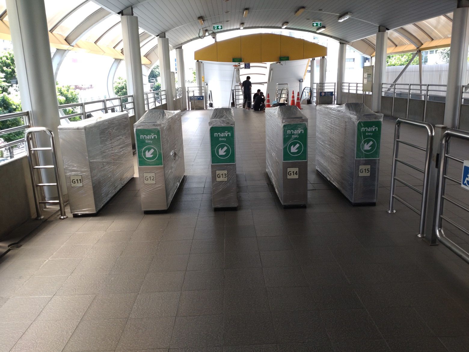 マハナコーンを出てからは。。。 徒歩でBRTの駅へ向かいました。 今年に入って、既に2回利用させて頂いているのですが、何故か無料なのです。 判りますでしょうか?料金を支払う機材がビニールで巻かれています。