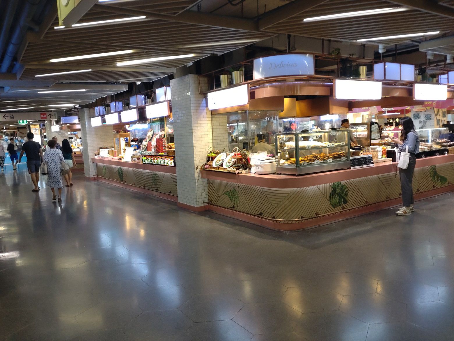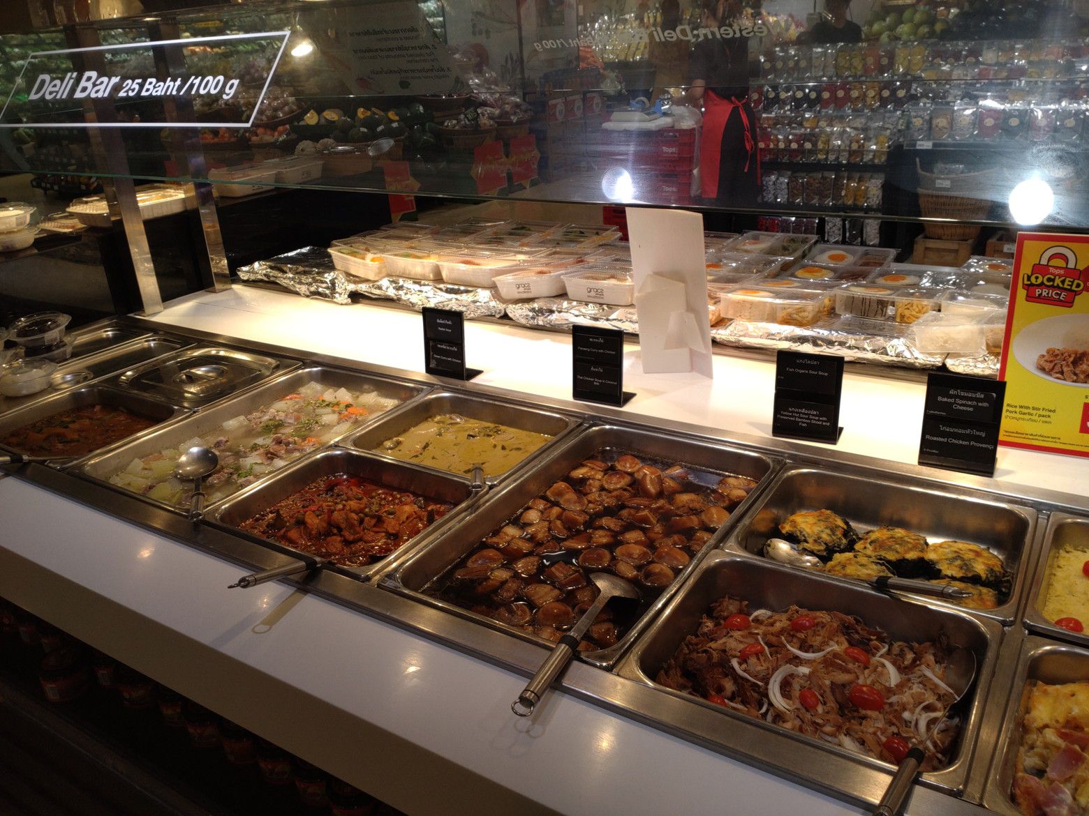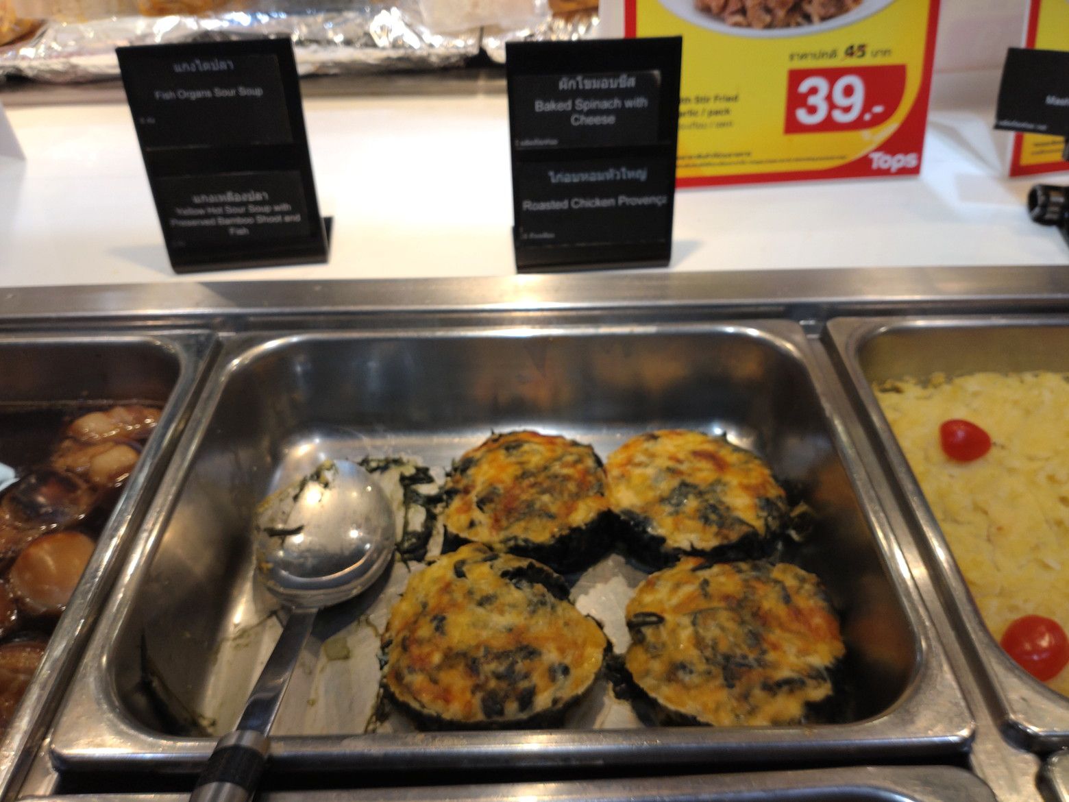 このバス停から、22番か1番のバスに乗れば。。。 セントラルラマ3にやって来られるのです。 この時は、随分と歩数を稼いだので、汗だらだら状態でした。 いやぁしかし、何とかウォーキングを頑張りましょう。 途中で、こんな休憩場所もあります。 だいぶ疲れたので下に降ります。 催し物はチラリとだけ鑑賞。 トップスでサラダを買いますが、パンパンに空気が入ってますので鞄の半分近くを占めてしまいます、 そして、惣菜ですが! このマカロニ料理と。。。ほうれん草が詰まった料理を購入です。