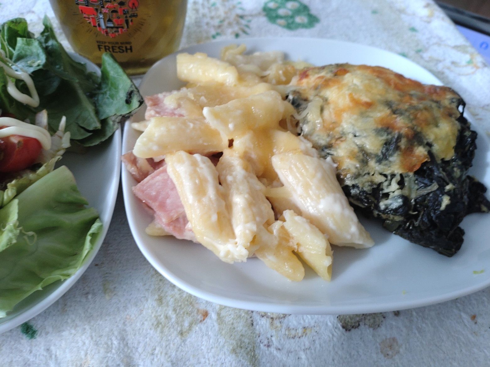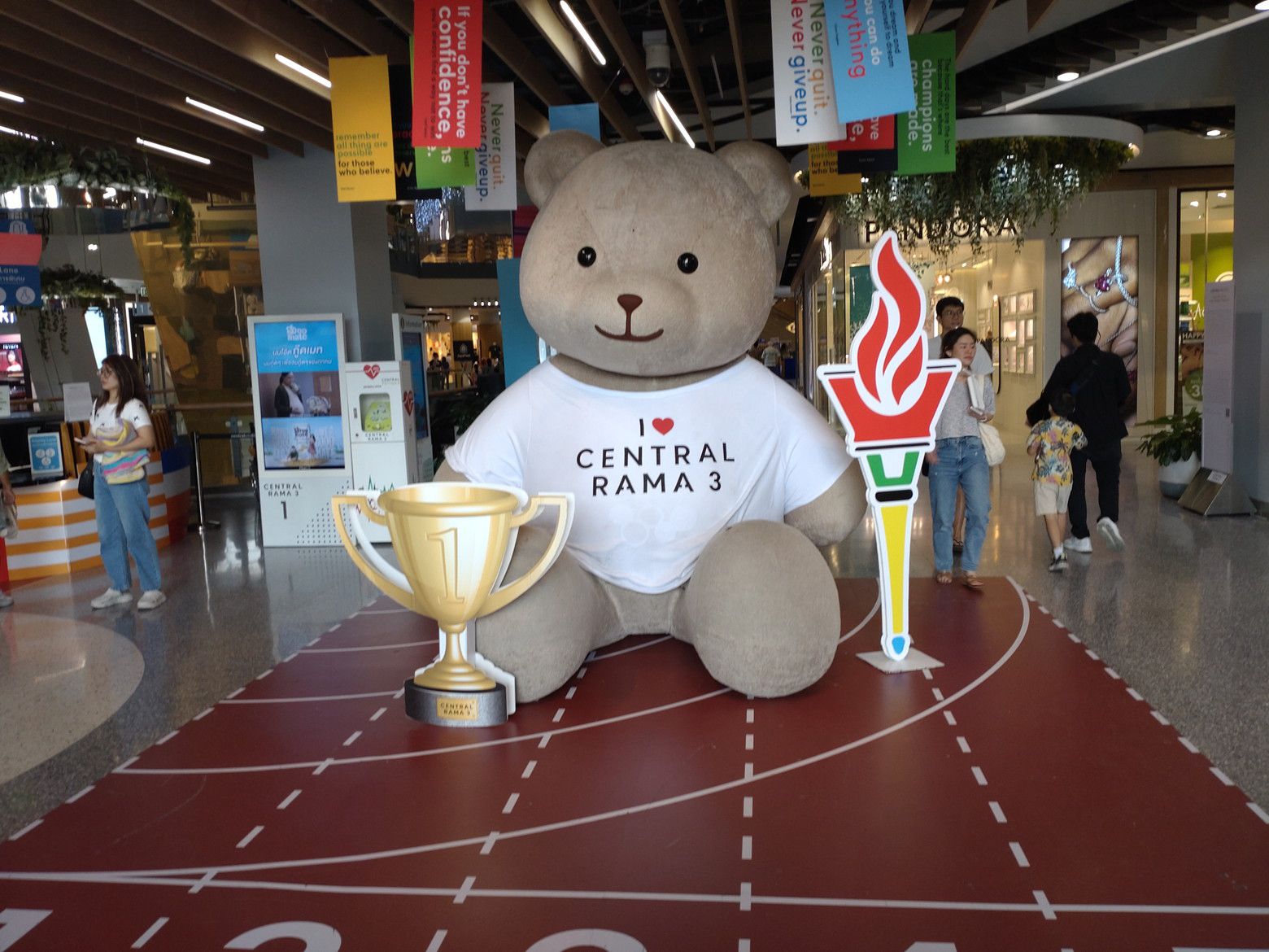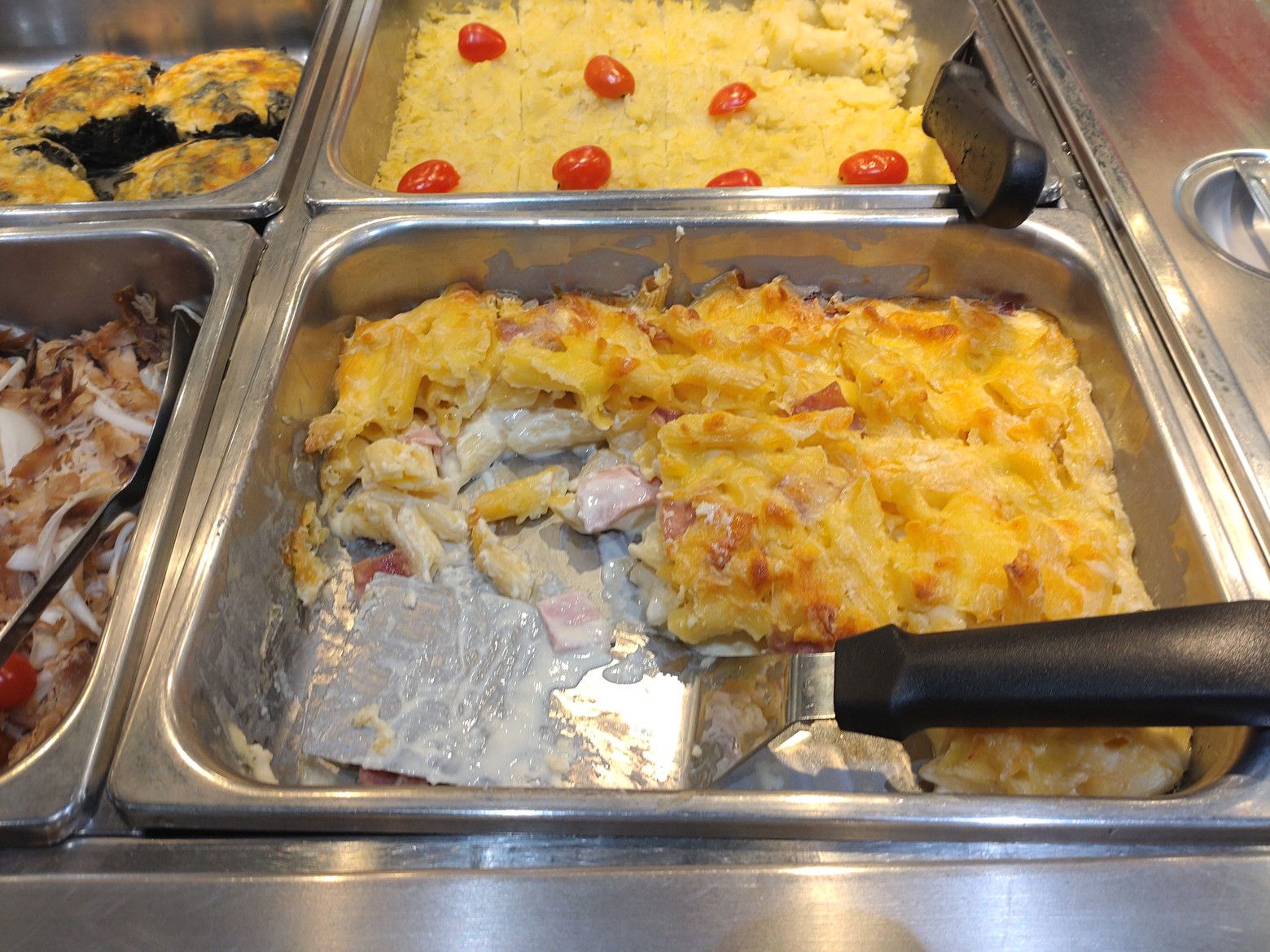 このバス停から、22番か1番のバスに乗れば。。。 セントラルラマ3にやって来られるのです。 この時は、随分と歩数を稼いだので、汗だらだら状態でした。 いやぁしかし、何とかウォーキングを頑張りましょう。 途中で、こんな休憩場所もあります。 だいぶ疲れたので下に降ります。 催し物はチラリとだけ鑑賞。 トップスでサラダを買いますが、パンパンに空気が入ってますので鞄の半分近くを占めてしまいます、 そして、惣菜ですが! このマカロニ料理と。。。ほうれん草が詰まった料理を購入です。