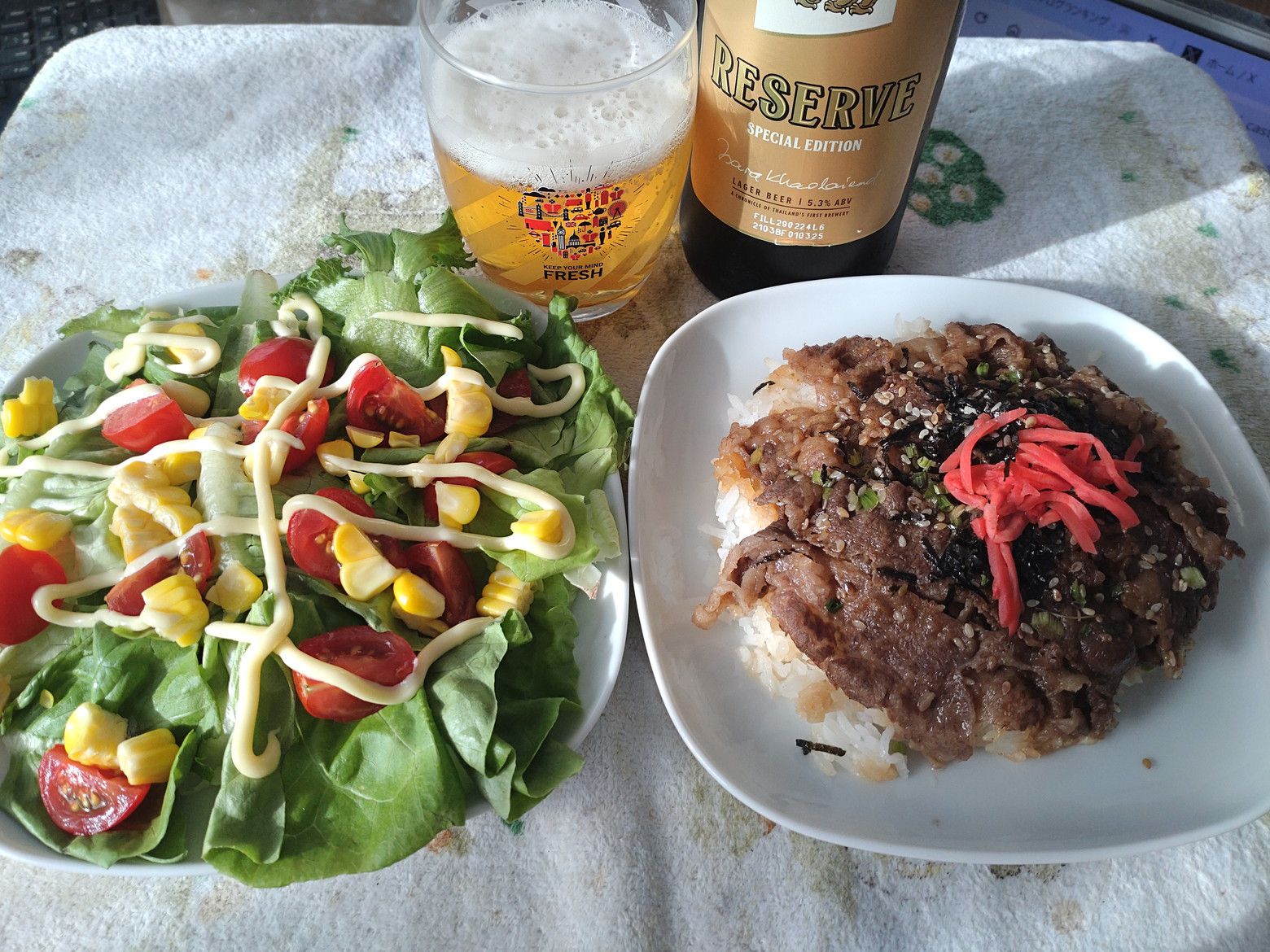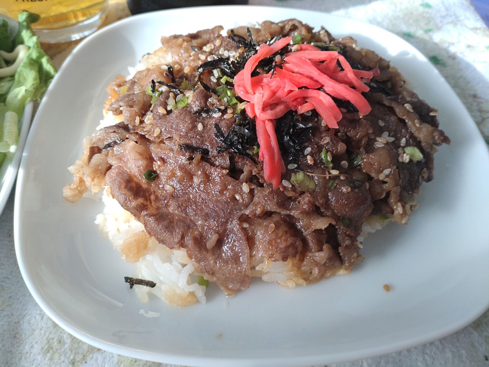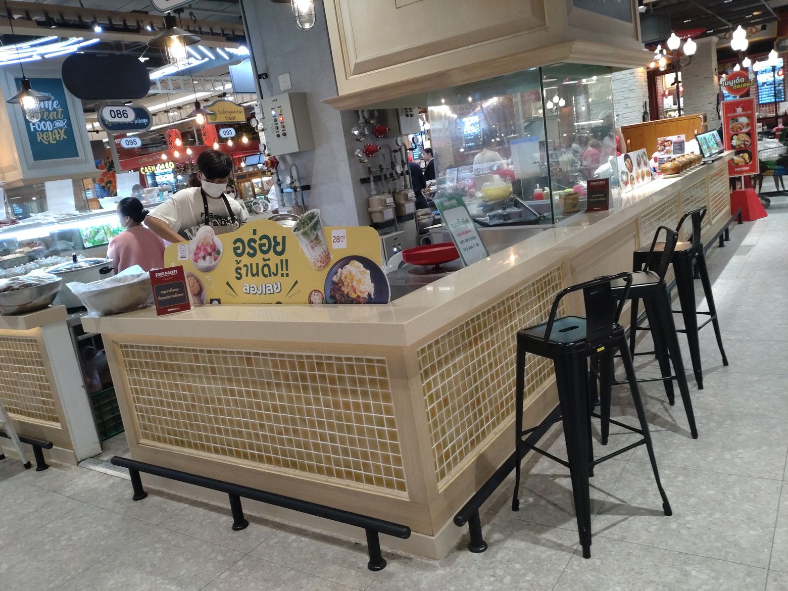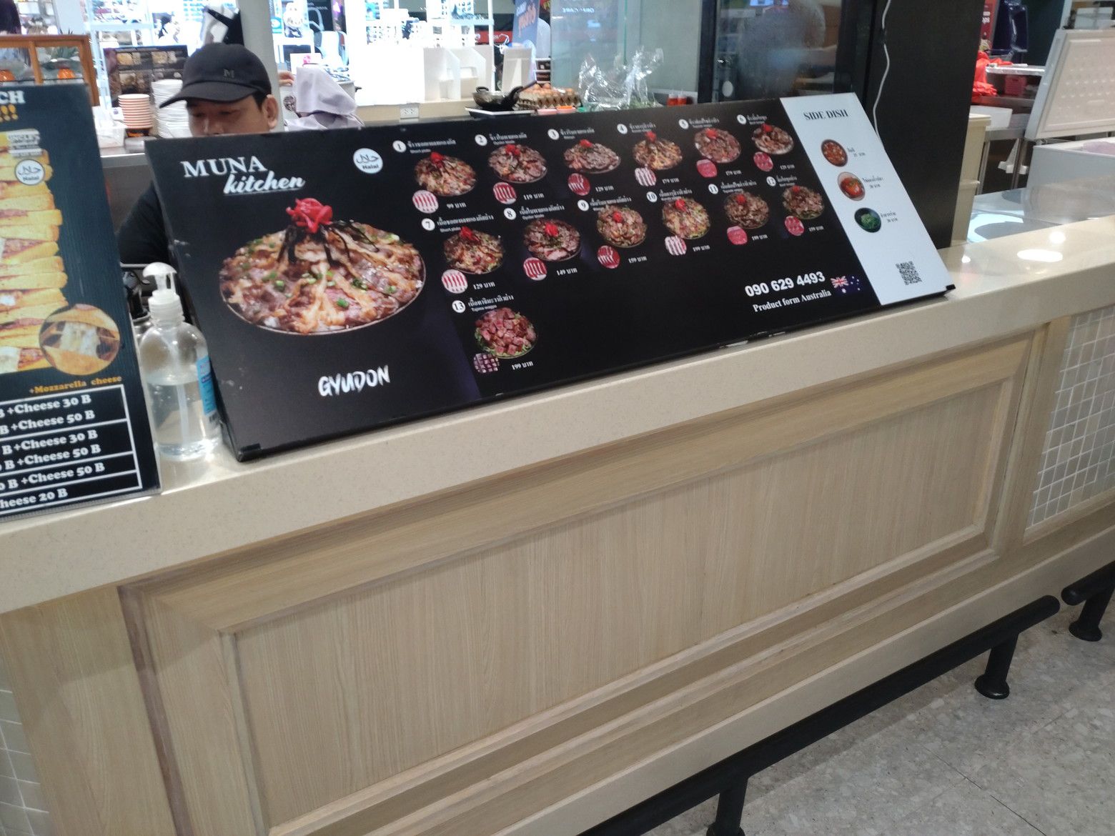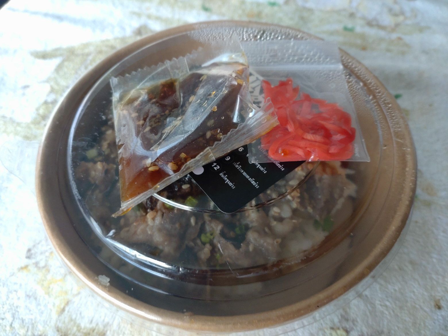 選択肢は非常に多いんです。 こんな看板も参考にして捜し歩きます。 そして、この店にしました。 牛丼を注文しました。 椅子が多いので、椅子に座って待ちました。 暫くして、受け取り完了です。 価格は、220バーツ。 盛り付け完了です。 大満足の味でした。