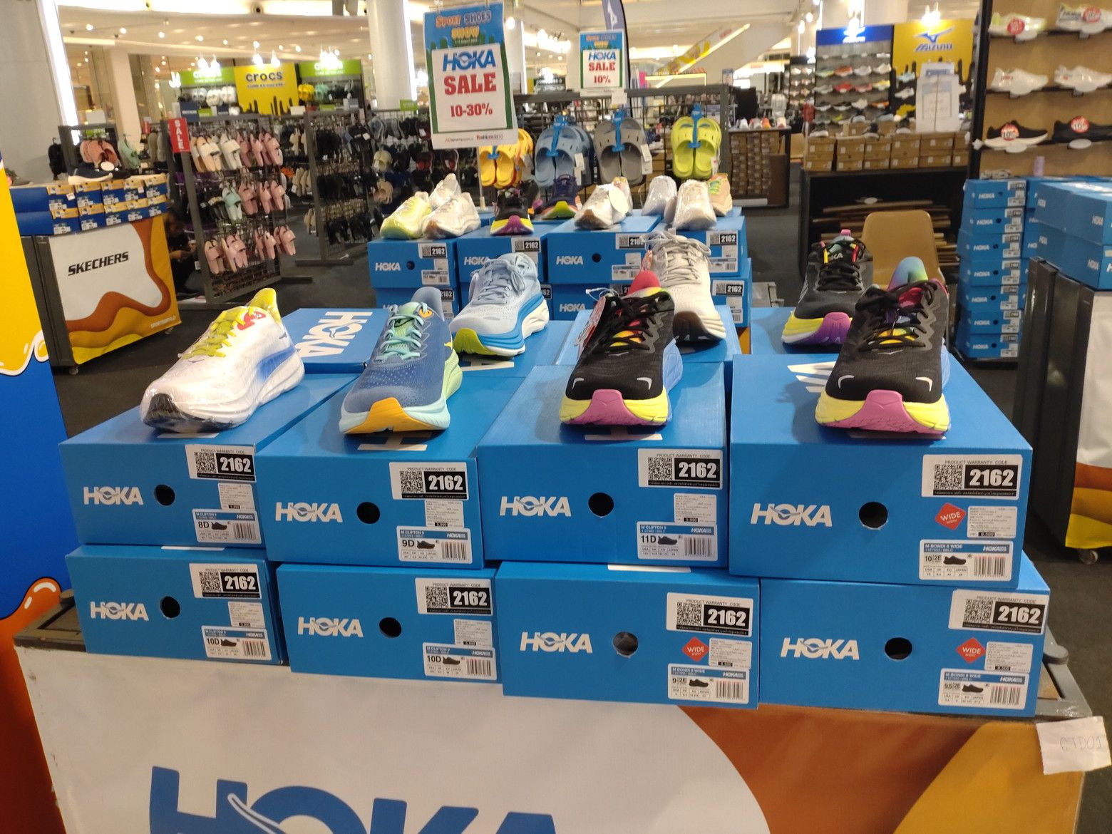 タイでは、ソニーのスマホは人気無しなんでしょうか。。。残念! その後も、暫く歩きました。 此処には、数店のスーパーマーケットが在るので便利でもあります。 此処は、電気店が集まる場所です。 スニーカーのセールも行われてました。 「HOKA」??知らないですね。自身が若い頃にバスケを頑張っていましたが、このメーカーは知りません。 これは知っています。
