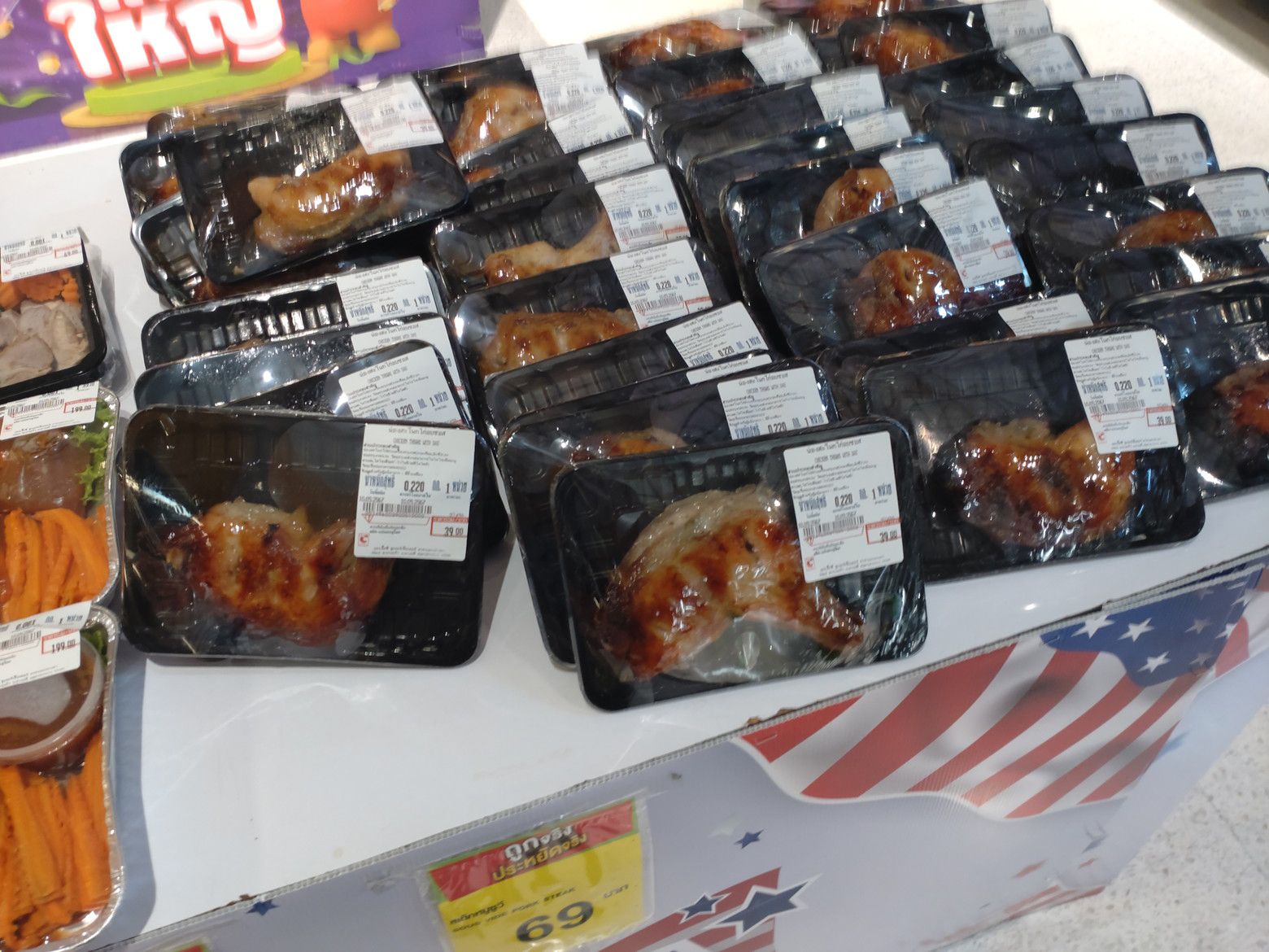 それで会計をしようと思ったのですが! 総菜コーナーを見ると、以前より種類が多くなっている事に気が付きました。 覗いてみると、旨そうなガイヤーンじゃないですか!