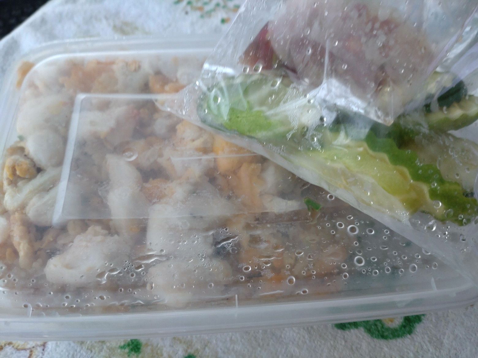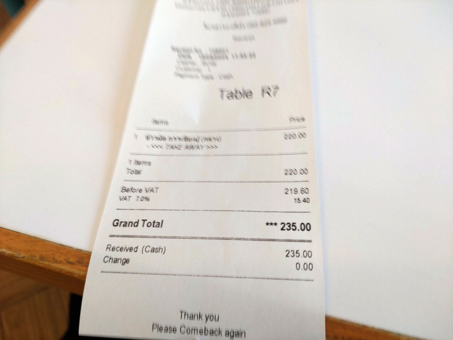 すると店員さんが、何人さん用ですか?と問われたので、一人ですと答えると、分かりましたと去っていきました。 これだけ混雑していますので、30分近く待ちました。 受け取り完了です。 価格は、235バーツ。 袋から取り出すと、大きな入れ物に入っていました。