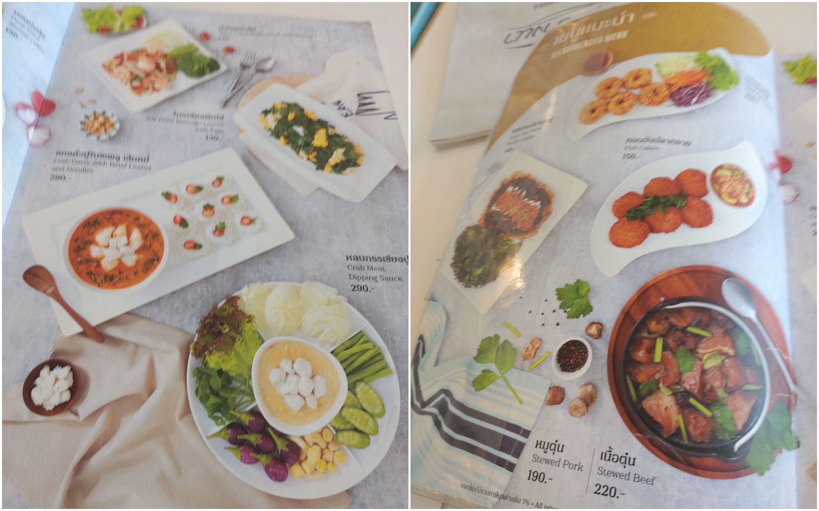 セントラルバンナーを出てからは。。。 個人的には、この界隈で最も好きなレストランであるクルア バンナーへやって来ました。 群を抜いて好きであるとも言っても良いかもしれません。 お客さんも凄い数であると共に、配達用の料理も凄い数の大人気店でもあります。 ケーキも売っています。 店員さんに、持ち帰りでのオーダーですと言うと、席を準備してくれて、メニューを持ってきてくれました。 これは、メニューのほんの一部です。